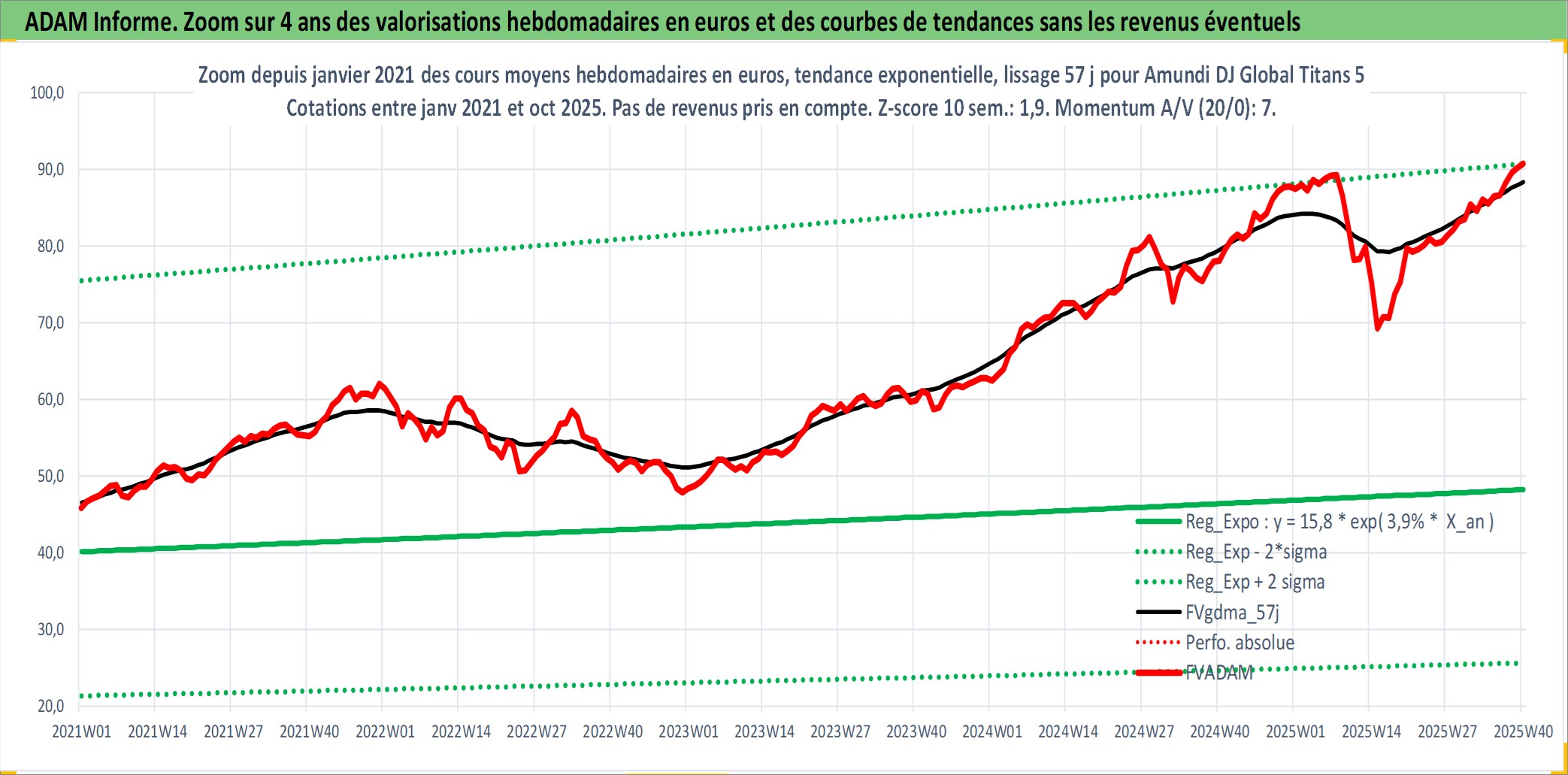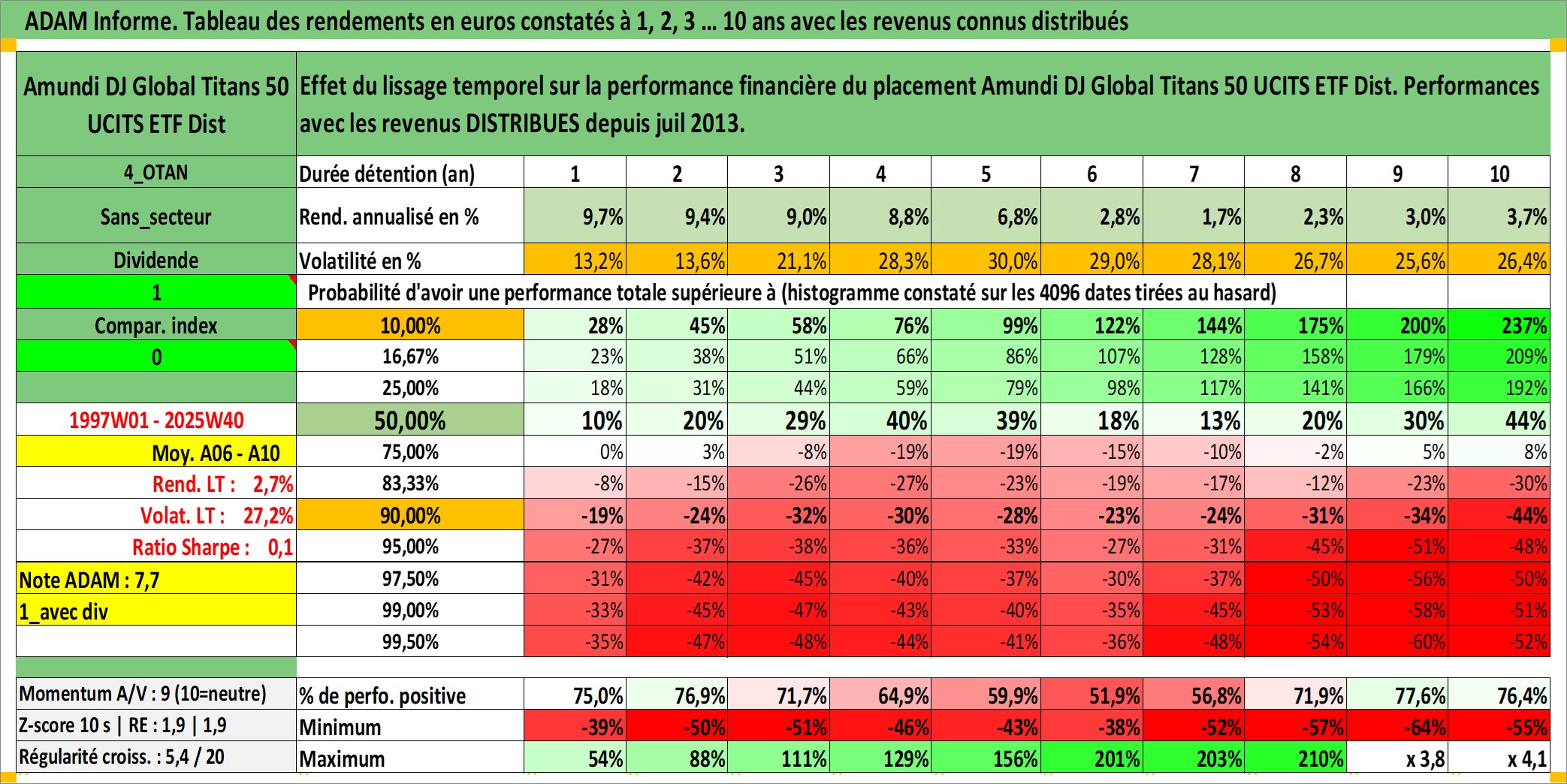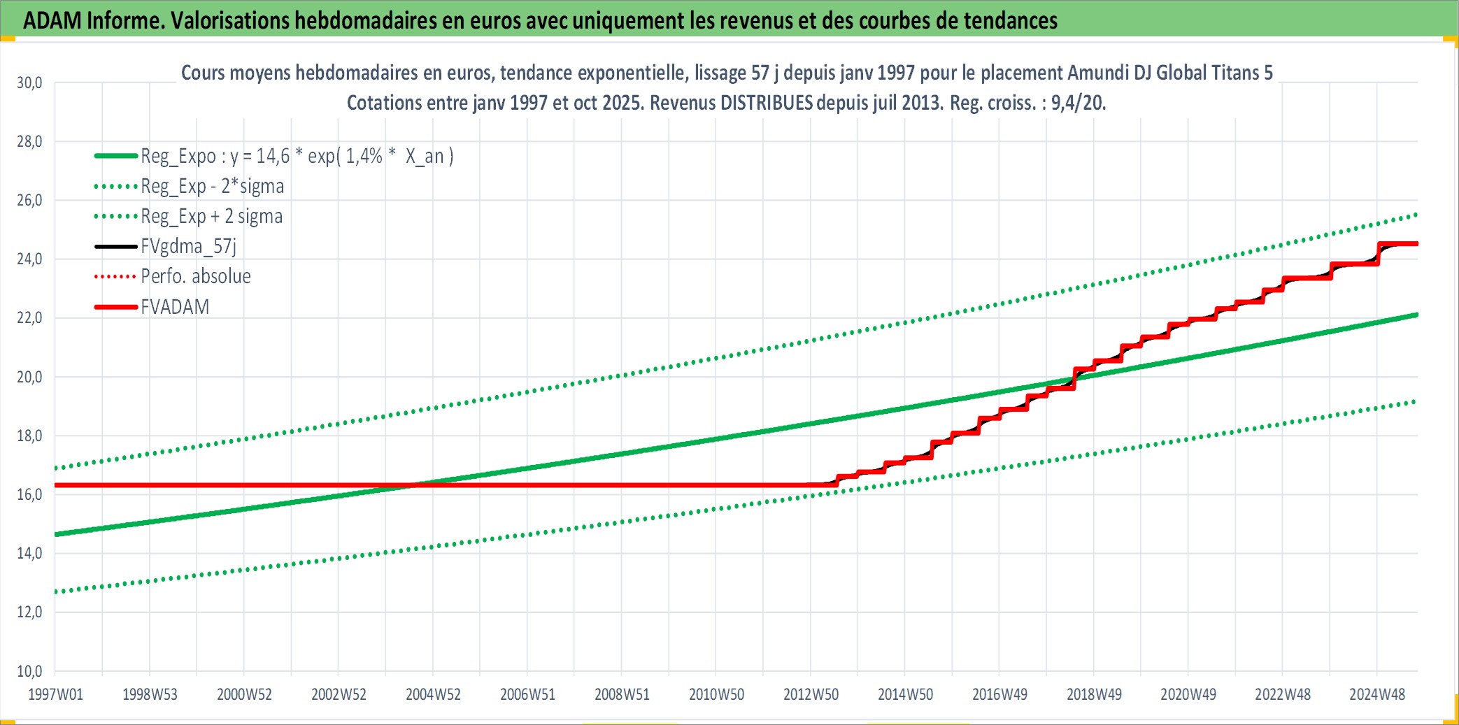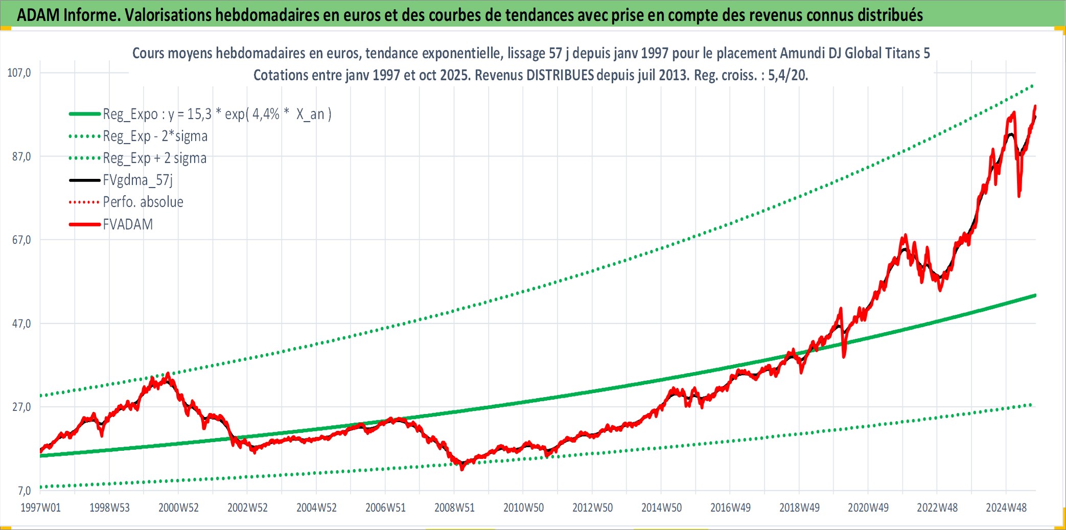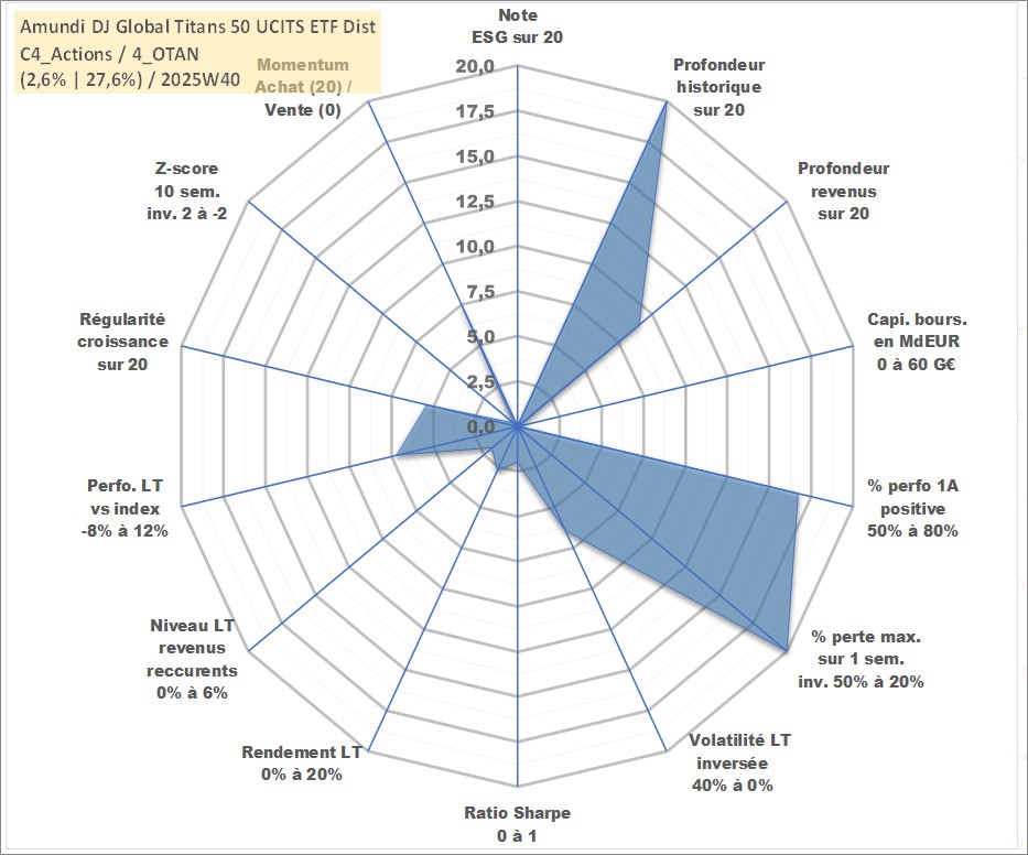 Site dédié aux investisseursPage dédiée sur site financeAnalyse des valorisations hebdomadaires du fonds Amundi DJ Global Titans 50 UCITS ETF Dist. Cet actif est cote en EUR. Les valorisations couvrent les semaines 1997W01 a 2025W40. Les revenus de cet actif financier sont pris en compte depuis la semaine 2013W28. La note ESG de cet actif n'est pas connue.