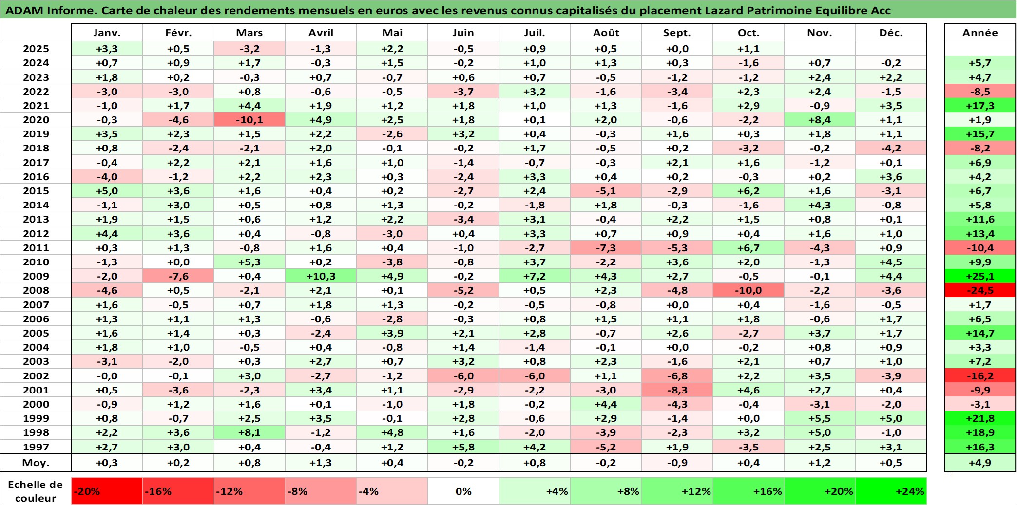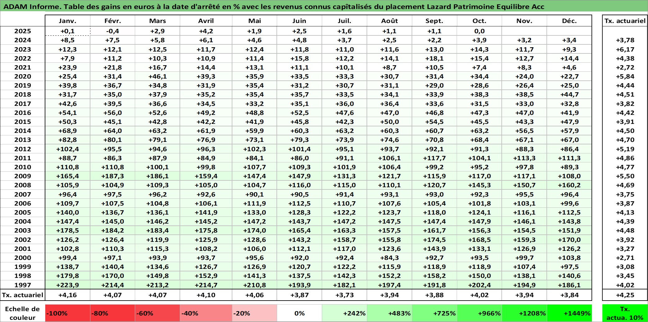 Site dédié aux investisseursPage dédiée sur site financeAnalyse des valorisations hebdomadaires du fonds Lazard Patrimoine Equilibre Acc. Cet actif est cote en EUR. Les valorisations couvrent les semaines 1997W01 a 2025W40. Les revenus de cet actif financier sont pris en compte depuis la semaine 1997W01. La note globale ESG de cet actif est estimee a 9.0 (apres rebasage entre 0 et 20).
