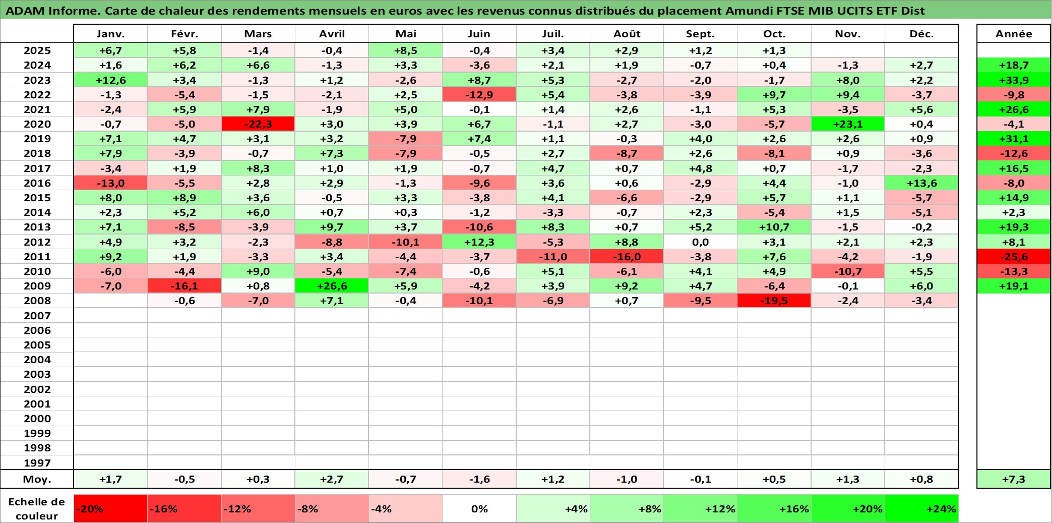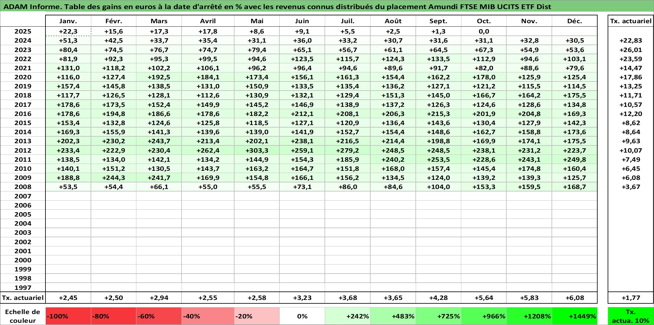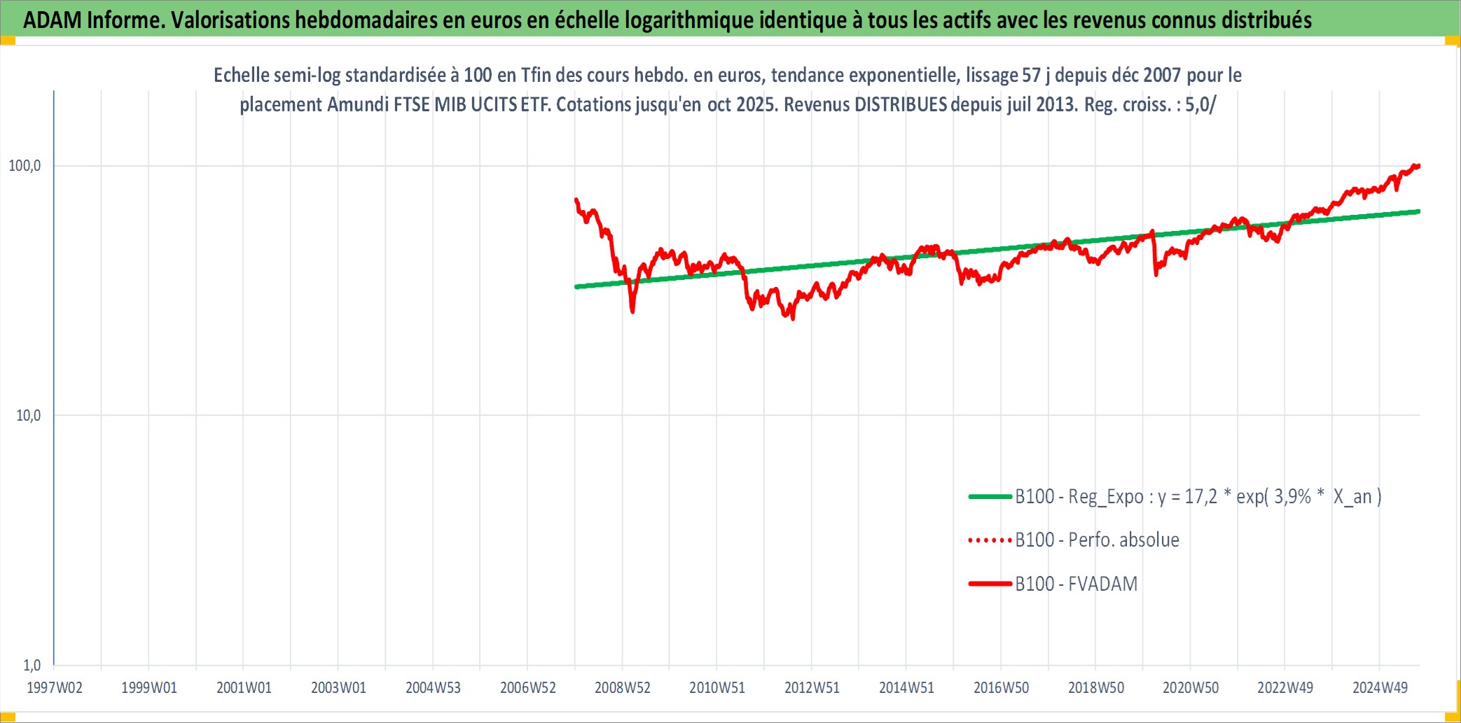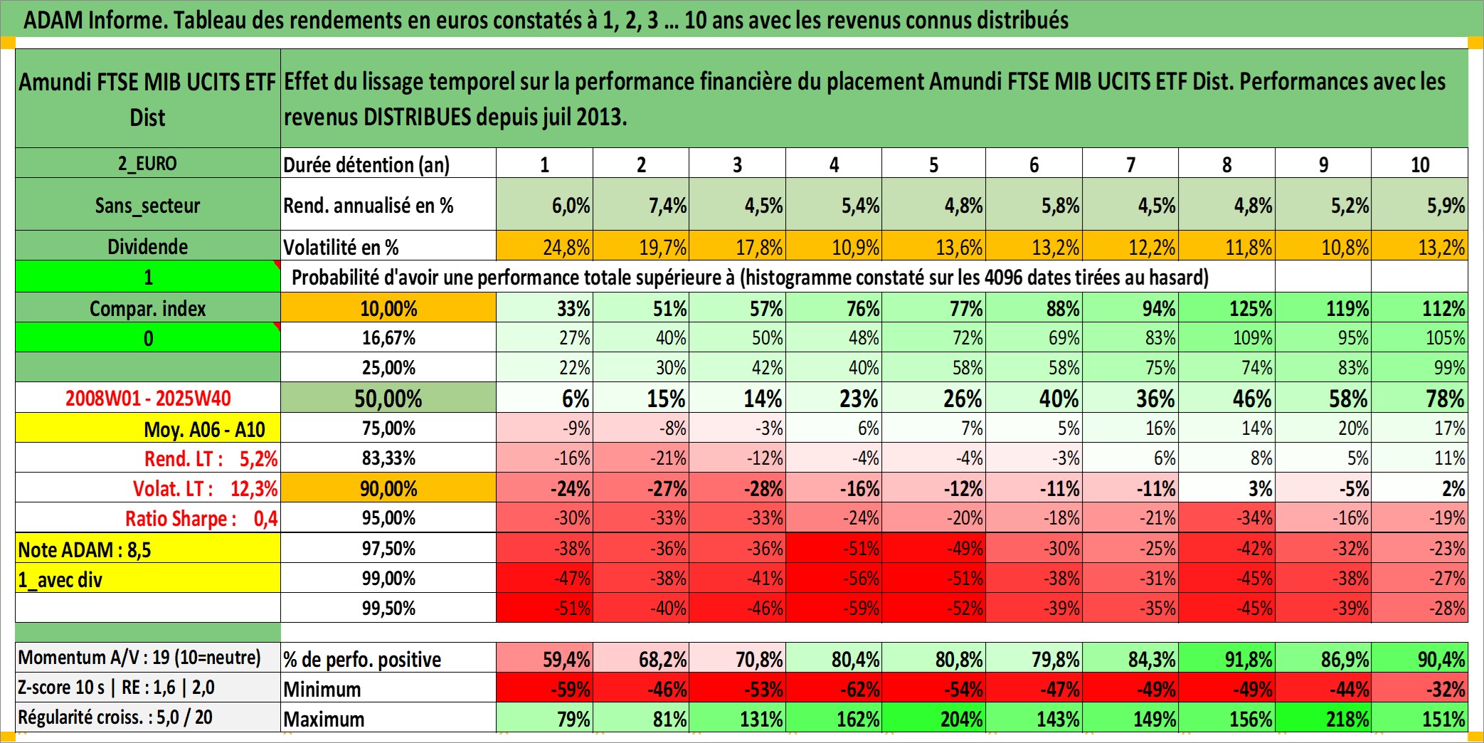 Site dédié aux investisseursPage dédiée sur site financeAnalyse des valorisations hebdomadaires du fonds Amundi FTSE MIB UCITS ETF Dist. Cet actif est cote en EUR. Les valorisations couvrent les semaines 2008W01 a 2025W40. Les revenus de cet actif financier sont pris en compte depuis la semaine 2013W28. La note ESG de cet actif n'est pas connue.