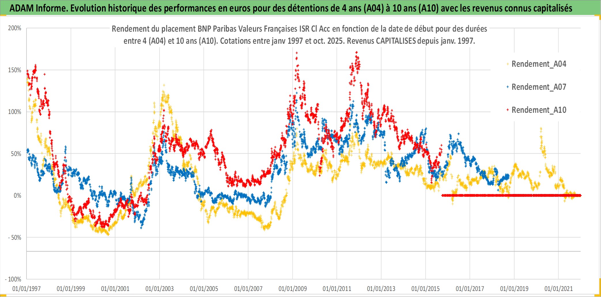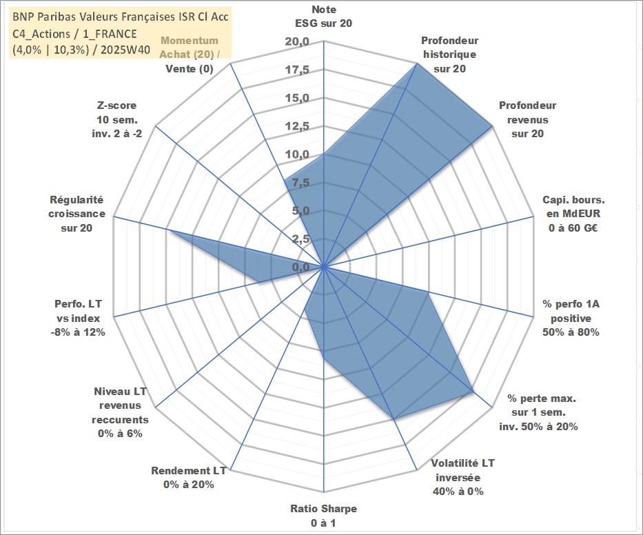 Site dédié aux investisseursPage dédiée sur site financeAnalyse des valorisations hebdomadaires du fonds BNP Paribas Valeurs Françaises ISR Cl Acc. Cet actif est cote en EUR. Les valorisations couvrent les semaines 1997W01 a 2025W40. Les revenus de cet actif financier sont pris en compte depuis la semaine 1997W01. La note globale ESG de cet actif est estimee a 10.0 (apres rebasage entre 0 et 20).
