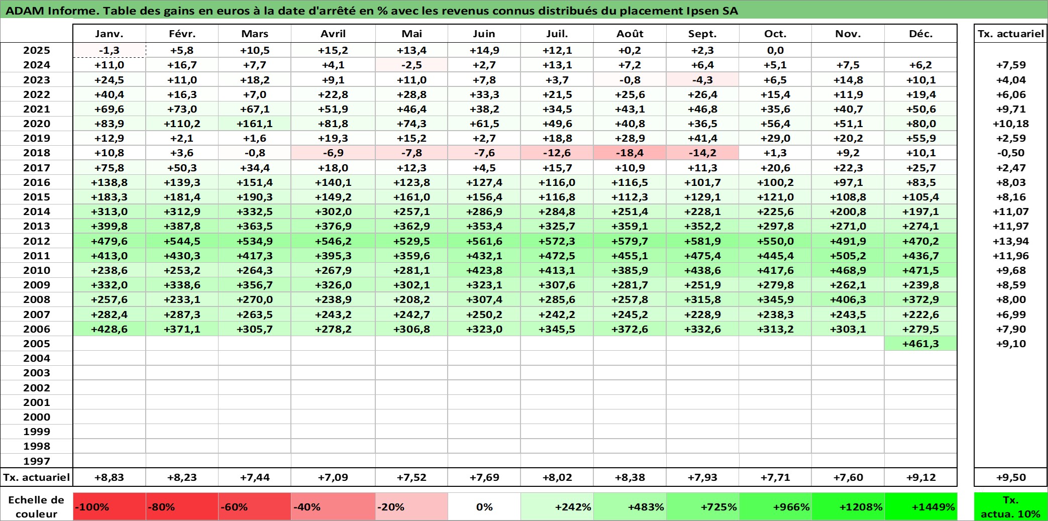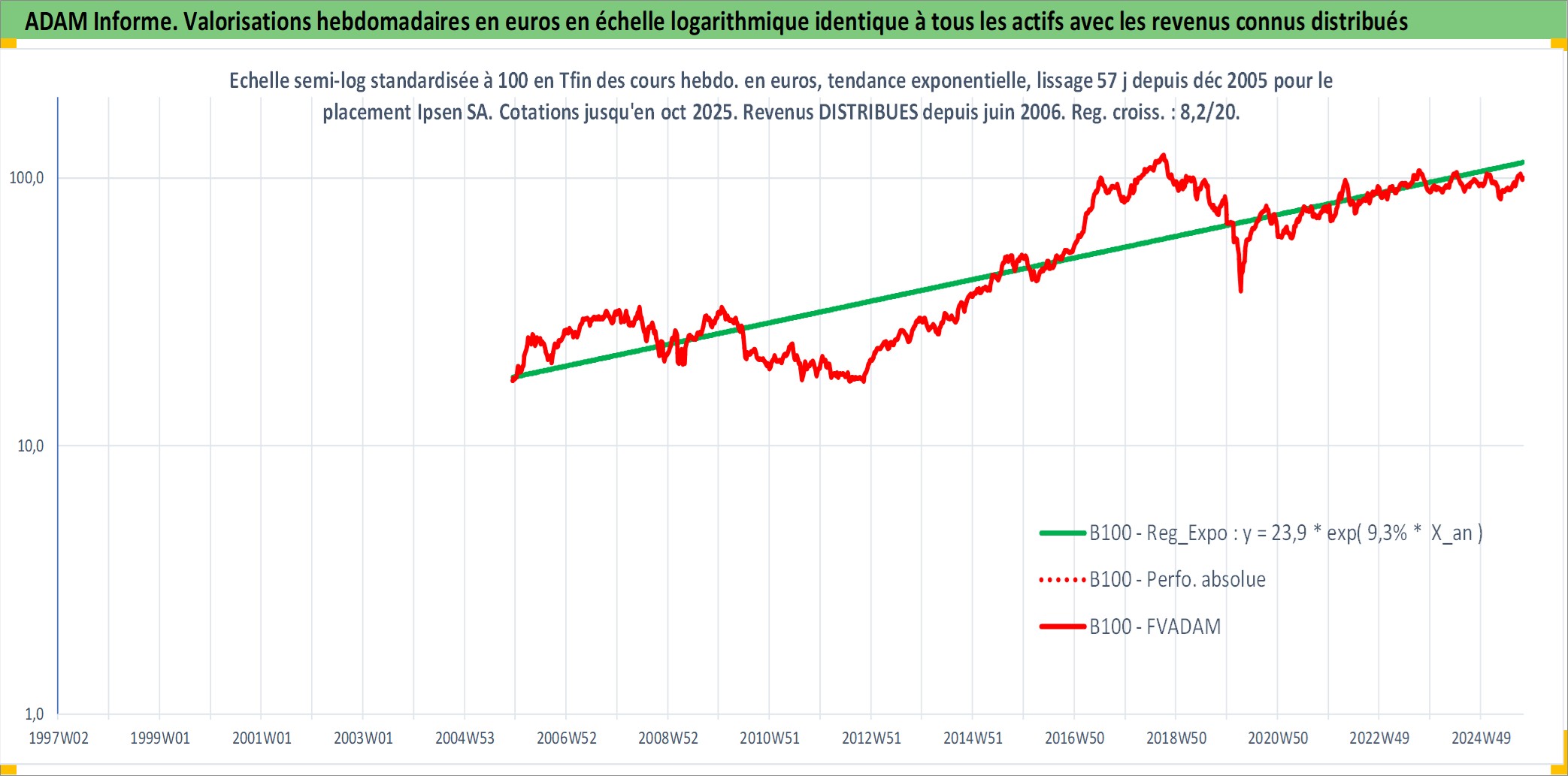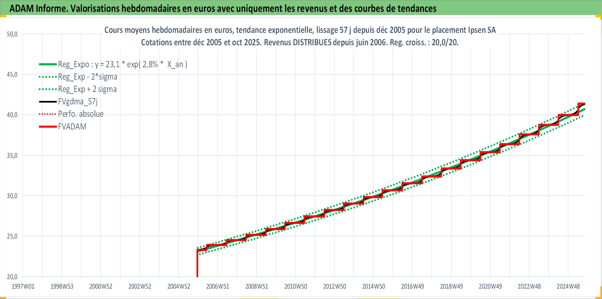 Site dédié aux investisseursPage dédiée sur site financeAnalyse des valorisations hebdomadaires de l'action Ipsen SA. Cet actif est cote en EUR. Les valorisations couvrent les semaines 2005W49 a 2025W40. Les revenus de cet actif financier sont pris en compte depuis la semaine 2006W22. La note globale ESG de cet actif est estimee a 5.0 (apres rebasage entre 0 et 20).