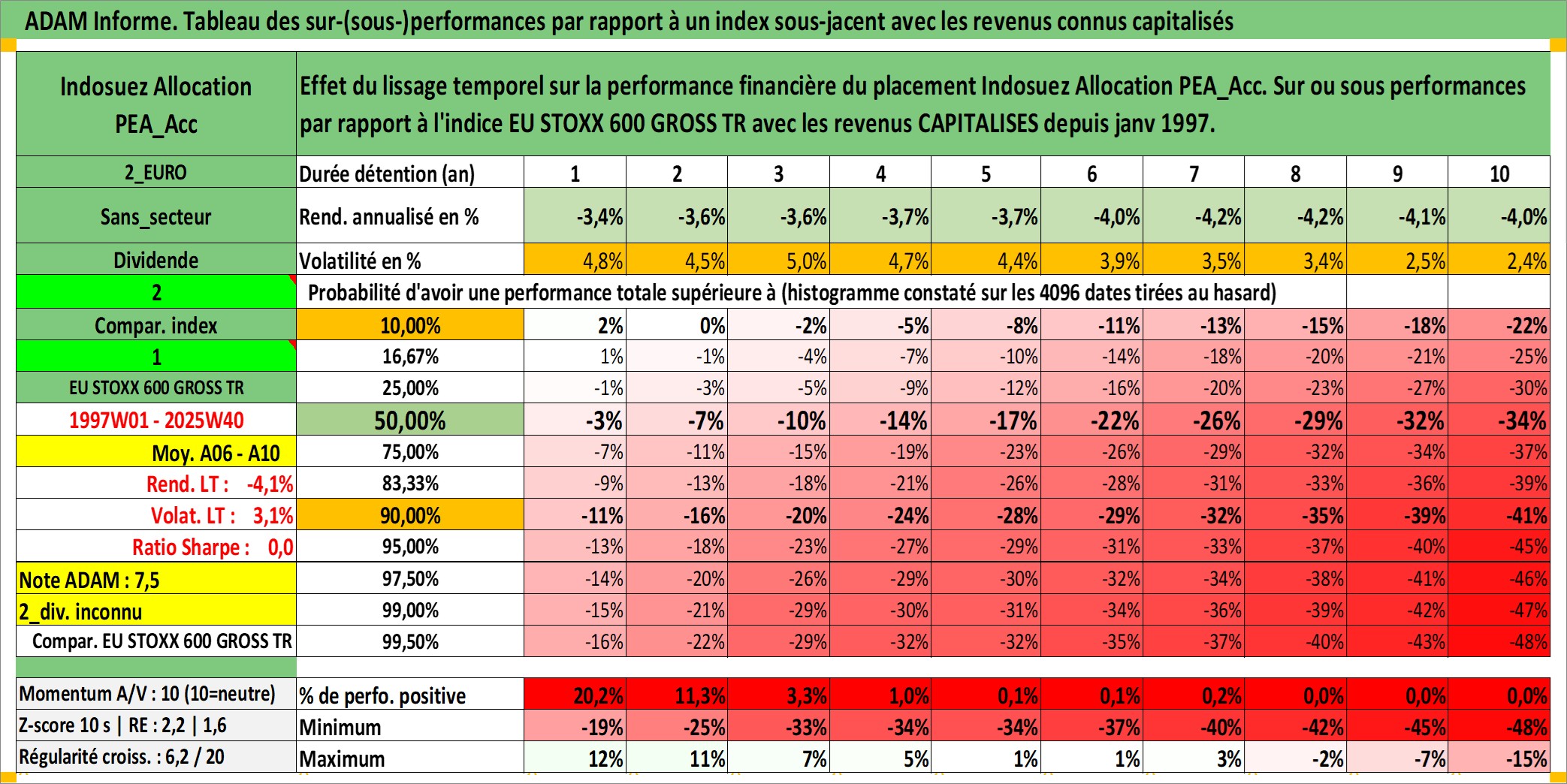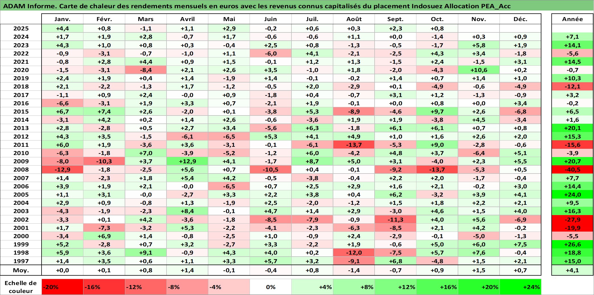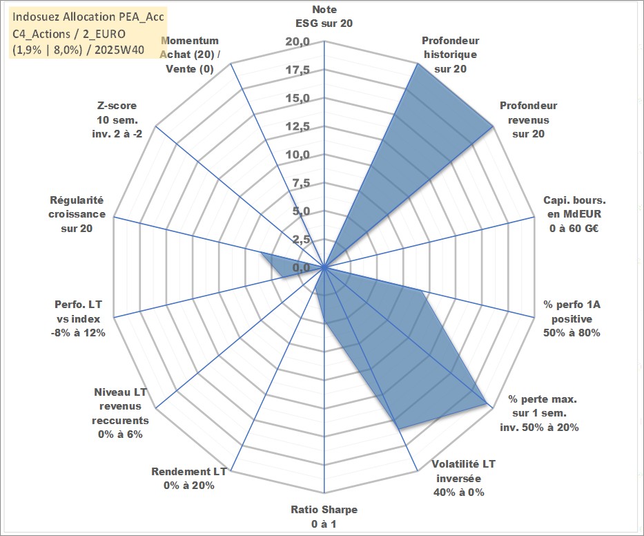 Site dédié aux investisseursPage dédiée sur site financeAnalyse des valorisations hebdomadaires du fonds Indosuez Allocation PEA_Acc. Cet actif est cote en EUR. Les valorisations couvrent les semaines 1997W01 a 2025W40. Les revenus de cet actif financier sont pris en compte depuis la semaine 1997W01. La note ESG de cet actif n'est pas connue.
