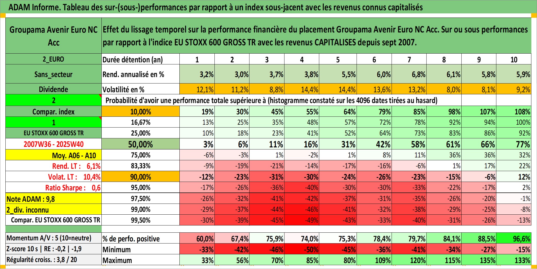 Site dédié aux investisseursPage dédiée sur site financeAnalyse des valorisations hebdomadaires du fonds Groupama Avenir Euro NC Acc. Cet actif est cote en EUR. Les valorisations couvrent les semaines 2007W36 a 2025W40. Les revenus de cet actif financier sont pris en compte depuis la semaine 2007W36. La note globale ESG de cet actif est estimee a 8.0 (apres rebasage entre 0 et 20).
