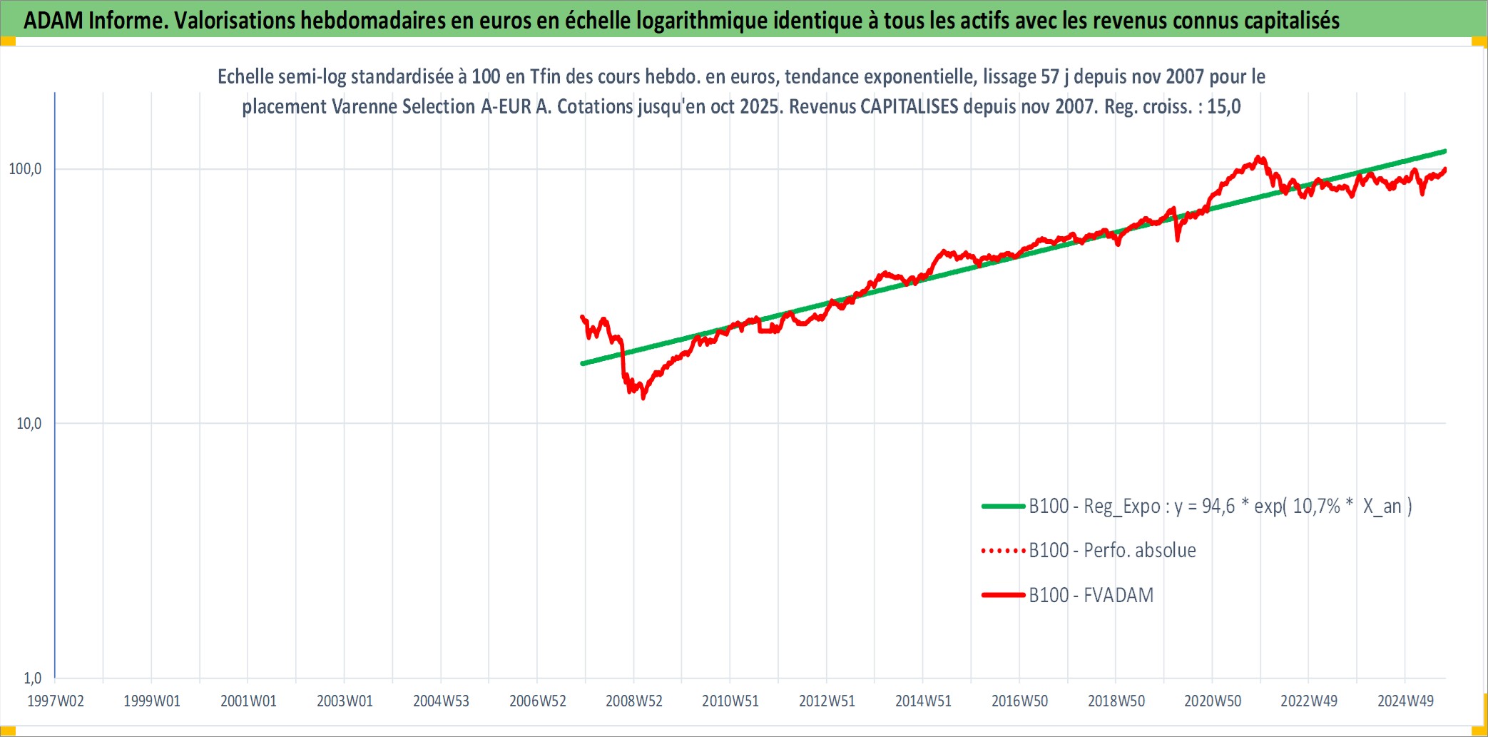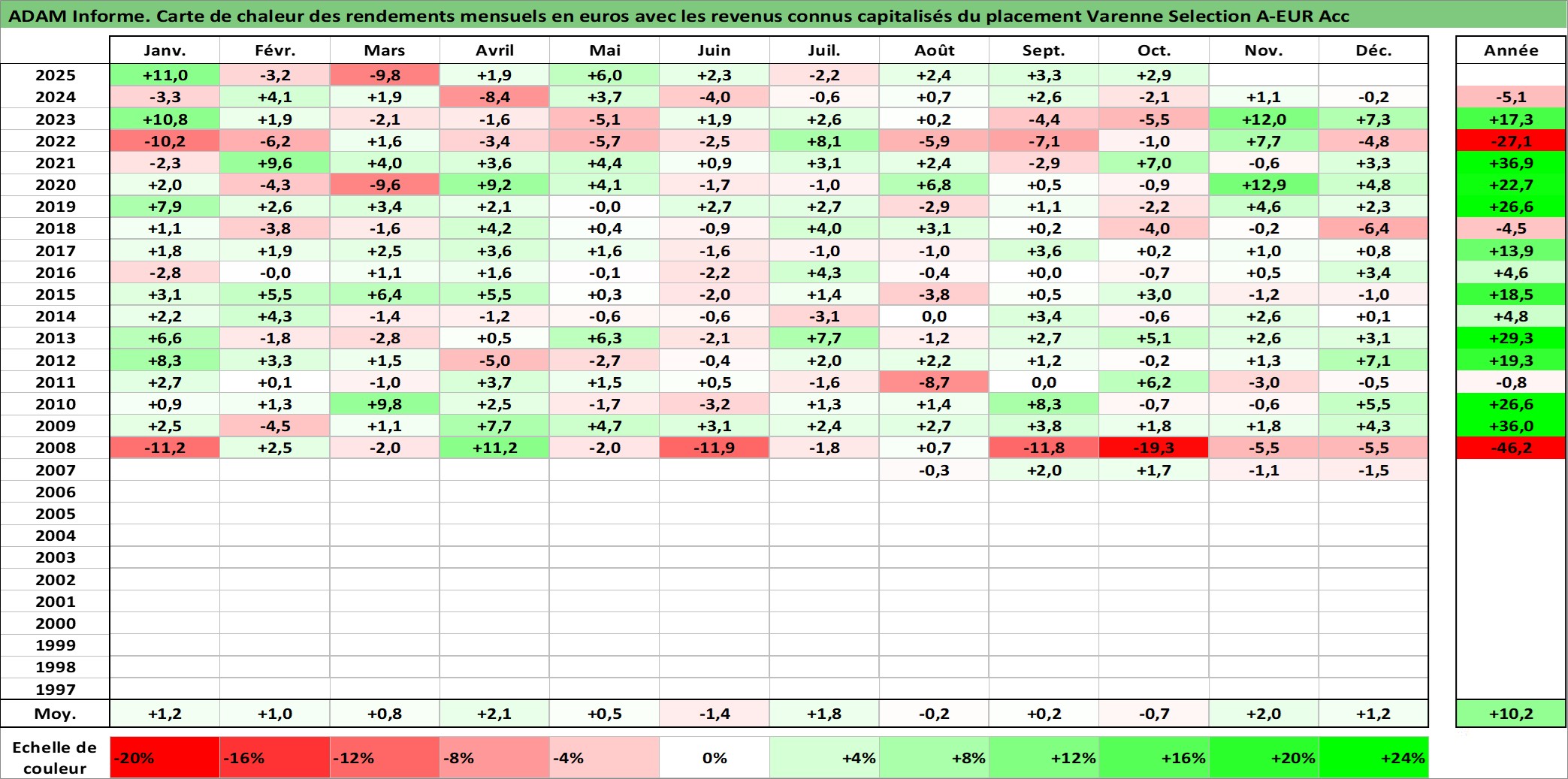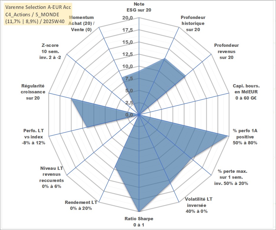 Site dédié aux investisseursPage dédiée sur site financeAnalyse des valorisations hebdomadaires du fonds Varenne Selection A-EUR Acc. Cet actif est cote en EUR. Les valorisations couvrent les semaines 2007W48 a 2025W40. Les revenus de cet actif financier sont pris en compte depuis la semaine 2007W48. La note globale ESG de cet actif est estimee a 9.0 (apres rebasage entre 0 et 20).