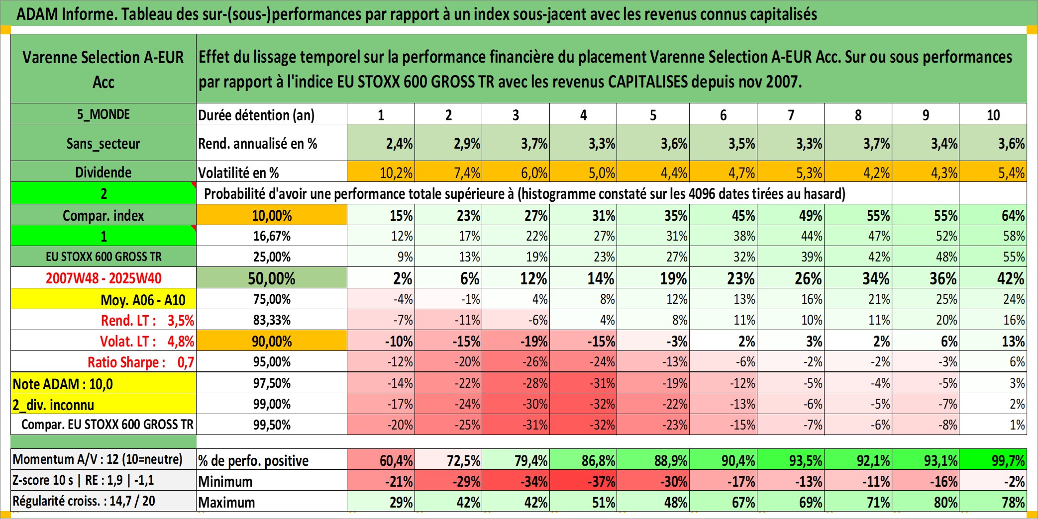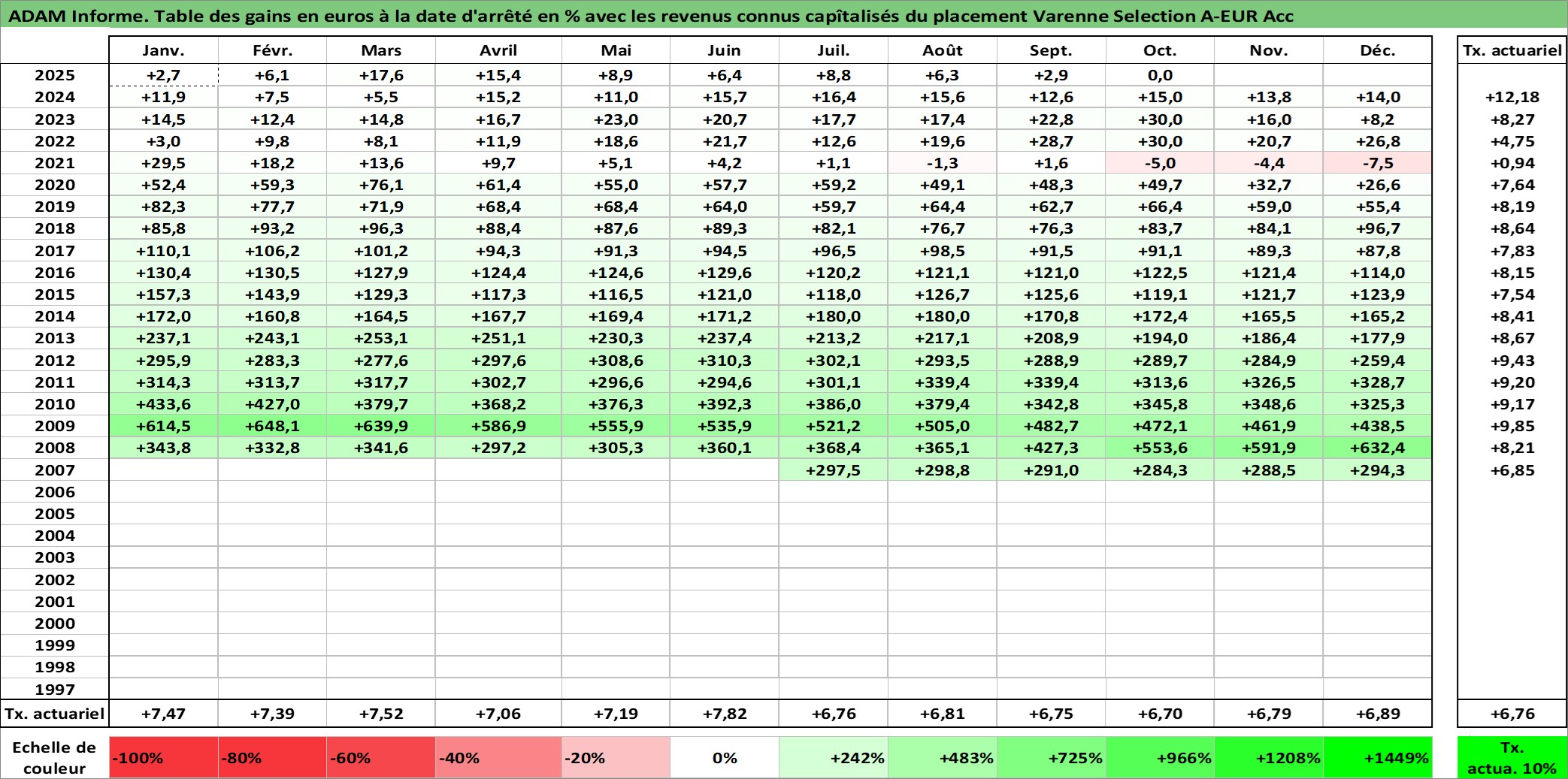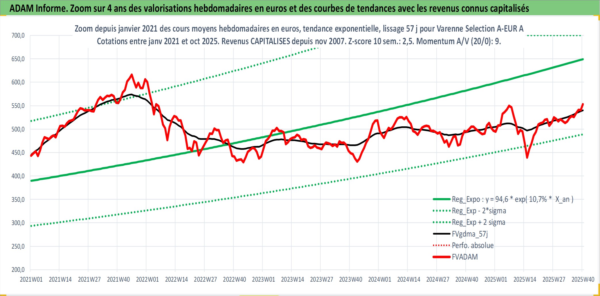 Site dédié aux investisseursPage dédiée sur site financeAnalyse des valorisations hebdomadaires du fonds Varenne Selection A-EUR Acc. Cet actif est cote en EUR. Les valorisations couvrent les semaines 2007W48 a 2025W40. Les revenus de cet actif financier sont pris en compte depuis la semaine 2007W48. La note globale ESG de cet actif est estimee a 9.0 (apres rebasage entre 0 et 20).