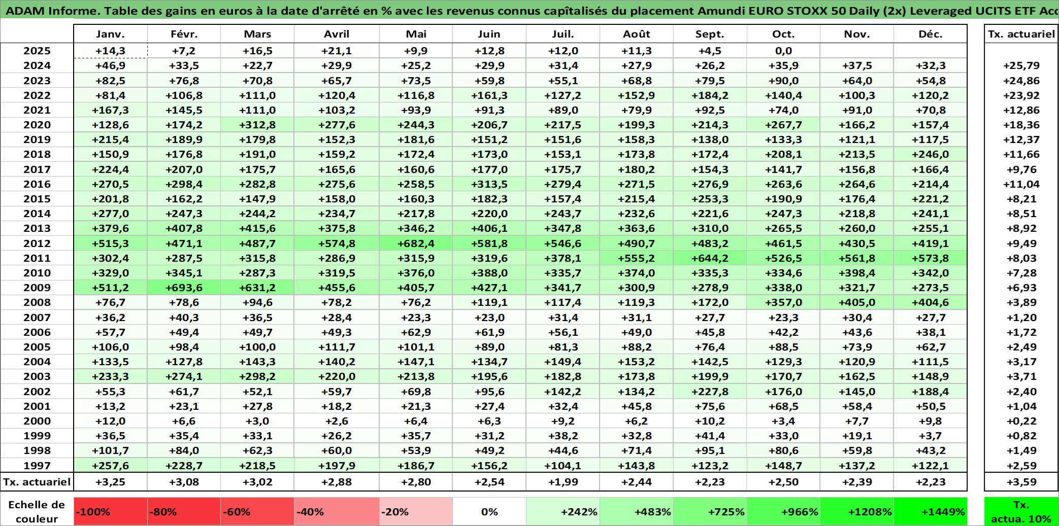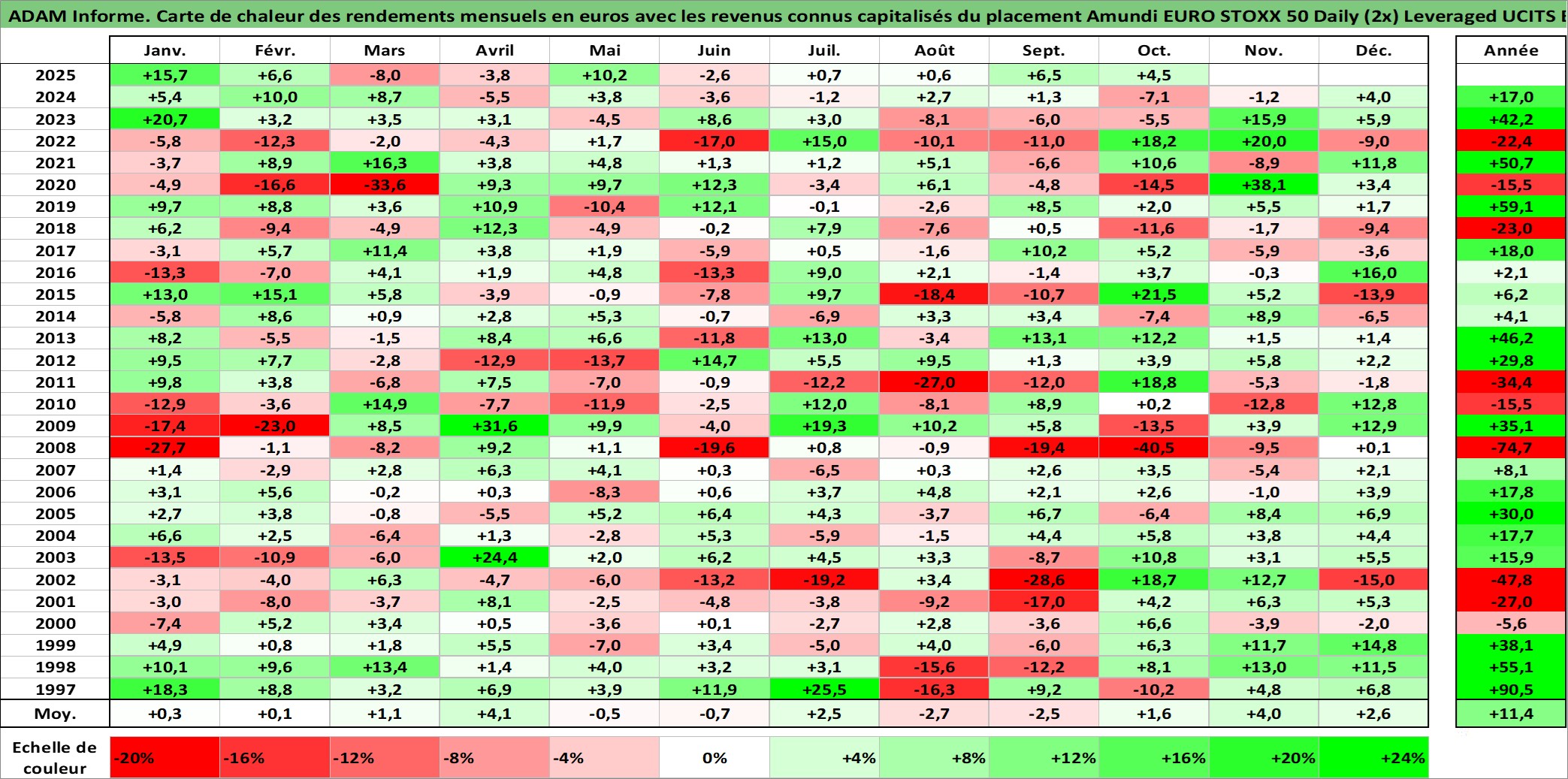 Site dédié aux investisseursPage dédiée sur site financeAnalyse des valorisations hebdomadaires du fonds Amundi EURO STOXX 50 Daily (2x) Leveraged UCITS ETF Acc. Cet actif est cote en EUR. Les valorisations couvrent les semaines 1997W01 a 2025W40. Les revenus de cet actif financier sont pris en compte depuis la semaine 1997W01. La note ESG de cet actif n'est pas connue.