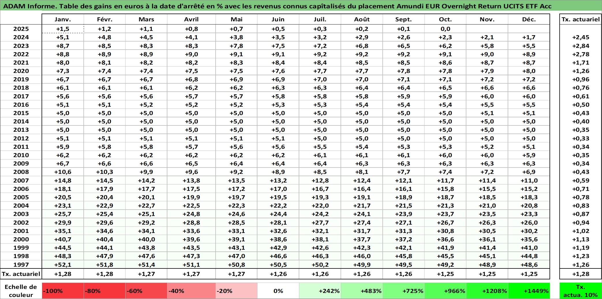 Site dédié aux investisseursPage dédiée sur site financeAnalyse des valorisations hebdomadaires du fonds Amundi EUR Overnight Return UCITS ETF Acc. Cet actif est cote en EUR. Les valorisations couvrent les semaines 1997W01 a 2025W40. Les revenus de cet actif financier sont pris en compte depuis la semaine 1997W01. La note ESG de cet actif n'est pas connue.