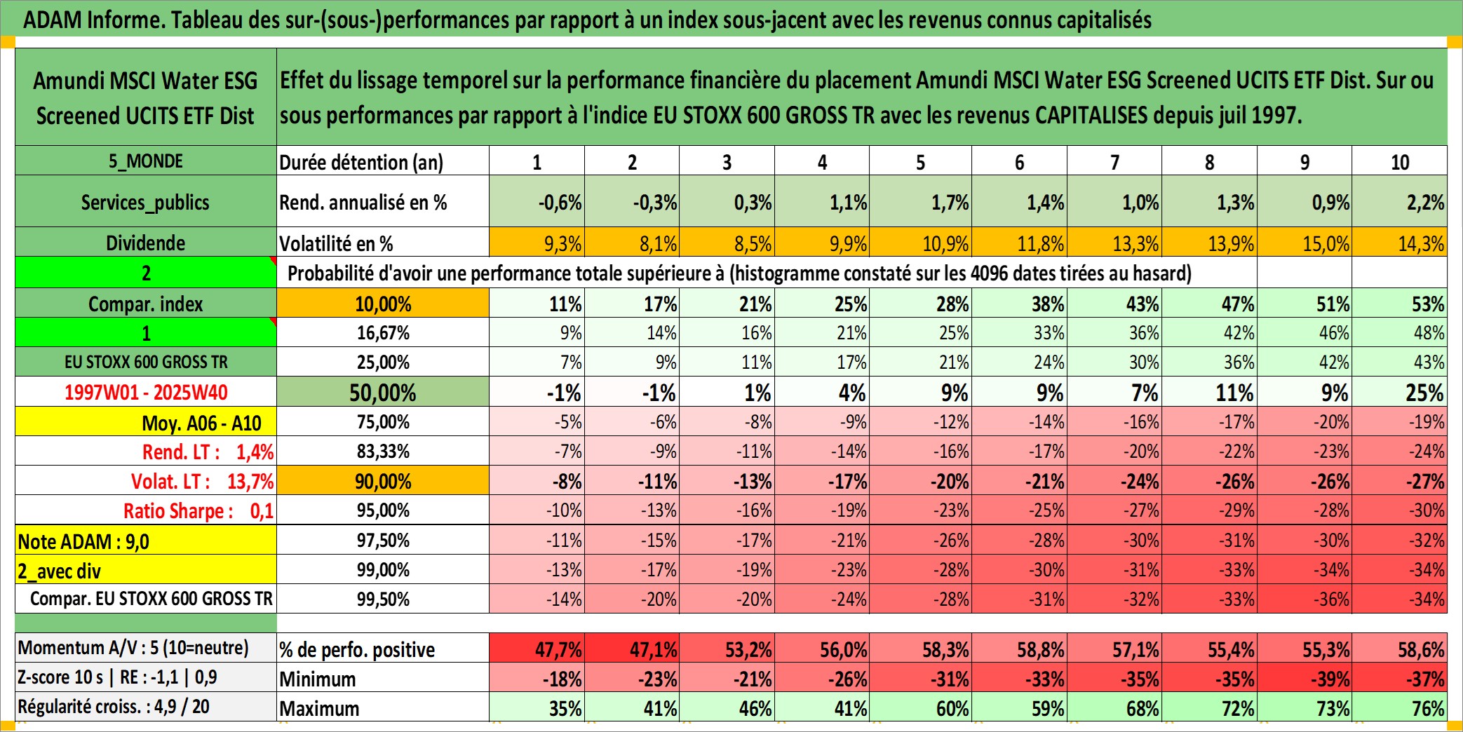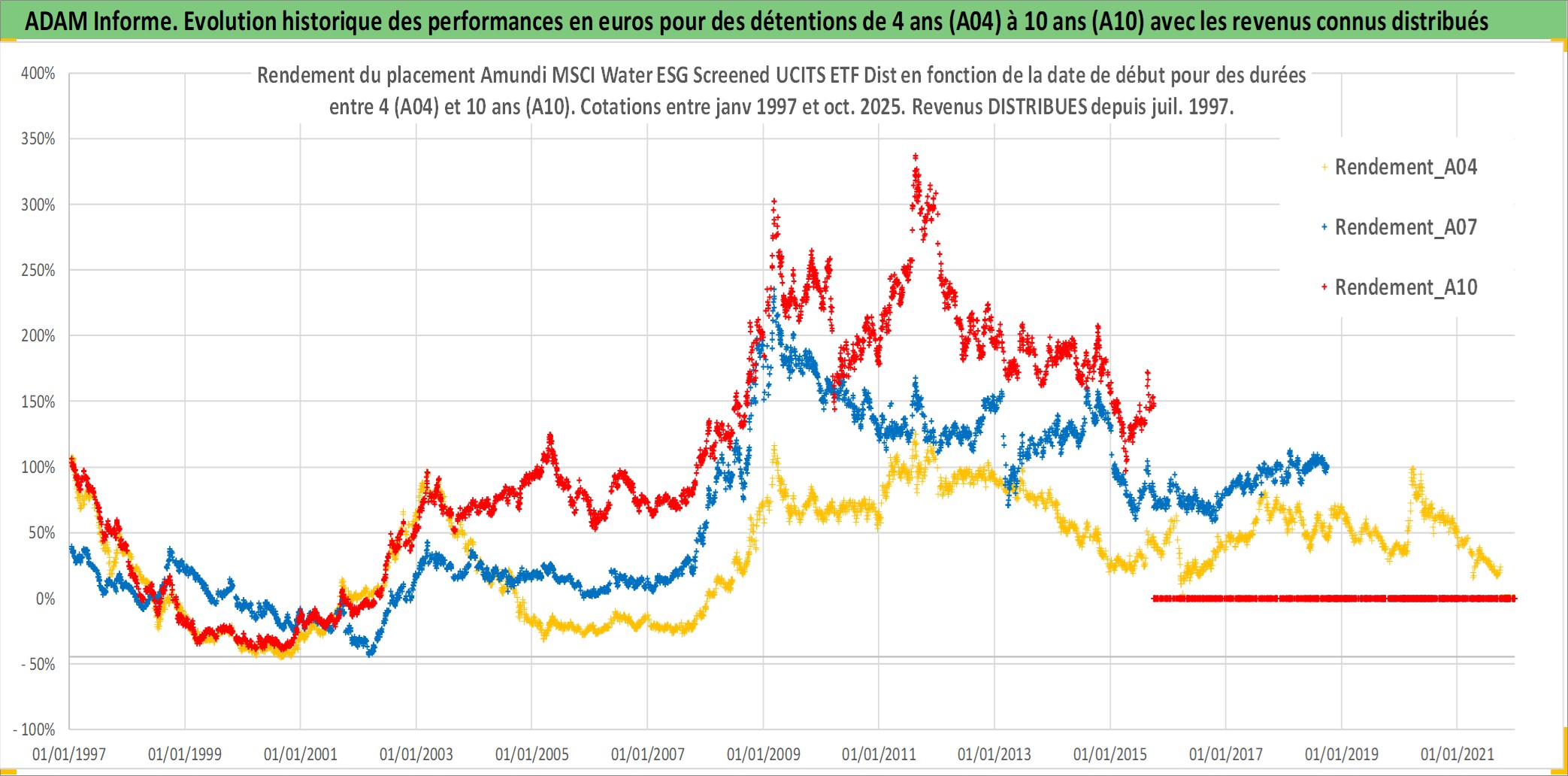 Site dédié aux investisseursPage dédiée sur site financeAnalyse des valorisations hebdomadaires du fonds Amundi MSCI Water ESG Screened UCITS ETF Dist. Cet actif est cote en EUR. Les valorisations couvrent les semaines 1997W01 a 2025W40. Les revenus de cet actif financier sont pris en compte depuis la semaine 1997W28. La note ESG de cet actif n'est pas connue.