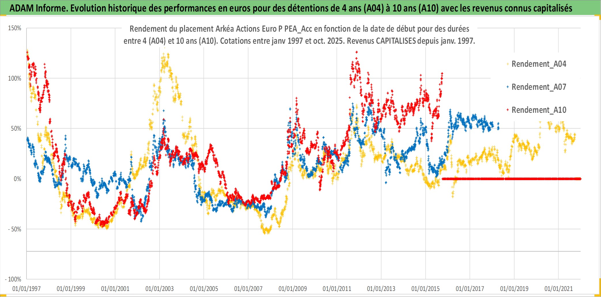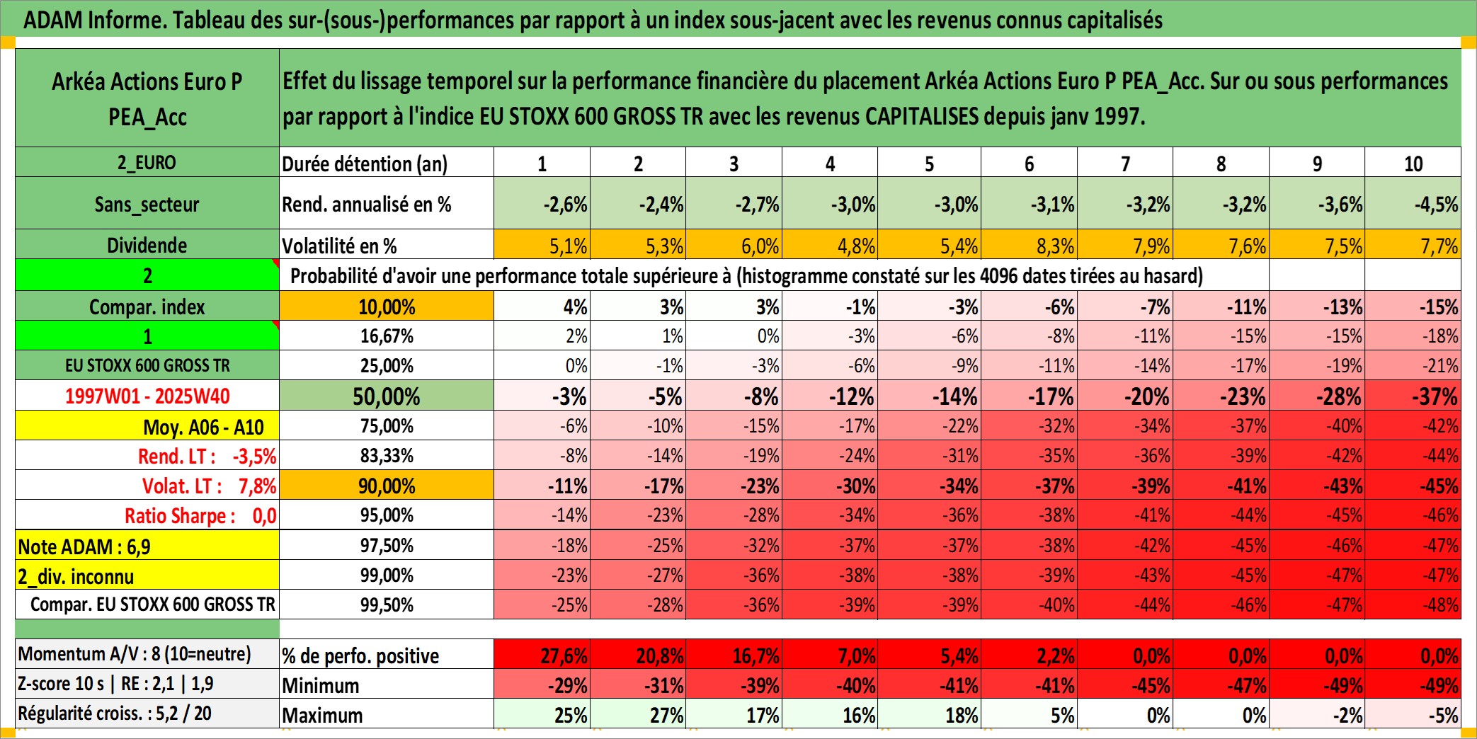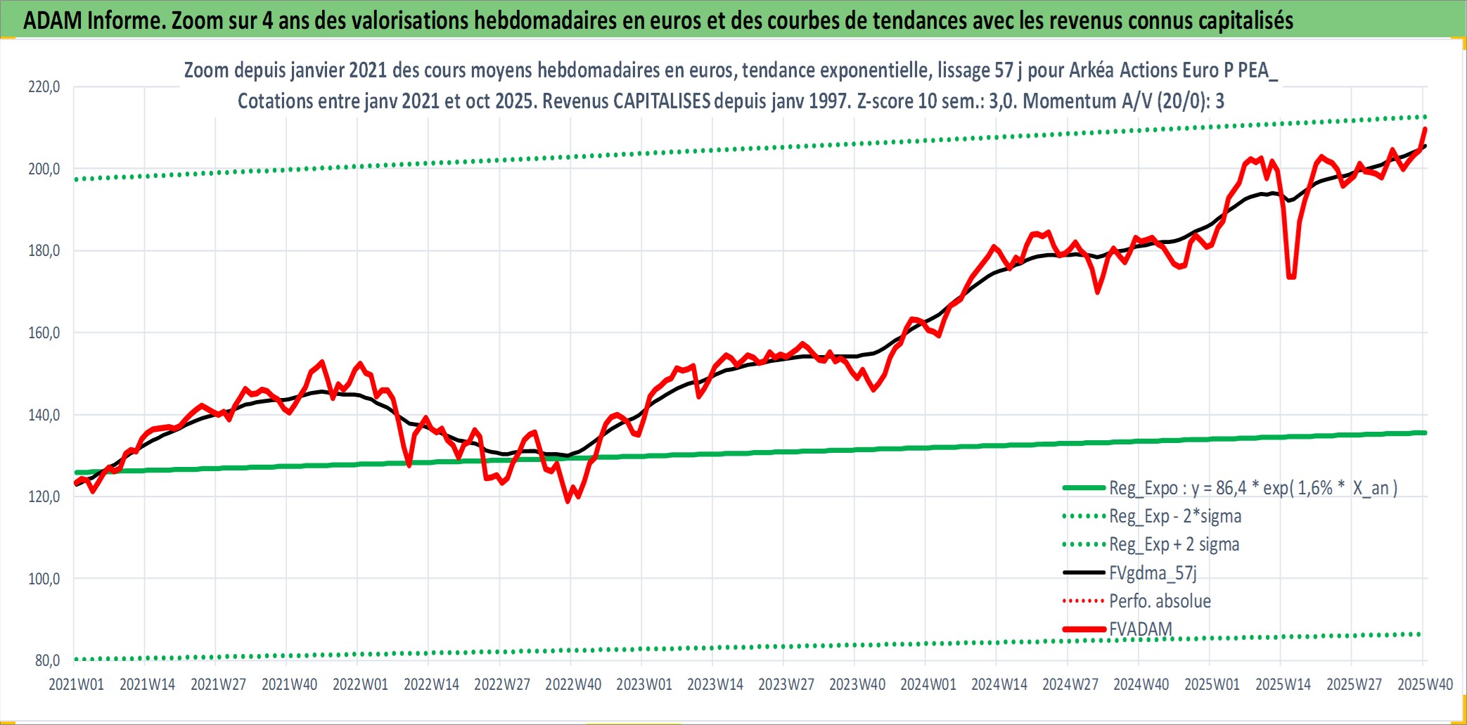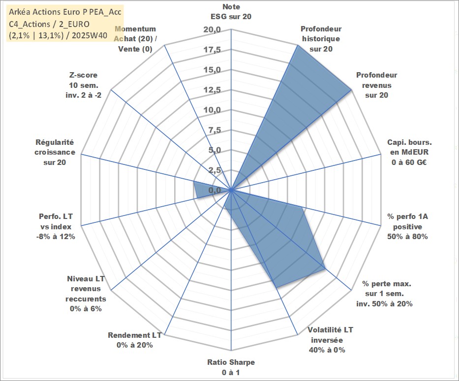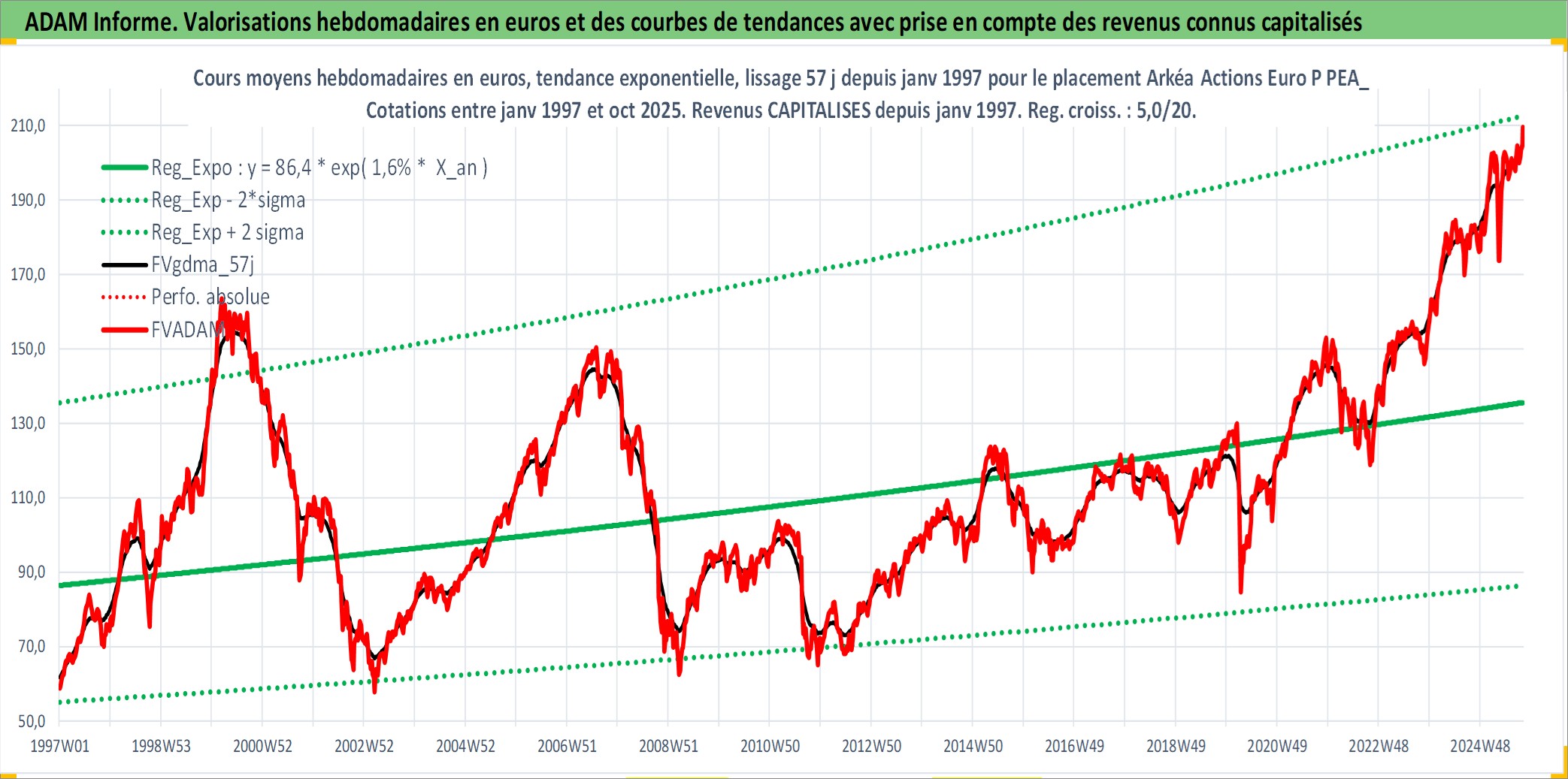 Site dédié aux investisseursPage dédiée sur site financeAnalyse des valorisations hebdomadaires du fonds Arkéa Actions Euro P PEA_Acc. Cet actif est cote en EUR. Les valorisations couvrent les semaines 1997W01 a 2025W40. Les revenus de cet actif financier sont pris en compte depuis la semaine 1997W01. La note ESG de cet actif n'est pas connue.
