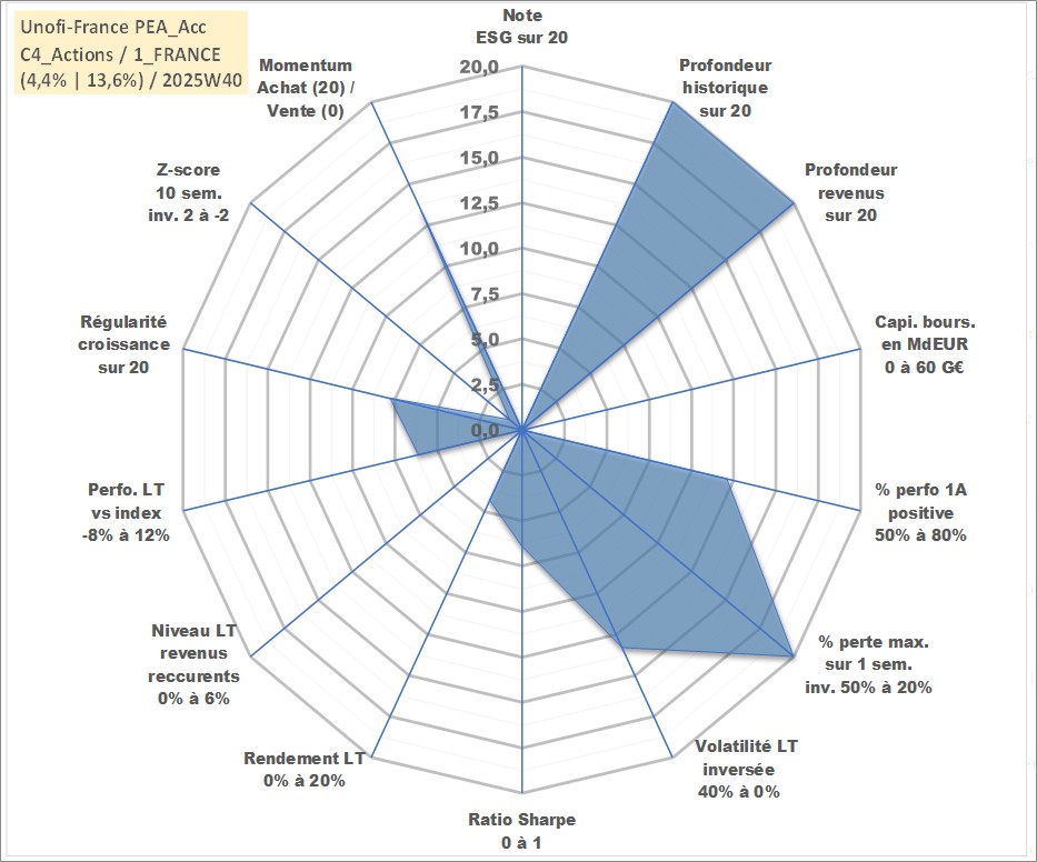 Site dédié aux investisseursPage dédiée sur site financeAnalyse des valorisations hebdomadaires du fonds Unofi-France PEA_Acc. Cet actif est cote en EUR. Les valorisations couvrent les semaines 1997W01 a 2025W40. Les revenus de cet actif financier sont pris en compte depuis la semaine 1997W01. La note ESG de cet actif n'est pas connue.