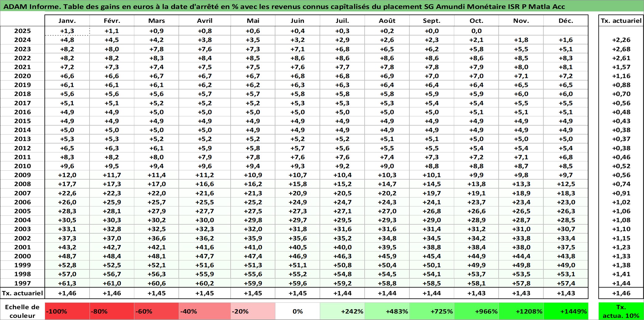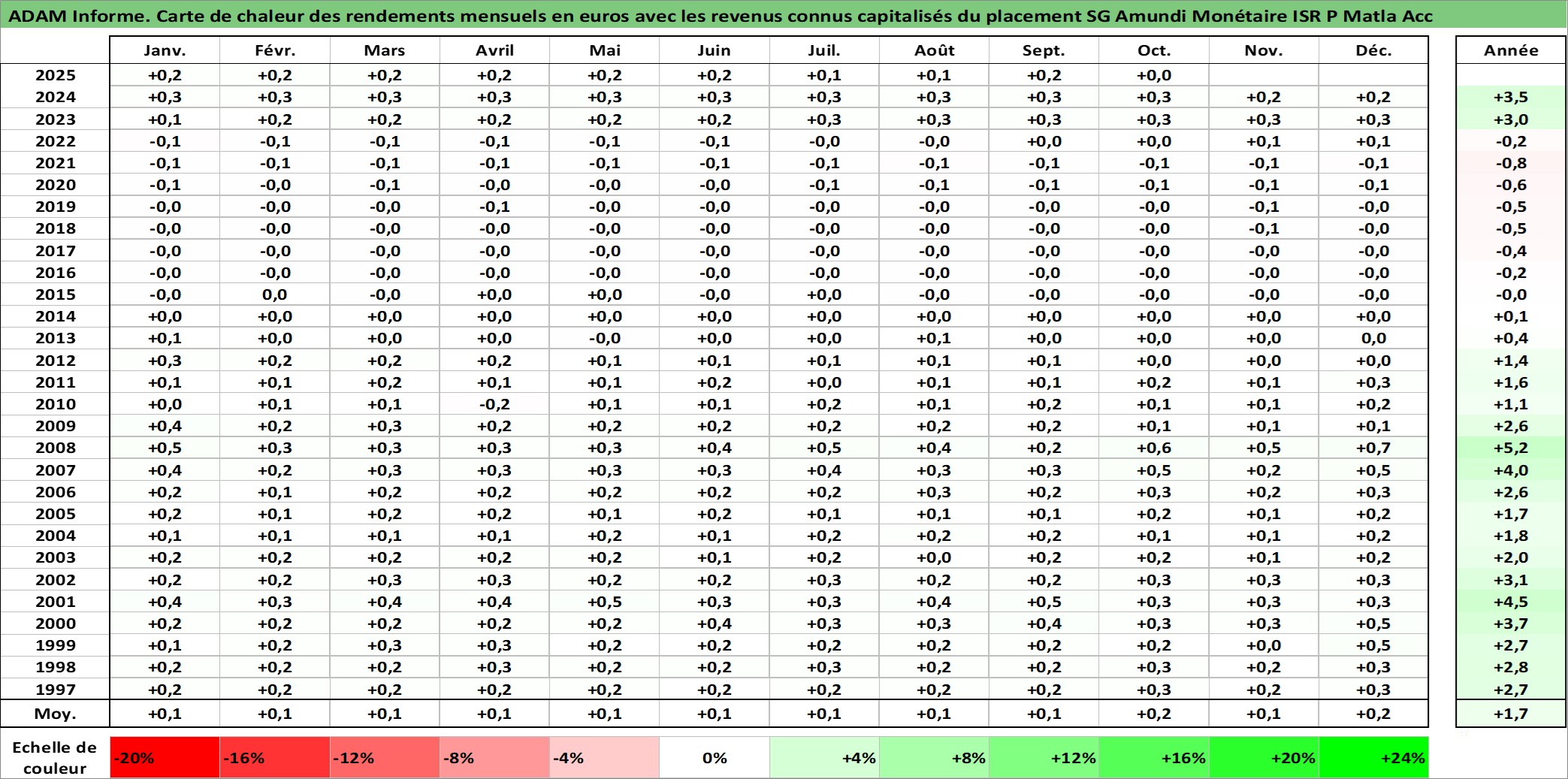 Site dédié aux investisseursPage dédiée sur site financeAnalyse des valorisations hebdomadaires du fonds SG Amundi Monétaire ISR P Matla Acc. Cet actif est cote en EUR. Les valorisations couvrent les semaines 1997W01 a 2025W40. Les revenus de cet actif financier sont pris en compte depuis la semaine 1997W01. La note ESG de cet actif n'est pas connue.