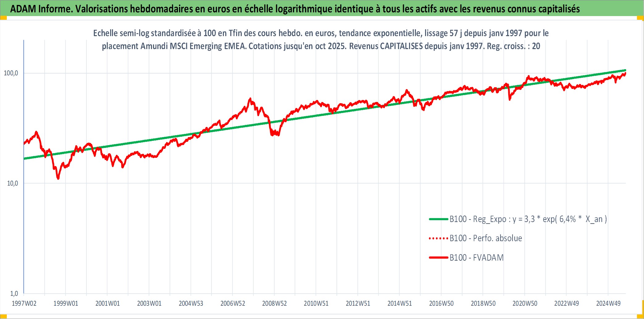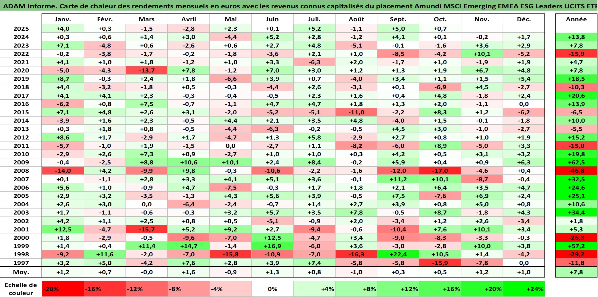 Site dédié aux investisseursPage dédiée sur site financeAnalyse des valorisations hebdomadaires du fonds Amundi MSCI Emerging EMEA ESG Leaders UCITS ETF PEA_Acc. Cet actif est cote en EUR. Les valorisations couvrent les semaines 1997W01 a 2025W40. Les revenus de cet actif financier sont pris en compte depuis la semaine 1997W01. La note ESG de cet actif n'est pas connue.