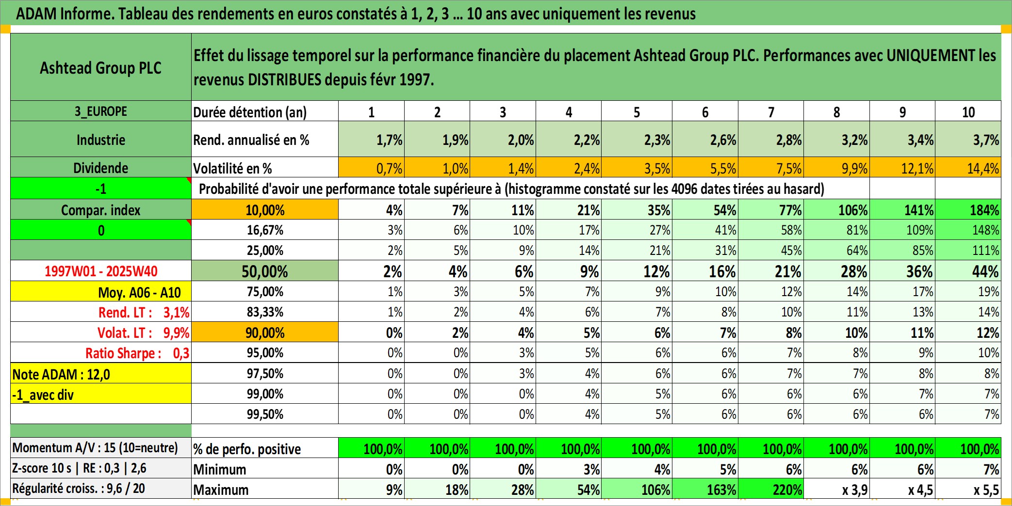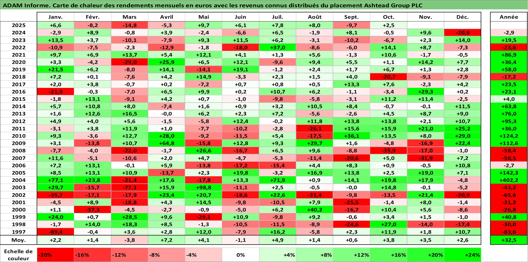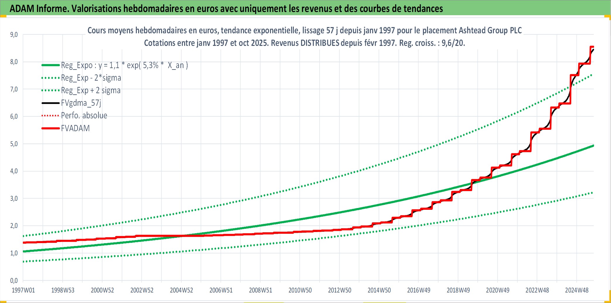 Site dédié aux investisseursPage dédiée sur site financeAnalyse des valorisations hebdomadaires de l'action Ashtead Group PLC. Cet actif est cote en GBX. Les valorisations sont en contrevaleur EURO et couvrent les semaines 1997W01 a 2025W40. Les revenus de cet actif financier sont pris en compte depuis la semaine 1997W09. La note globale ESG de cet actif est estimee a 11.0 (apres rebasage entre 0 et 20).
