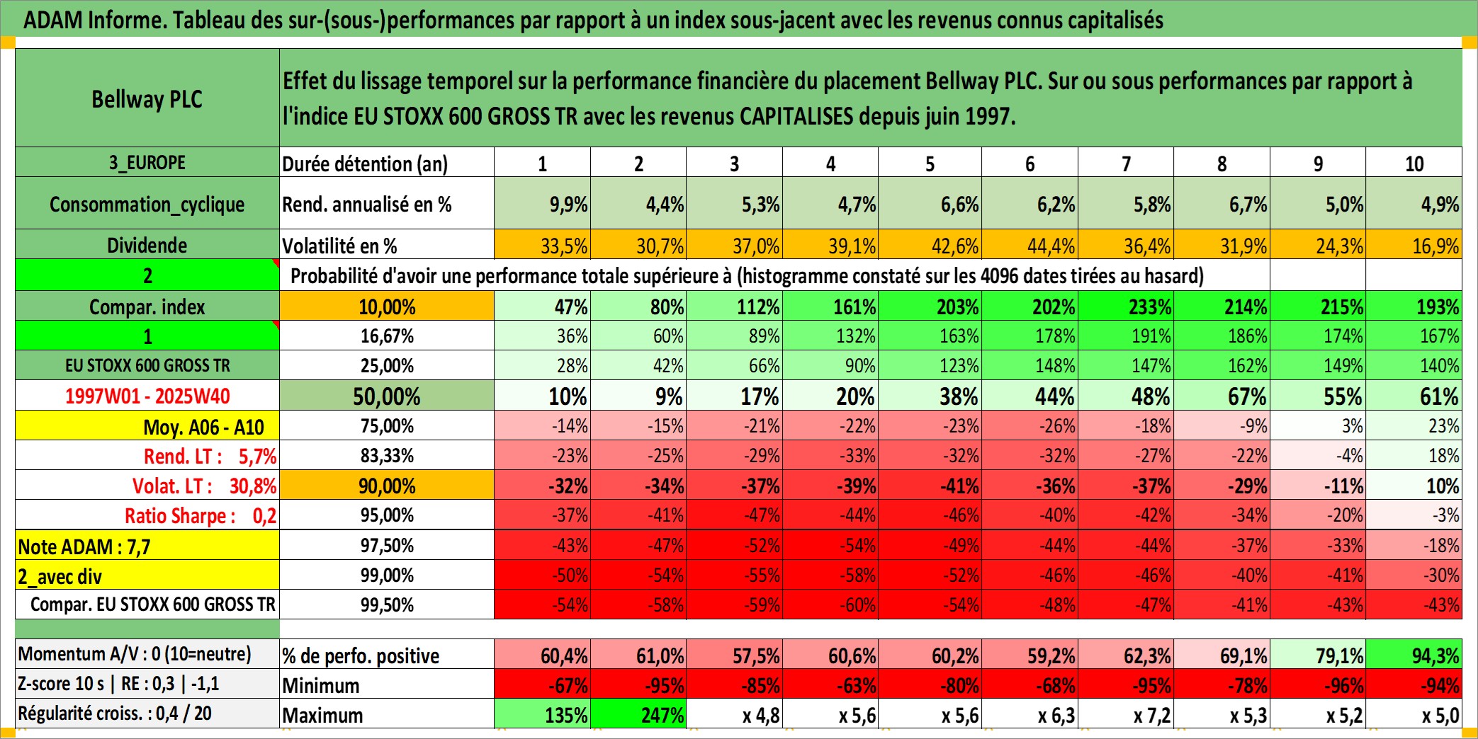 Site dédié aux investisseursPage dédiée sur site financeAnalyse des valorisations hebdomadaires de l'action Bellway PLC. Cet actif est cote en GBX. Les valorisations sont en contrevaleur EURO et couvrent les semaines 1997W01 a 2025W40. Les revenus de cet actif financier sont pris en compte depuis la semaine 1997W23. La note ESG de cet actif n'est pas connue.