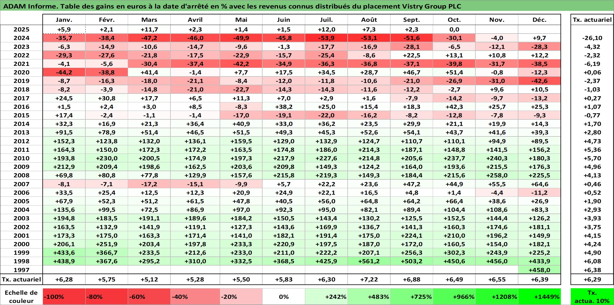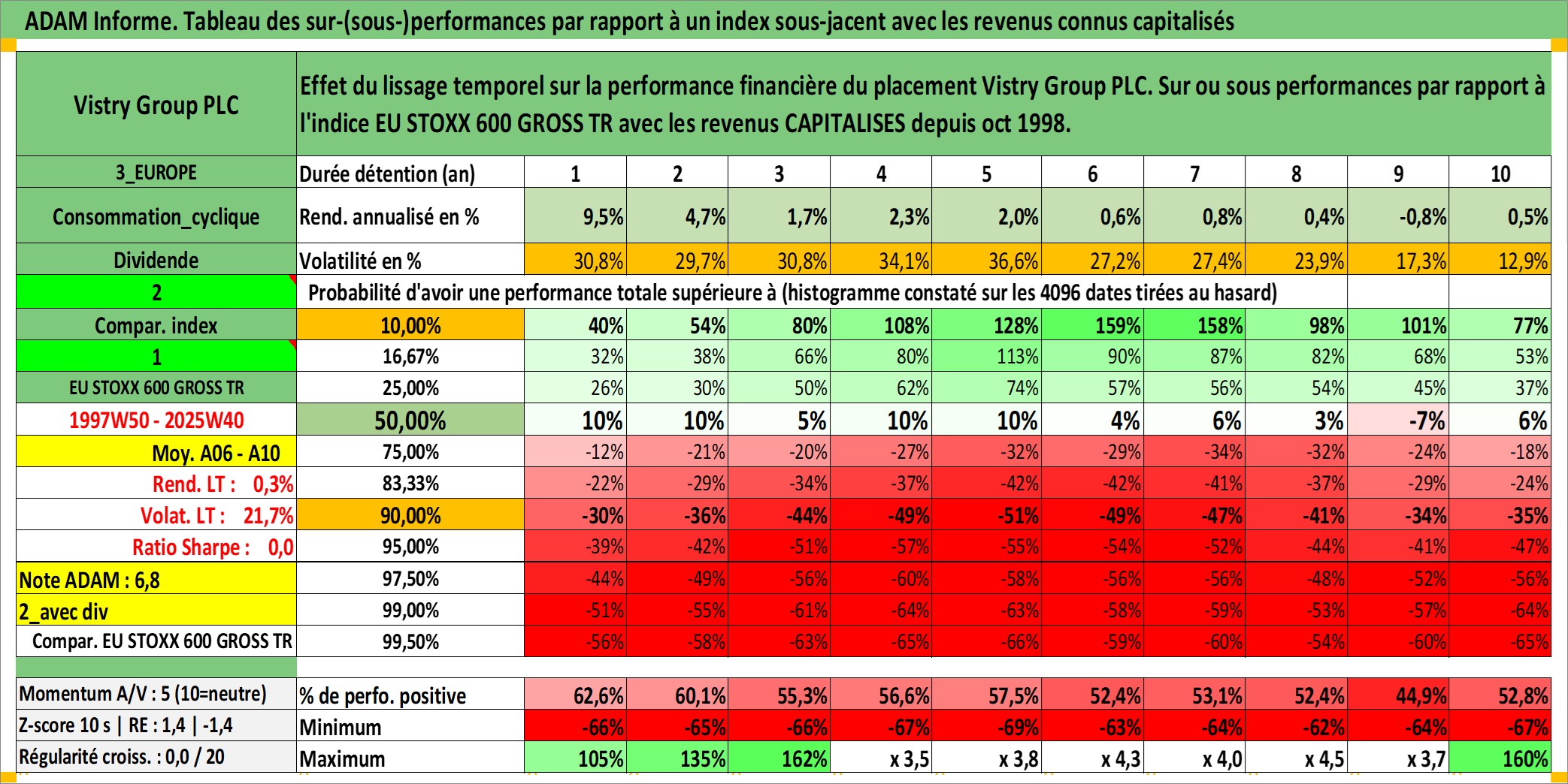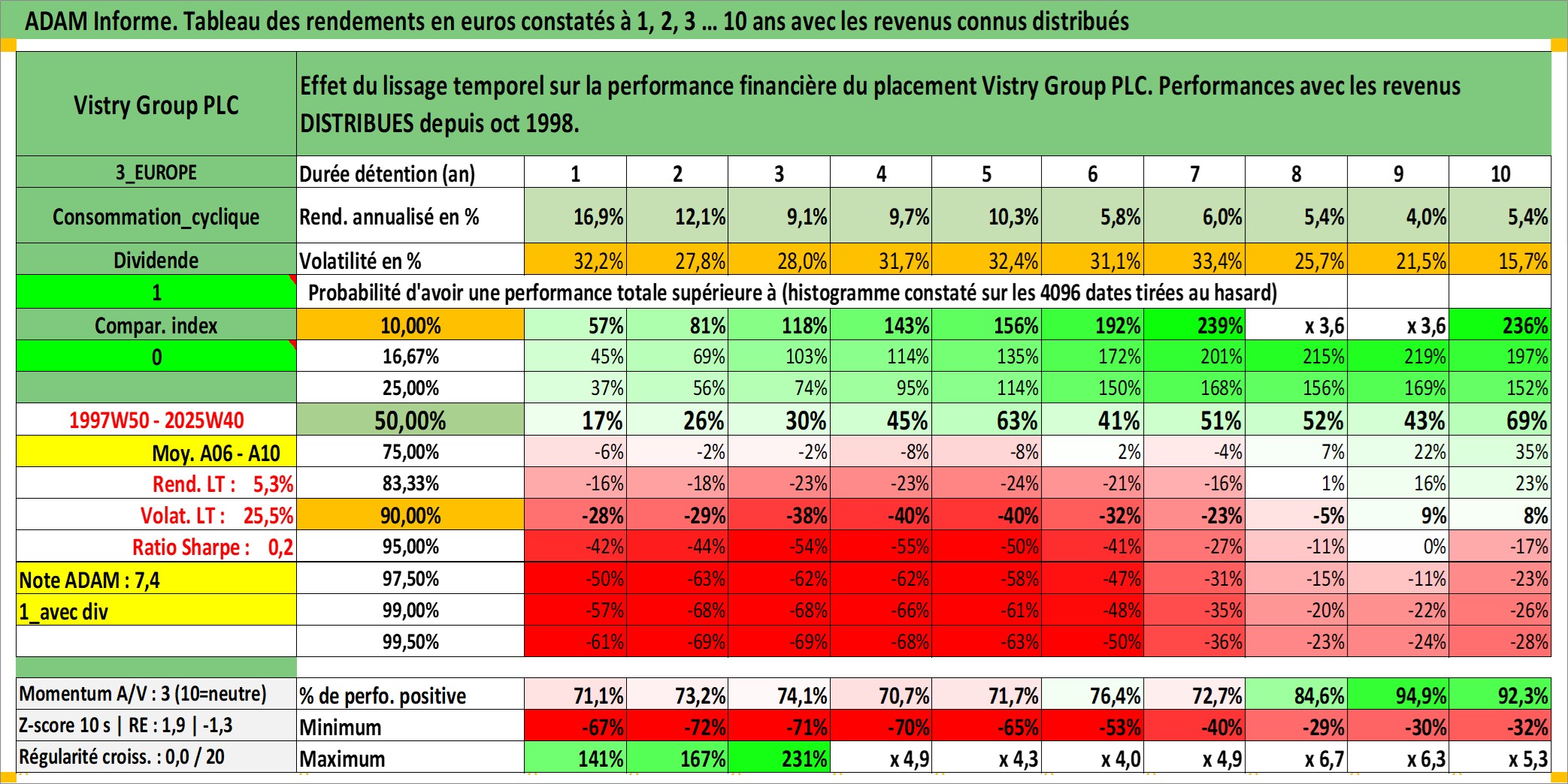 Site dédié aux investisseursPage dédiée sur site financeAnalyse des valorisations hebdomadaires de l'action Vistry Group PLC. Cet actif est cote en GBX. Les valorisations sont en contrevaleur EURO et couvrent les semaines 1997W50 a 2025W40. Les revenus de cet actif financier sont pris en compte depuis la semaine 1998W41. La note ESG de cet actif n'est pas connue.