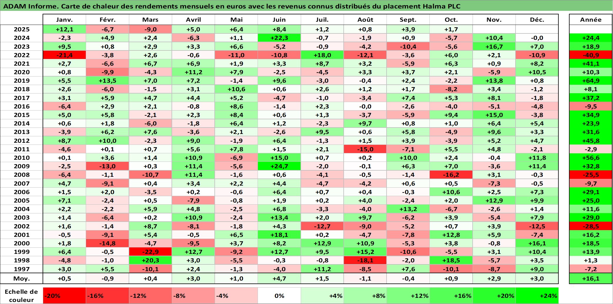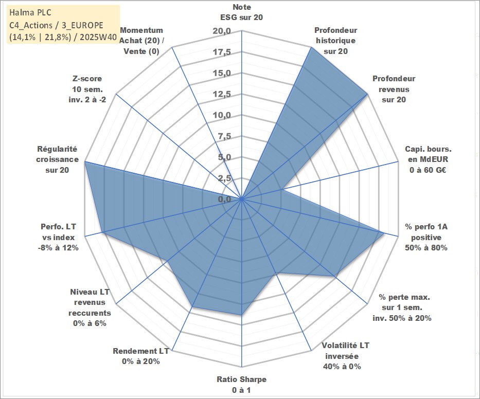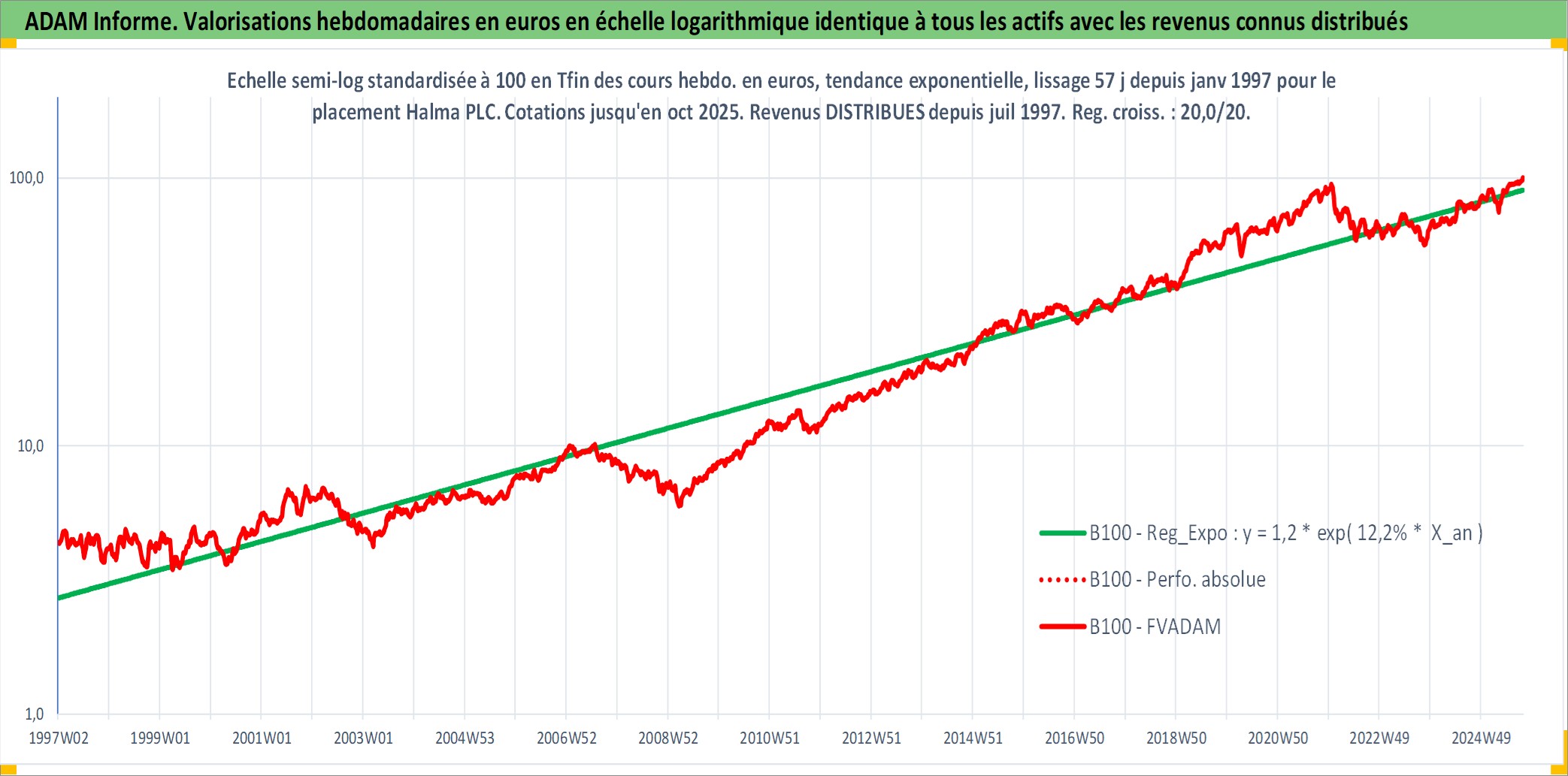 Site dédié aux investisseursPage dédiée sur site financeAnalyse des valorisations hebdomadaires de l'action Halma PLC. Cet actif est cote en GBX. Les valorisations sont en contrevaleur EURO et couvrent les semaines 1997W01 a 2025W40. Les revenus de cet actif financier sont pris en compte depuis la semaine 1997W29. La note ESG de cet actif n'est pas connue.