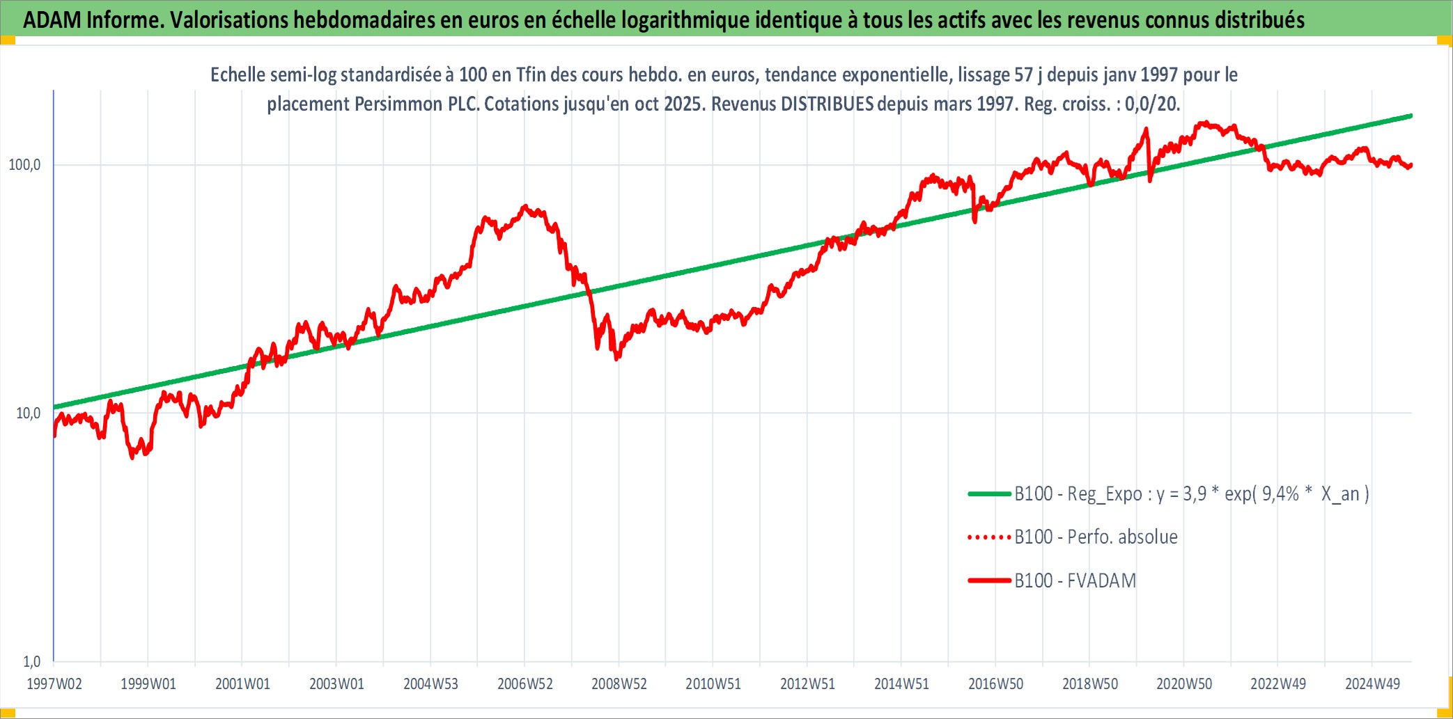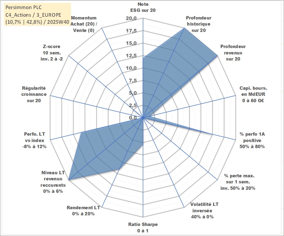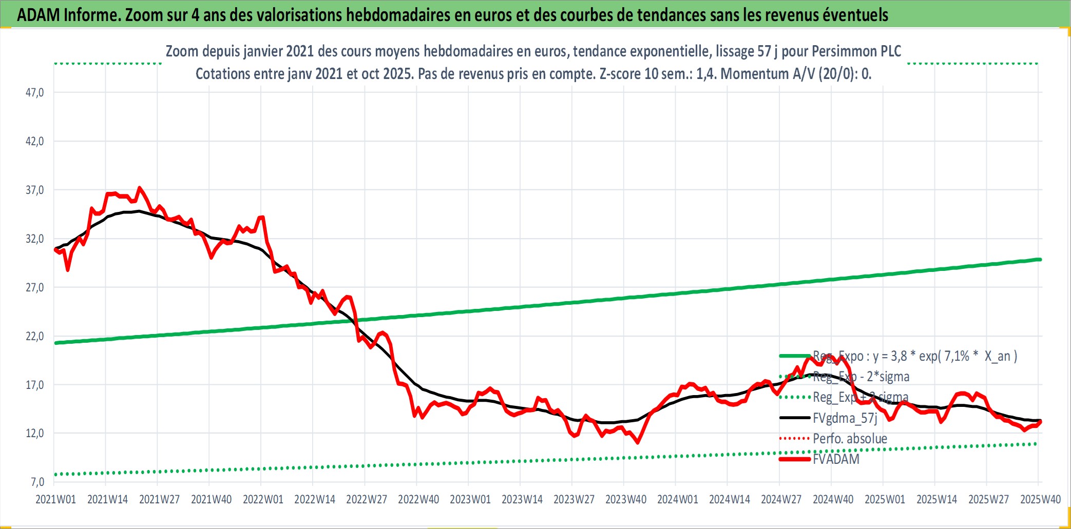 Site dédié aux investisseursPage dédiée sur site financeAnalyse des valorisations hebdomadaires de l'action Persimmon PLC. Cet actif est cote en GBX. Les valorisations sont en contrevaleur EURO et couvrent les semaines 1997W01 a 2025W40. Les revenus de cet actif financier sont pris en compte depuis la semaine 1997W13. La note globale ESG de cet actif est estimee a 12.0 (apres rebasage entre 0 et 20).
