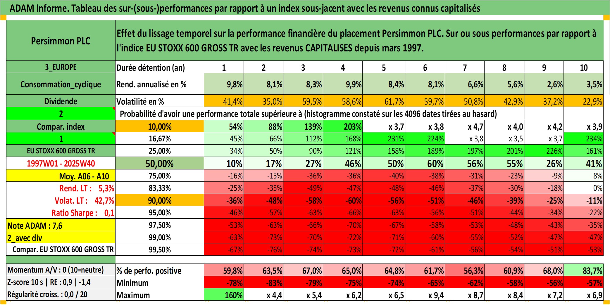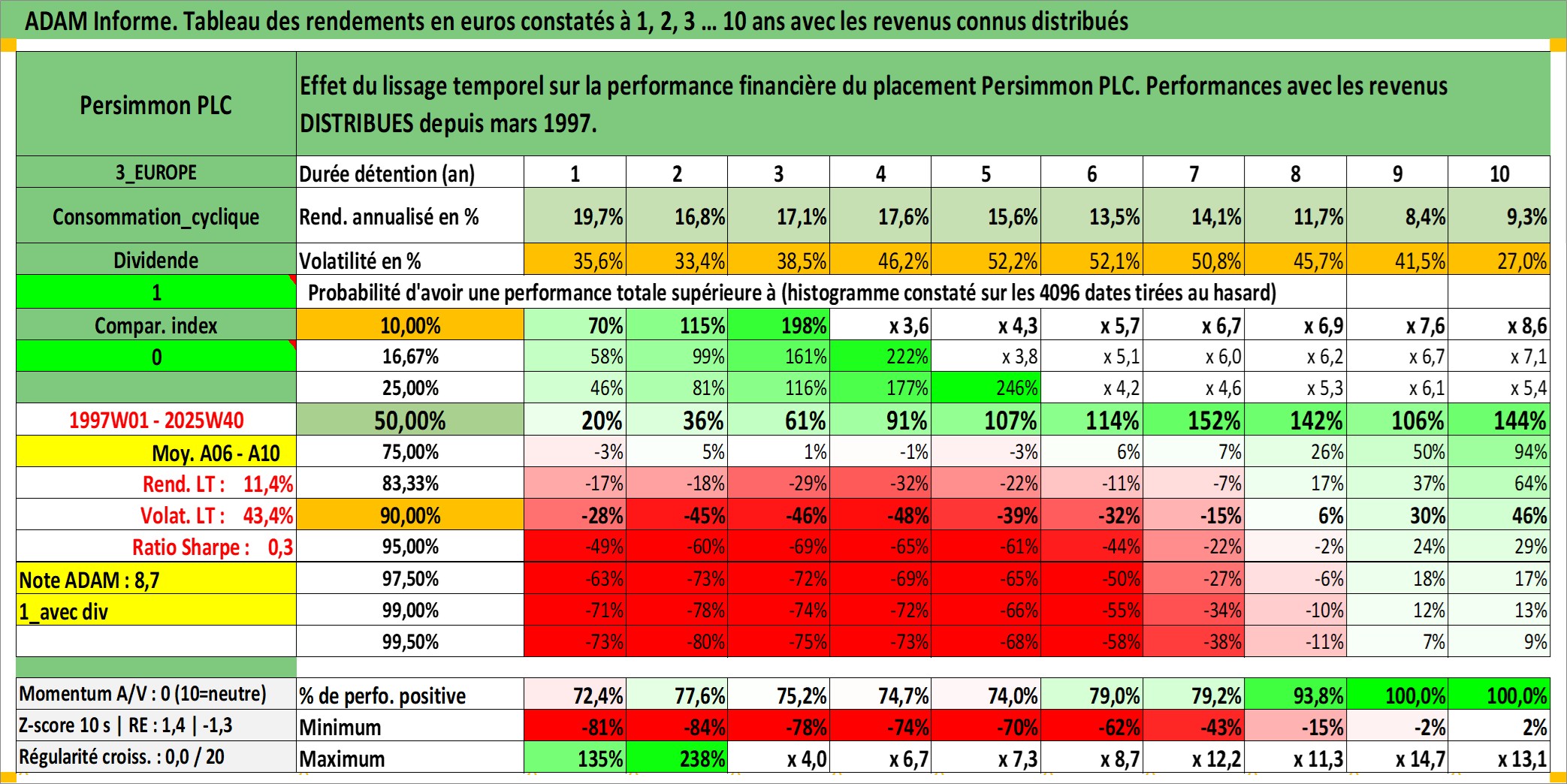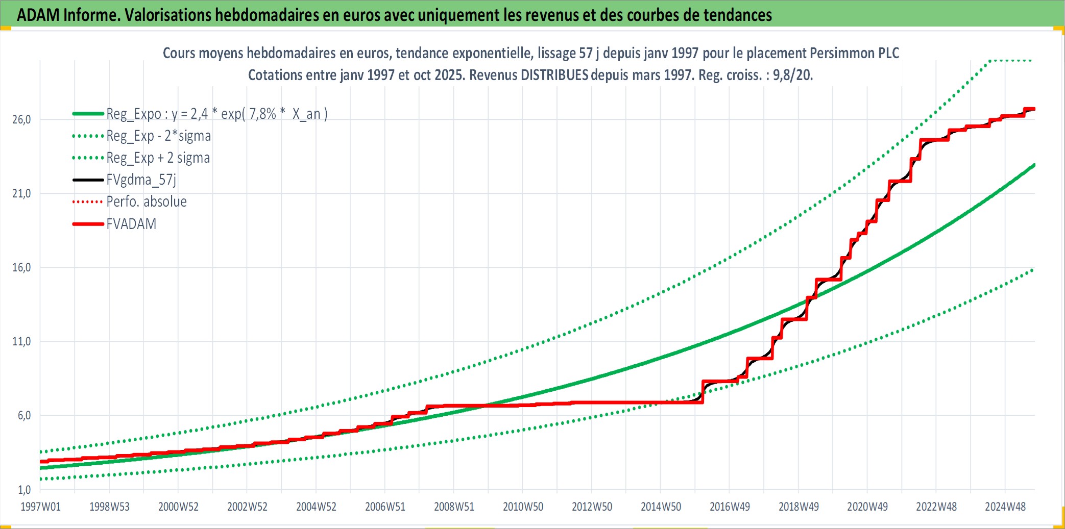 Site dédié aux investisseursPage dédiée sur site financeAnalyse des valorisations hebdomadaires de l'action Persimmon PLC. Cet actif est cote en GBX. Les valorisations sont en contrevaleur EURO et couvrent les semaines 1997W01 a 2025W40. Les revenus de cet actif financier sont pris en compte depuis la semaine 1997W13. La note globale ESG de cet actif est estimee a 12.0 (apres rebasage entre 0 et 20).