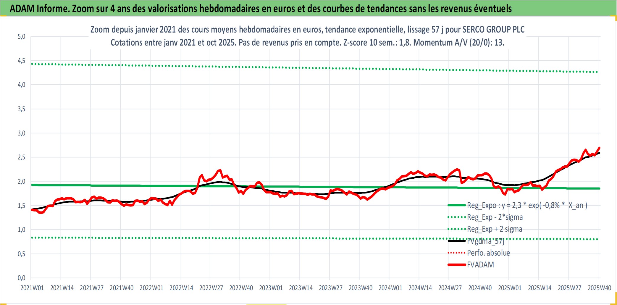 Site dédié aux investisseursPage dédiée sur site financeAnalyse des valorisations hebdomadaires de l'action SERCO GROUP PLC. Cet actif est cote en GBX. Les valorisations sont en contrevaleur EURO et couvrent les semaines 1997W01 a 2025W40. Les revenus de cet actif financier sont pris en compte depuis la semaine 1997W11. La note ESG de cet actif n'est pas connue.
