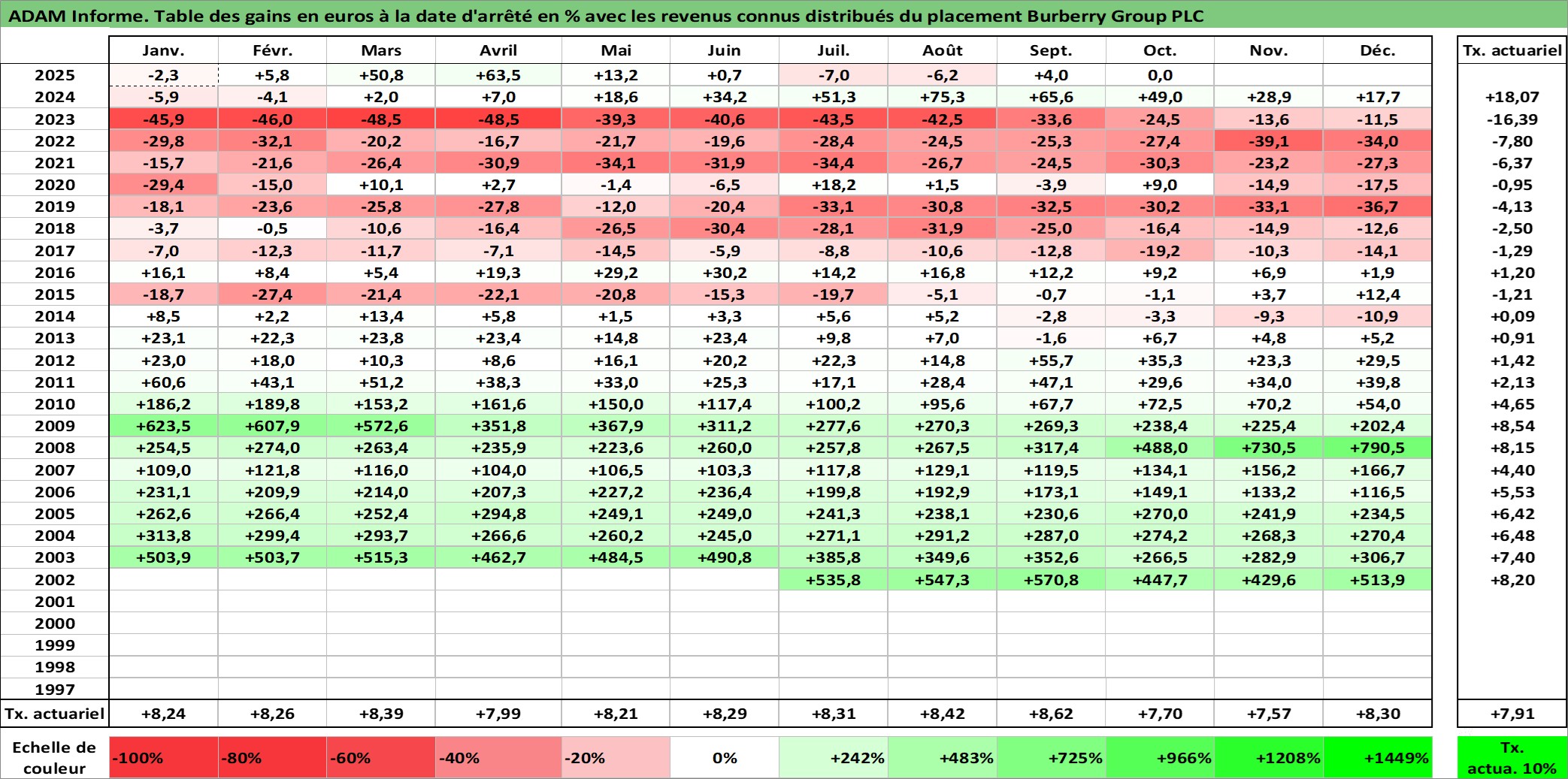 Dernière perfo 1 an en %