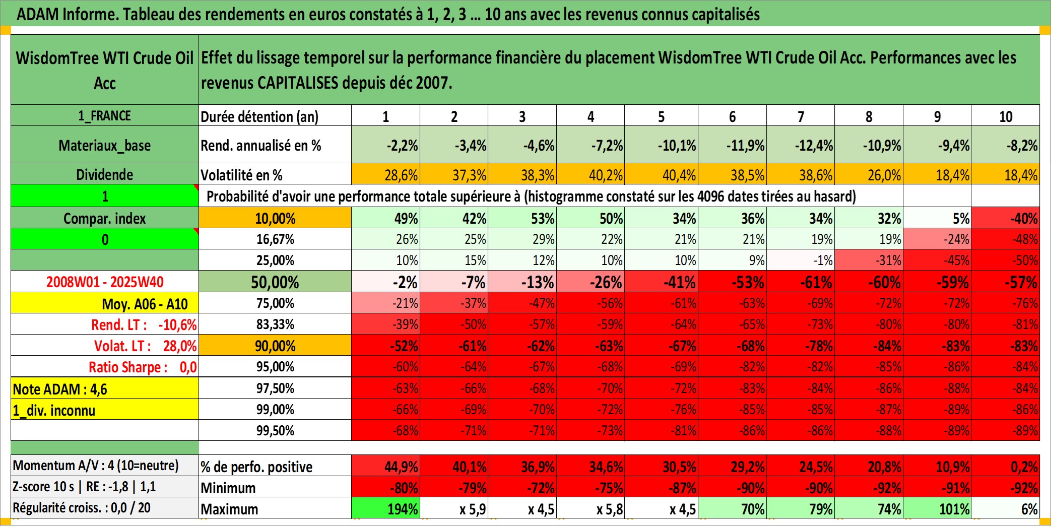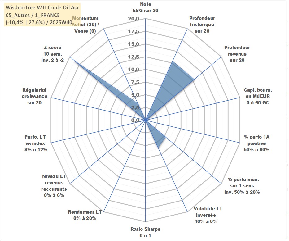 Site dédié aux investisseursPage dédiée sur site financeAnalyse des valorisations hebdomadaires du fonds WisdomTree WTI Crude Oil Acc. Cet actif est cote en EUR. Les valorisations couvrent les semaines 2008W01 a 2025W40. Les revenus de cet actif financier sont pris en compte depuis la semaine 2008W01. La note ESG de cet actif n'est pas connue.