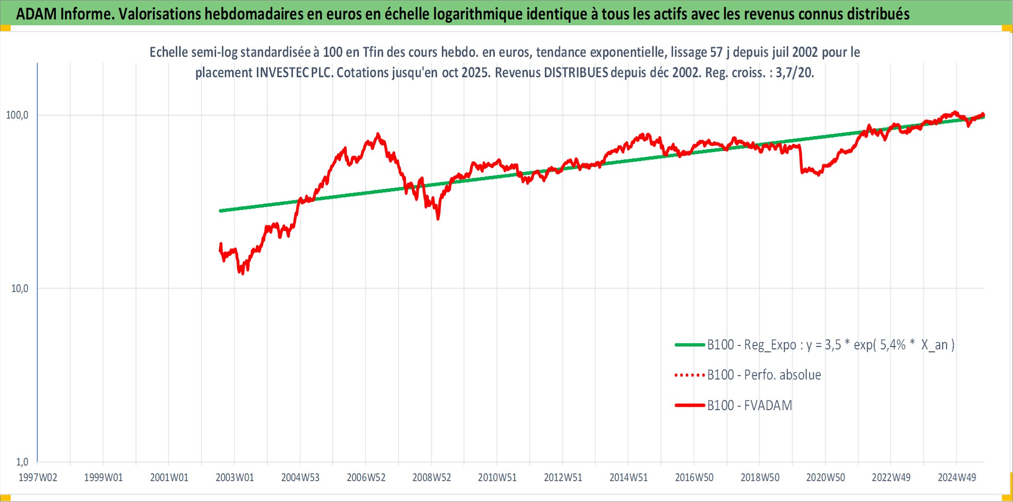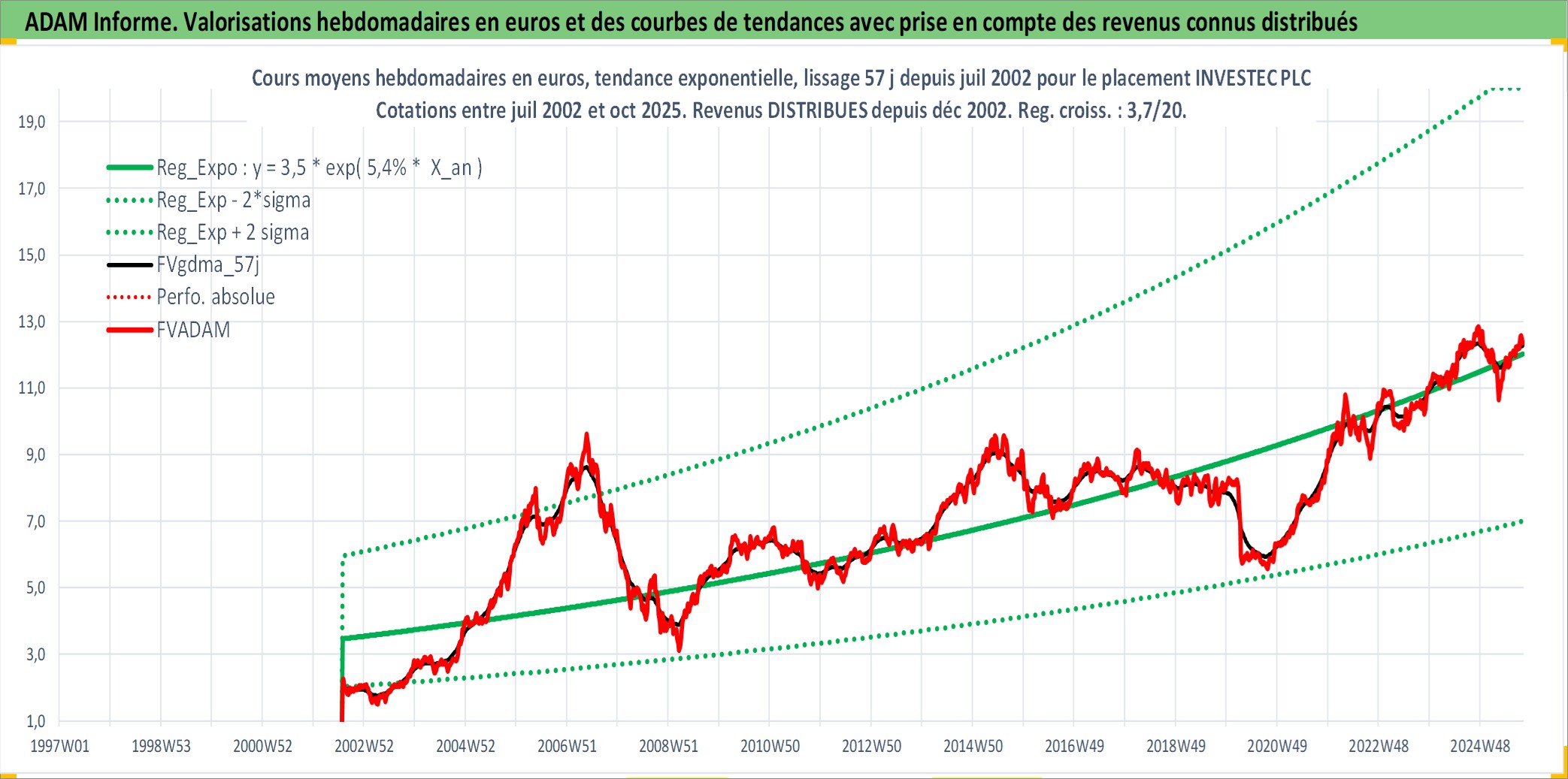 Site dédié aux investisseursPage dédiée sur site financeAnalyse des valorisations hebdomadaires de l'action INVESTEC PLC. Cet actif est cote en GBX. Les valorisations sont en contrevaleur EURO et couvrent les semaines 2002W30 a 2025W40. Les revenus de cet actif financier sont pris en compte depuis la semaine 2002W50. La note globale ESG de cet actif est estimee a 12.0 (apres rebasage entre 0 et 20).