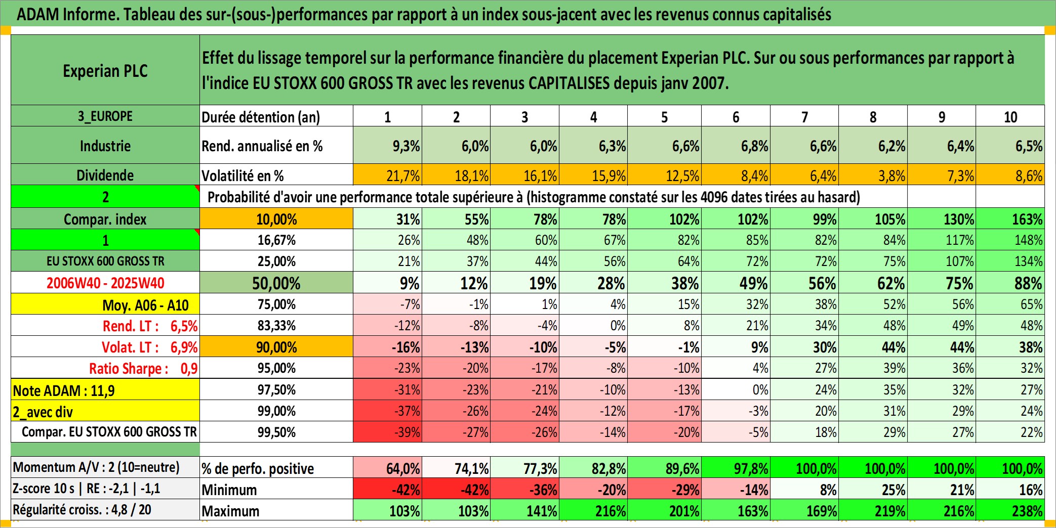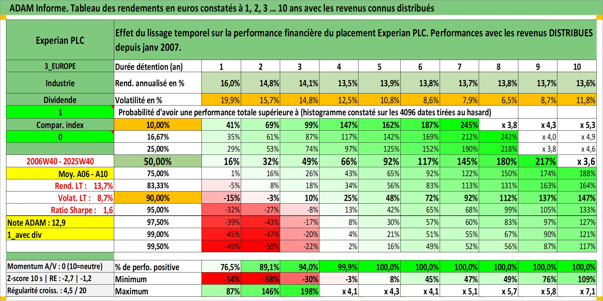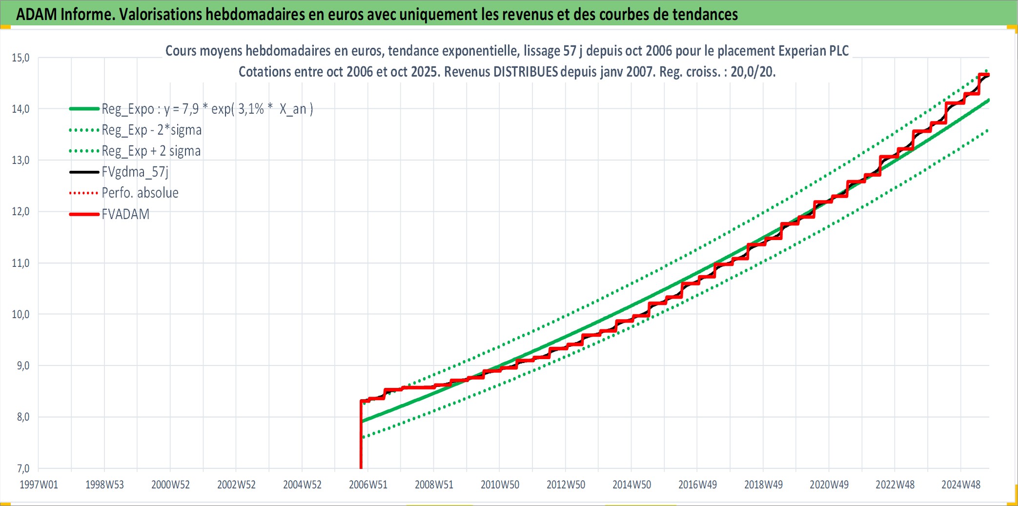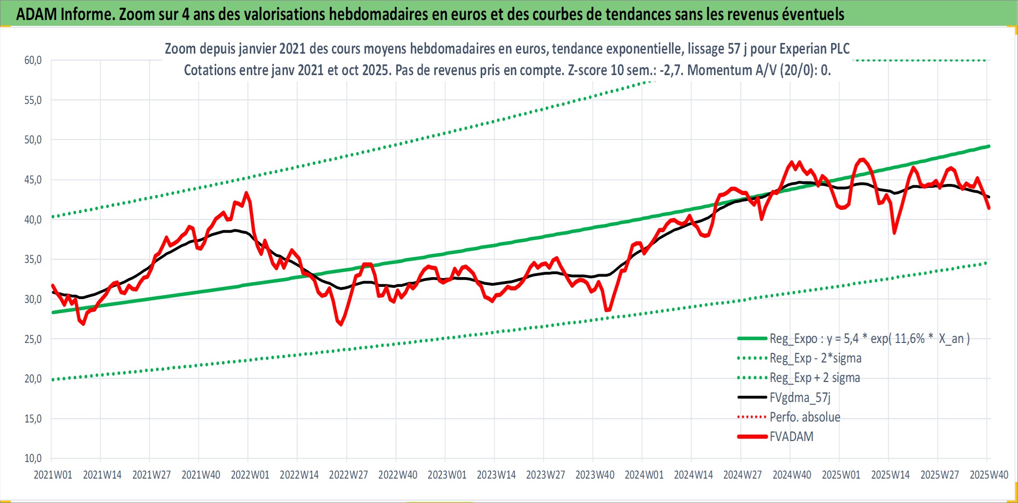 Site dédié aux investisseursPage dédiée sur site financeAnalyse des valorisations hebdomadaires de l'action Experian PLC. Cet actif est cote en GBX. Les valorisations sont en contrevaleur EURO et couvrent les semaines 2006W40 a 2025W40. Les revenus de cet actif financier sont pris en compte depuis la semaine 2007W01. La note globale ESG de cet actif est estimee a 16.0 (apres rebasage entre 0 et 20).