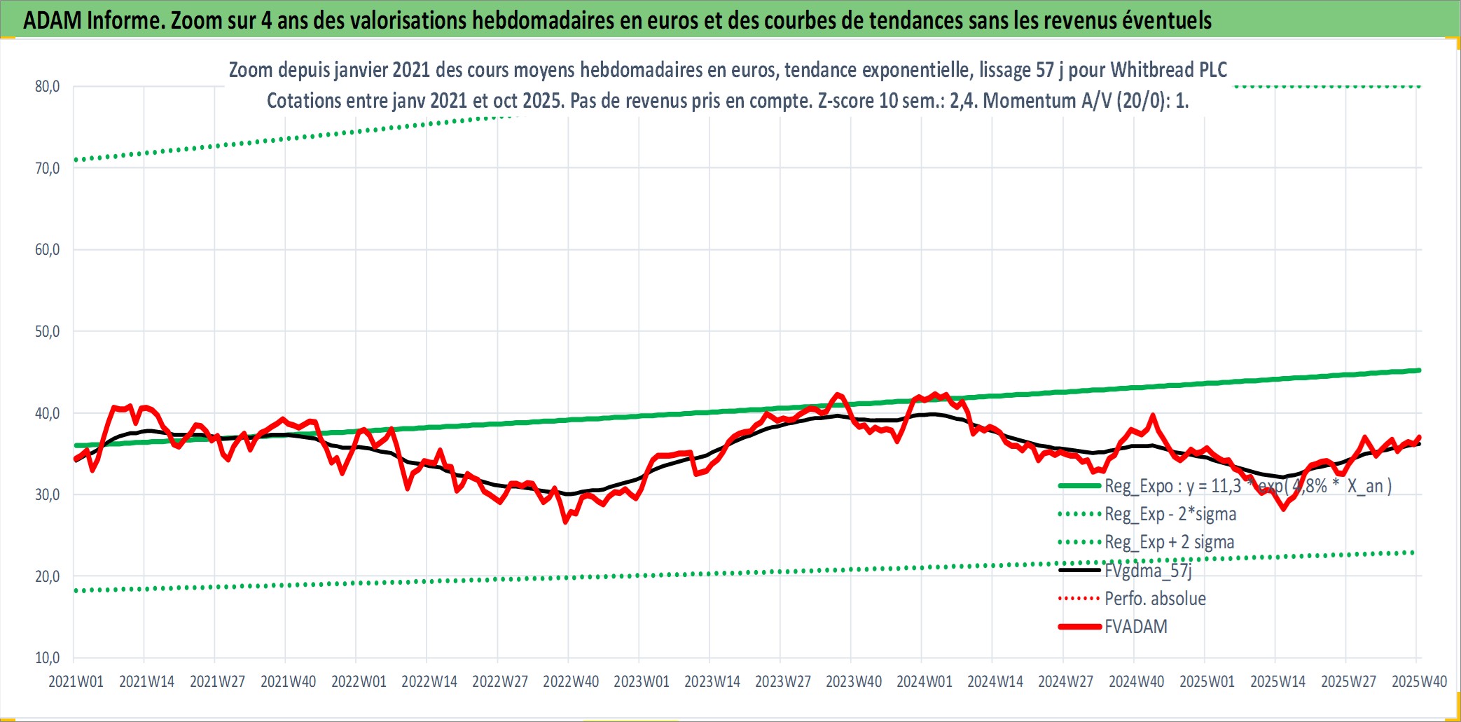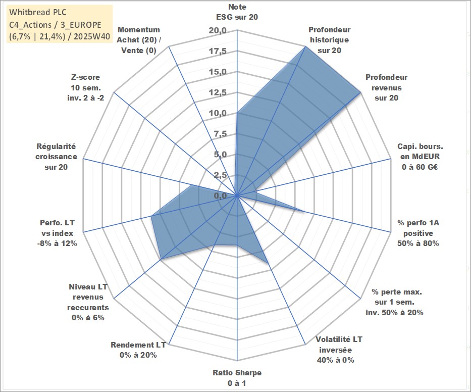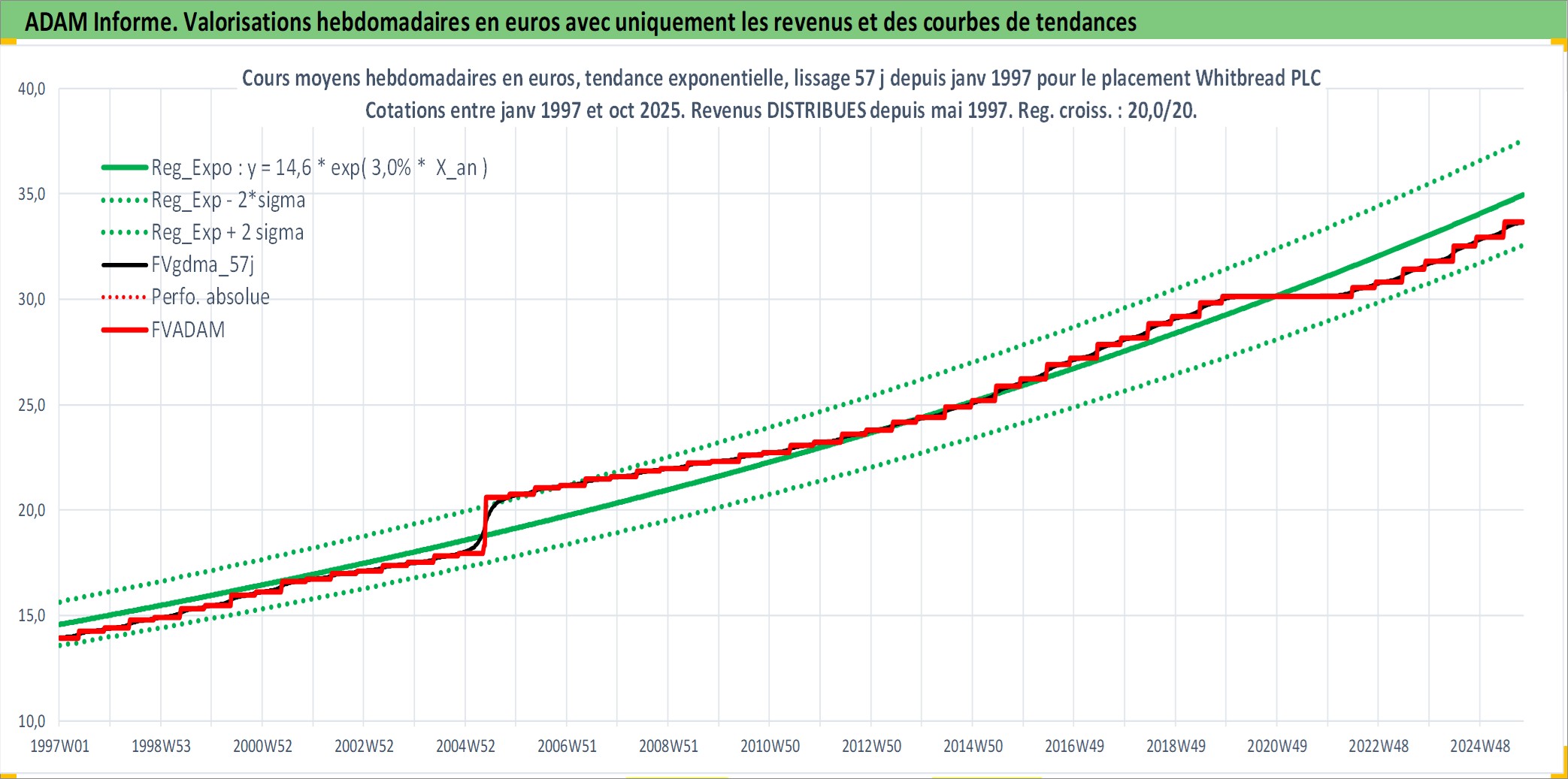 Site dédié aux investisseursPage dédiée sur site financeAnalyse des valorisations hebdomadaires de l'action Whitbread PLC. Cet actif est cote en GBX. Les valorisations sont en contrevaleur EURO et couvrent les semaines 1997W01 a 2025W40. Les revenus de cet actif financier sont pris en compte depuis la semaine 1997W21. La note globale ESG de cet actif est estimee a 10.0 (apres rebasage entre 0 et 20).