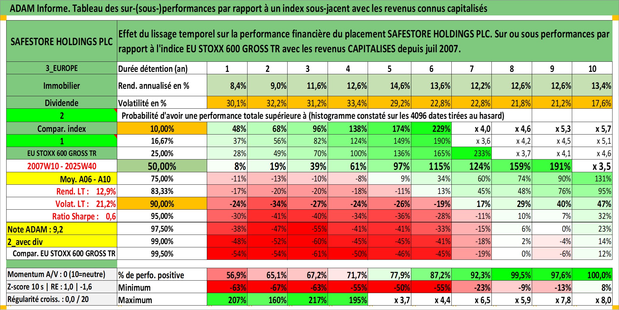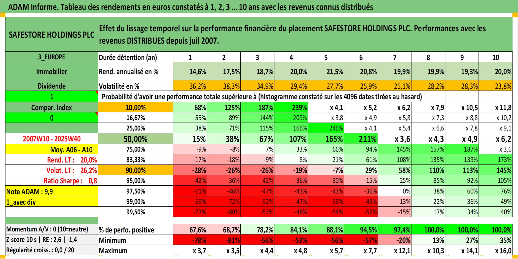 Site dédié aux investisseursPage dédiée sur site financeAnalyse des valorisations hebdomadaires de l'action SAFESTORE HOLDINGS PLC. Cet actif est cote en GBX. Les valorisations sont en contrevaleur EURO et couvrent les semaines 2007W10 a 2025W40. Les revenus de cet actif financier sont pris en compte depuis la semaine 2007W29. La note ESG de cet actif n'est pas connue.