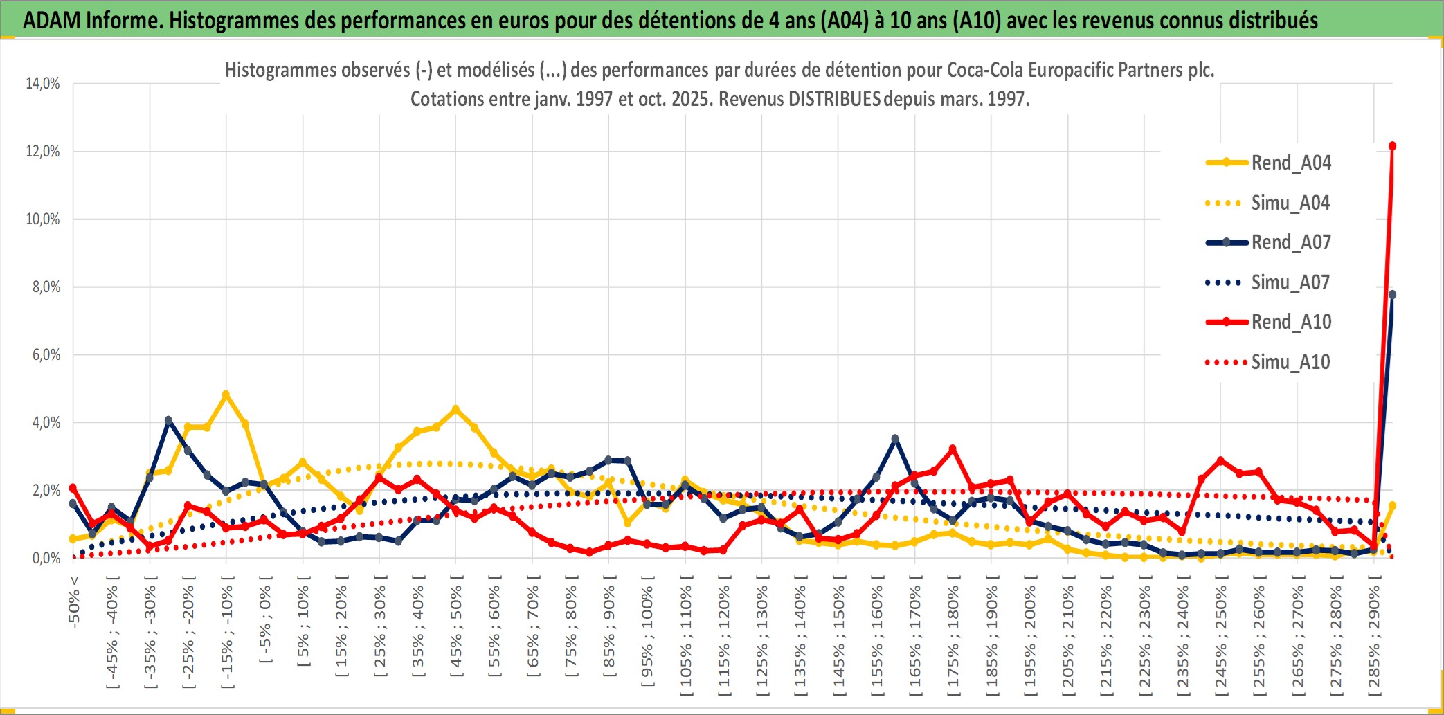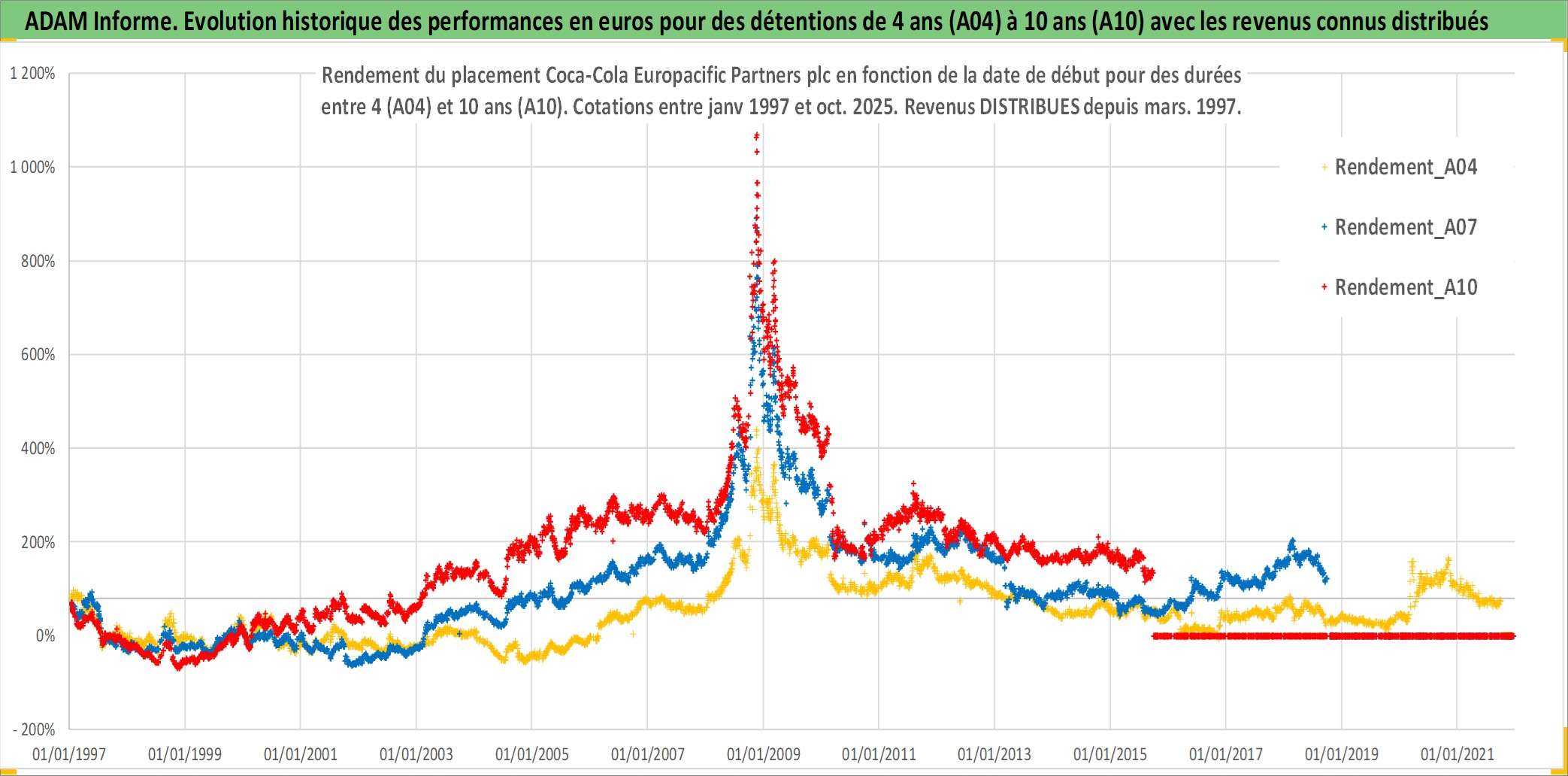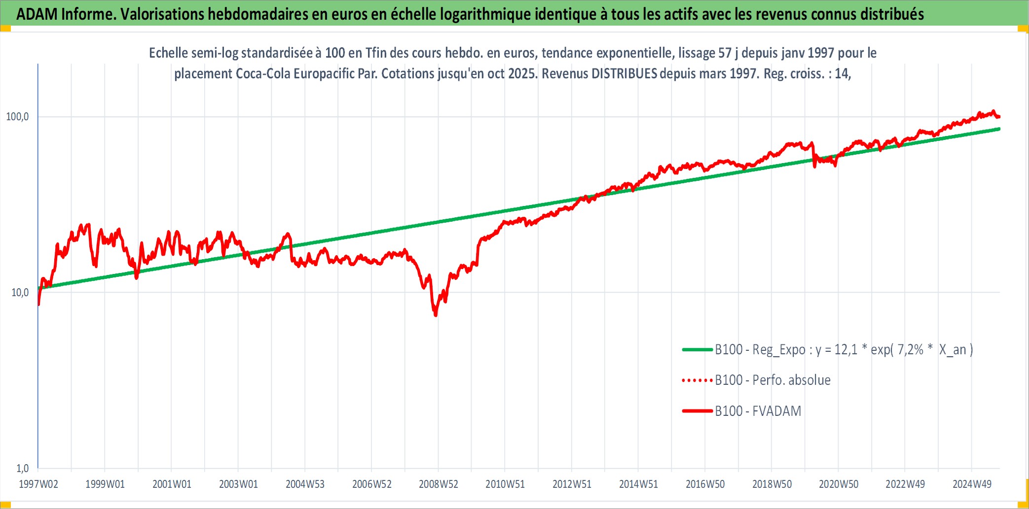 Site dédié aux investisseursPage dédiée sur site financeAnalyse des valorisations hebdomadaires de l'action Coca-Cola Europacific Partners plc. Cet actif est cote en USD. Les valorisations sont en contrevaleur EURO et couvrent les semaines 1997W01 a 2025W40. Les revenus de cet actif financier sont pris en compte depuis la semaine 1997W12. La note ESG de cet actif n'est pas connue.