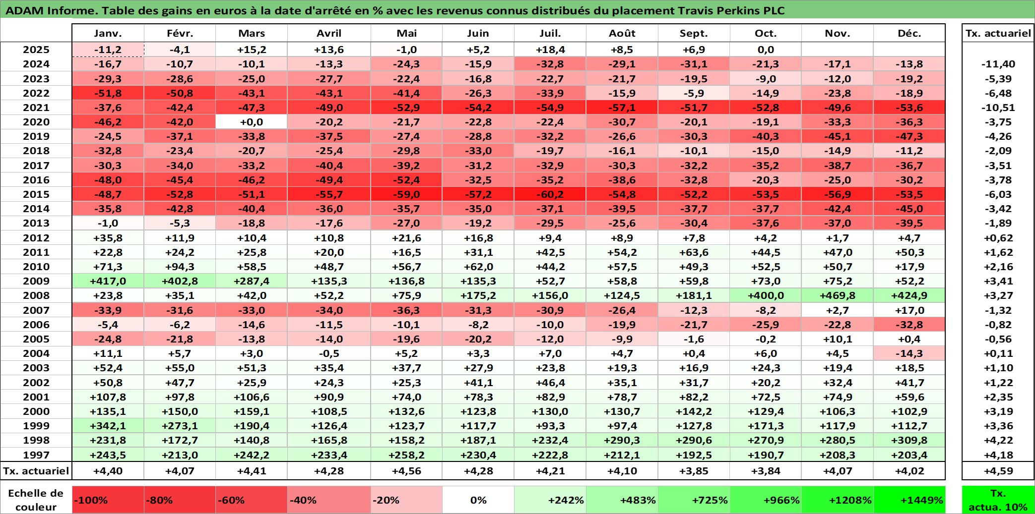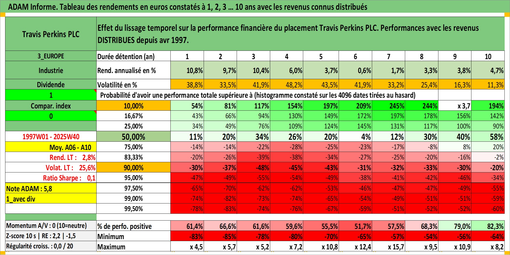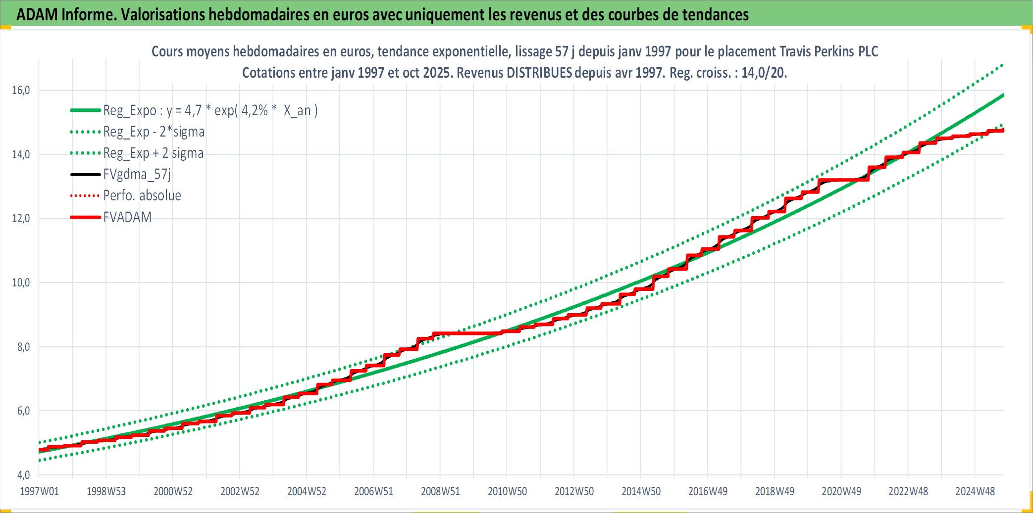 Site dédié aux investisseursPage dédiée sur site financeAnalyse des valorisations hebdomadaires de l'action Travis Perkins PLC. Cet actif est cote en GBX. Les valorisations sont en contrevaleur EURO et couvrent les semaines 1997W01 a 2025W40. Les revenus de cet actif financier sont pris en compte depuis la semaine 1997W15. La note ESG de cet actif n'est pas connue.