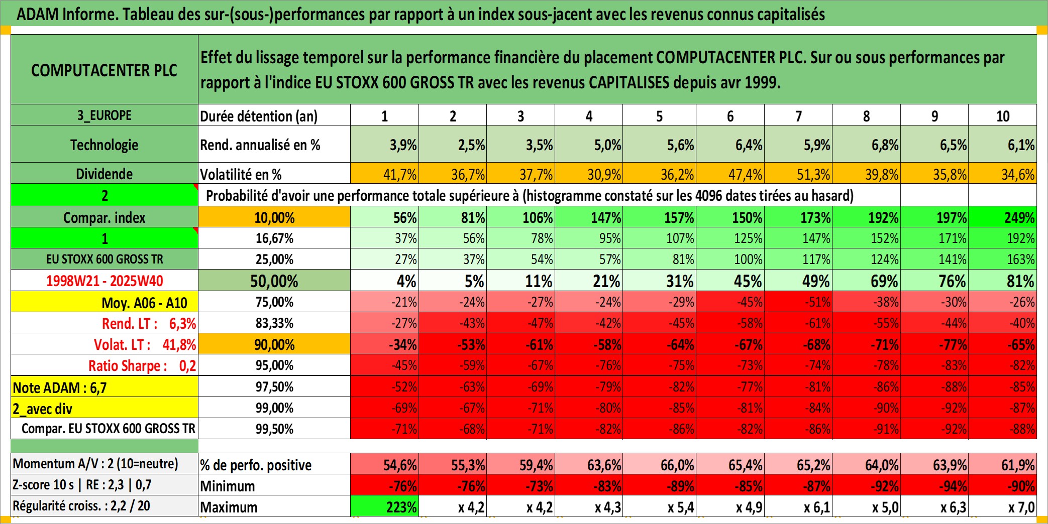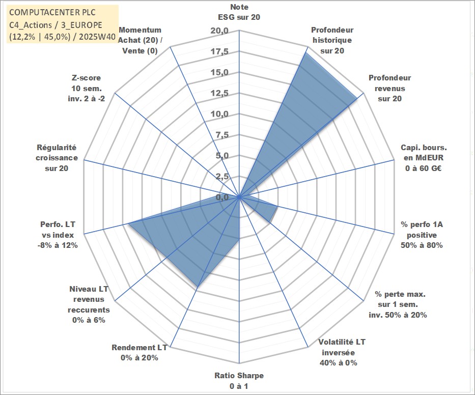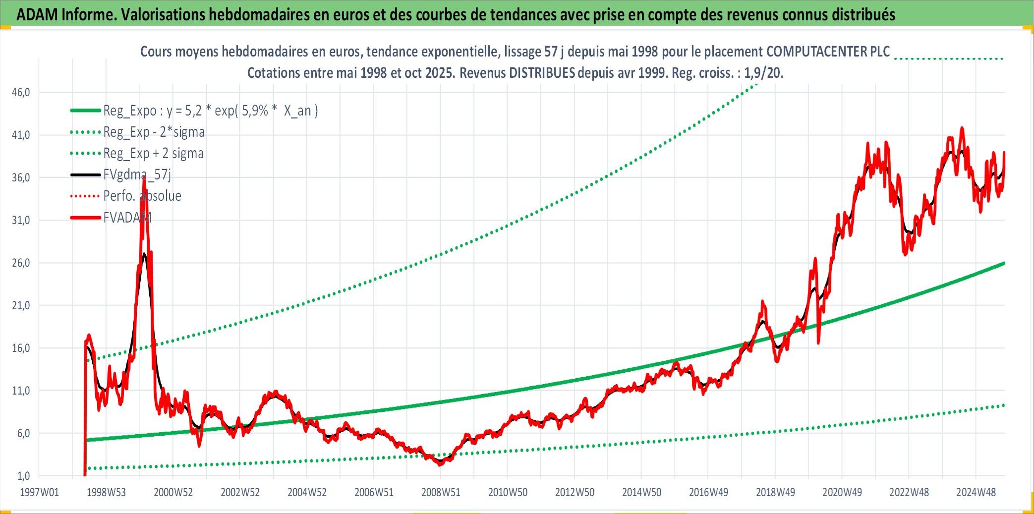 Site dédié aux investisseursPage dédiée sur site financeAnalyse des valorisations hebdomadaires de l'action COMPUTACENTER PLC. Cet actif est cote en GBX. Les valorisations sont en contrevaleur EURO et couvrent les semaines 1998W21 a 2025W40. Les revenus de cet actif financier sont pris en compte depuis la semaine 1999W17. La note ESG de cet actif n'est pas connue.