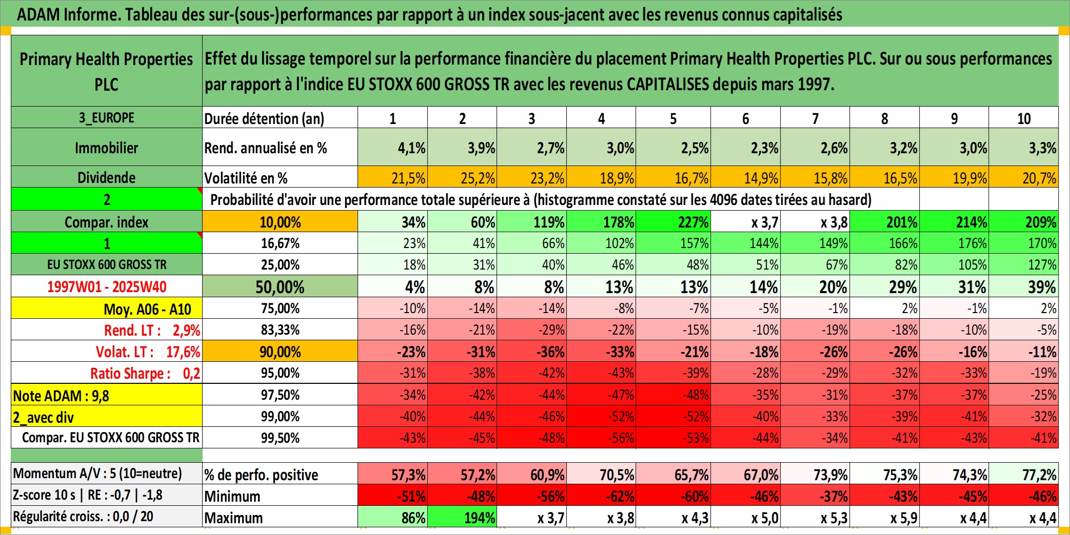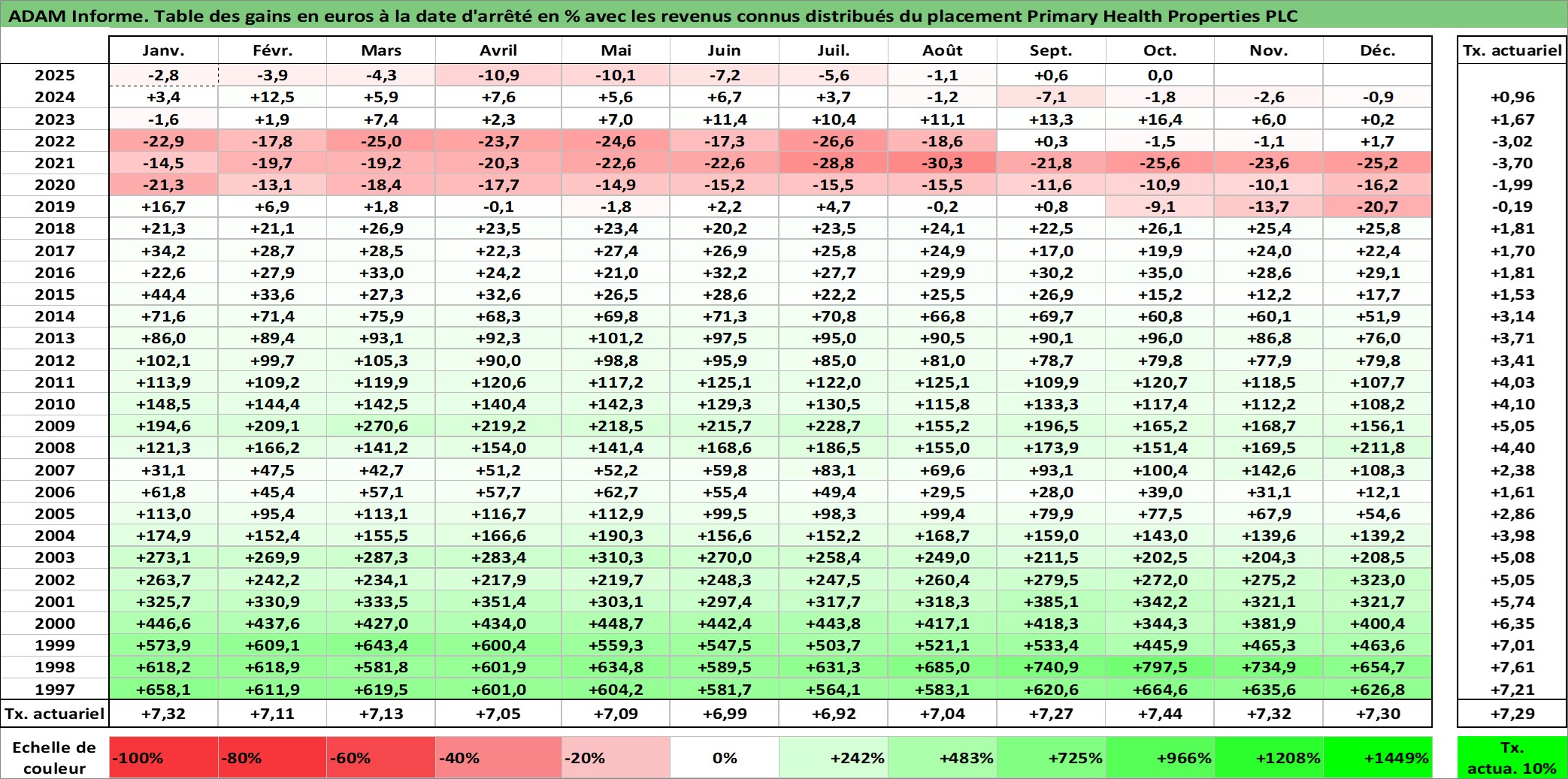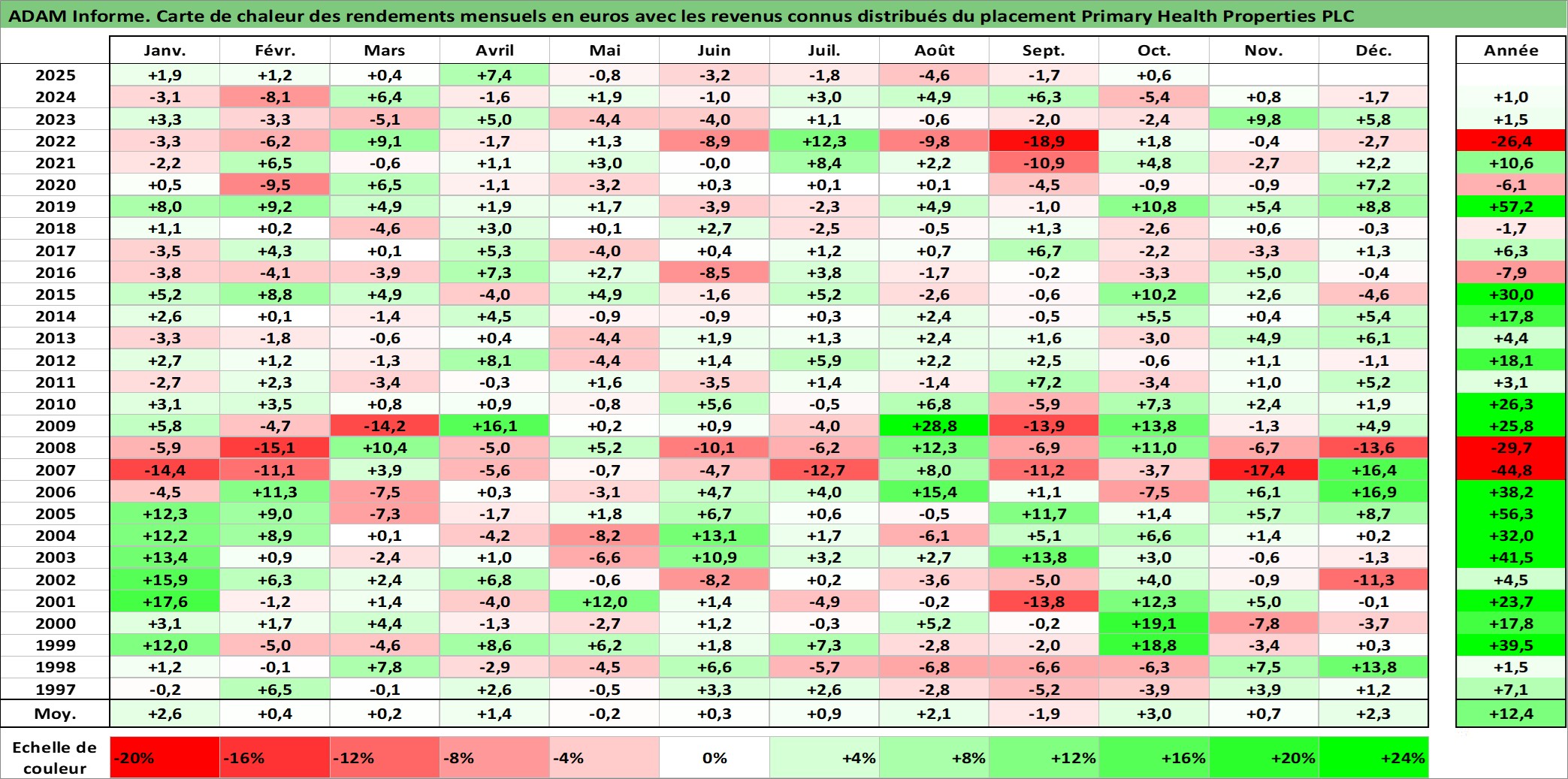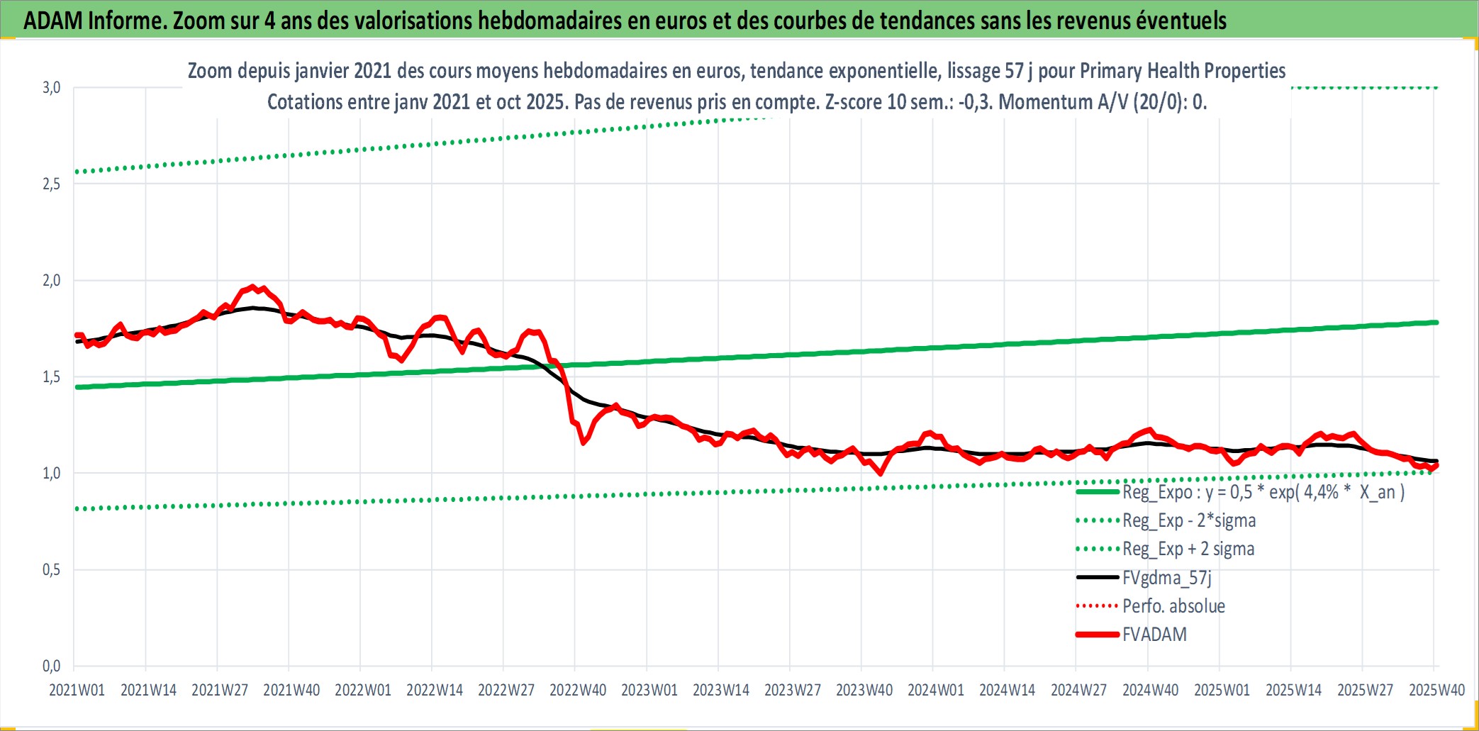 Site dédié aux investisseursPage dédiée sur site financeAnalyse des valorisations hebdomadaires de l'action Primary Health Properties PLC. Cet actif est cote en GBX. Les valorisations sont en contrevaleur EURO et couvrent les semaines 1997W01 a 2025W40. Les revenus de cet actif financier sont pris en compte depuis la semaine 1997W11. La note ESG de cet actif n'est pas connue.