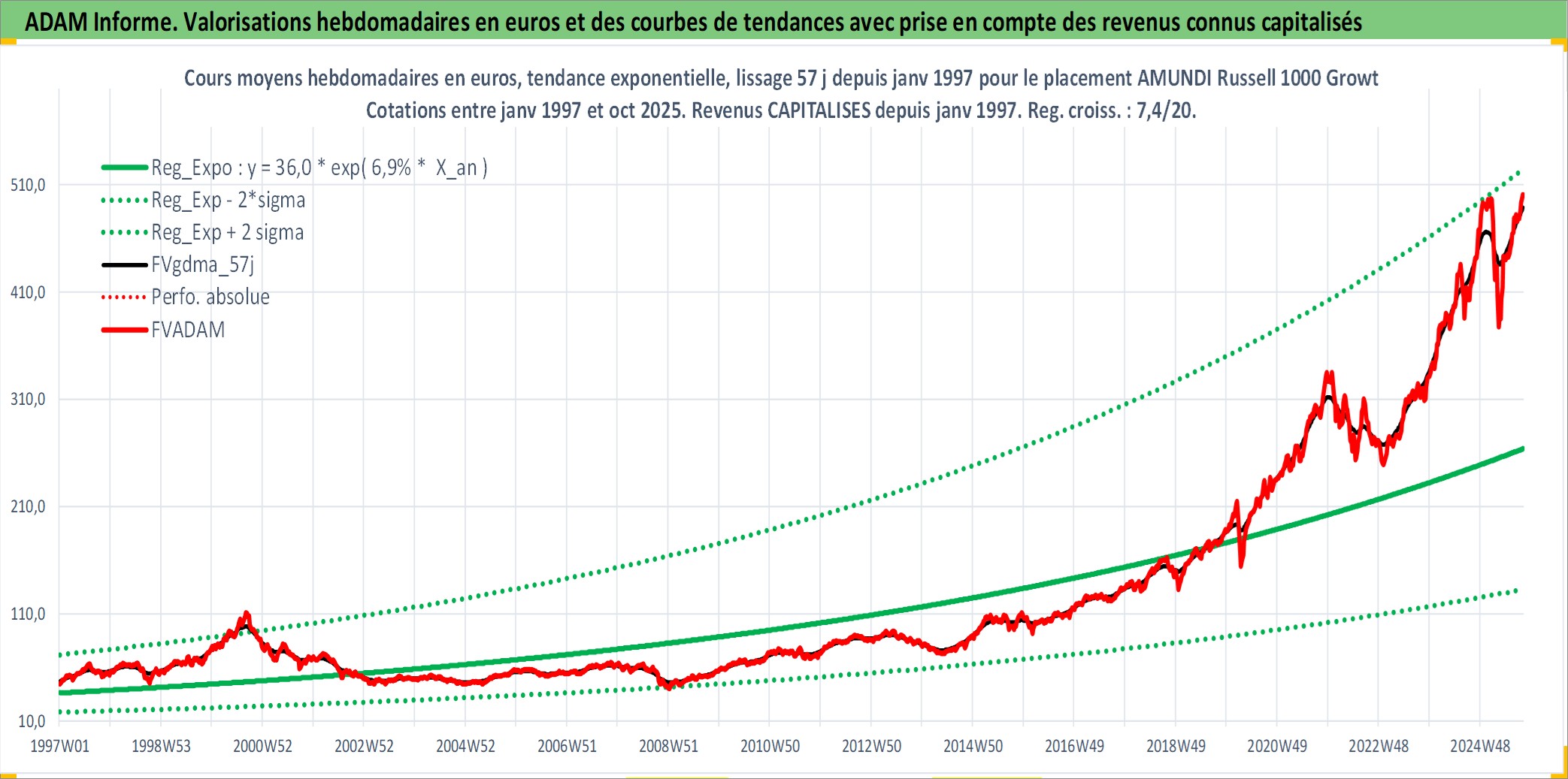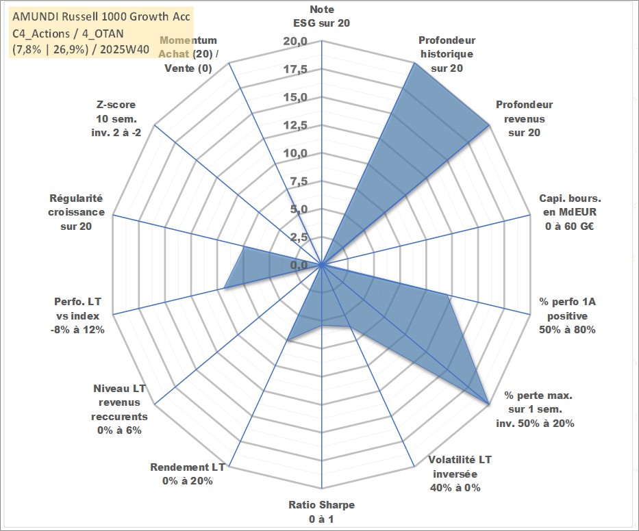 Site dédié aux investisseursPage dédiée sur site financeAnalyse des valorisations hebdomadaires du fonds AMUNDI Russell 1000 Growth Acc. Cet actif est cote en USD. Les valorisations sont en contrevaleur EURO et couvrent les semaines 1997W01 a 2025W40. Les revenus de cet actif financier sont pris en compte depuis la semaine 1997W01. La note ESG de cet actif n'est pas connue.