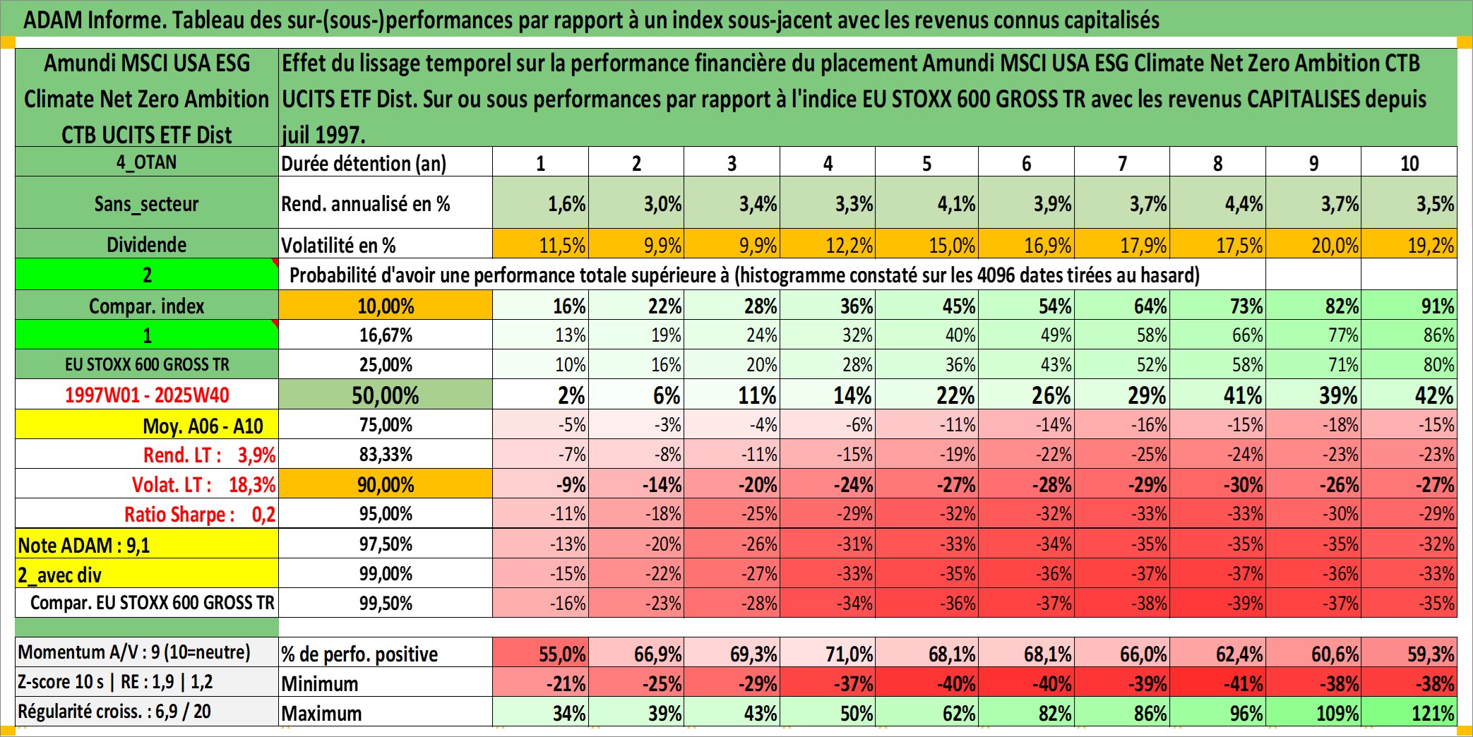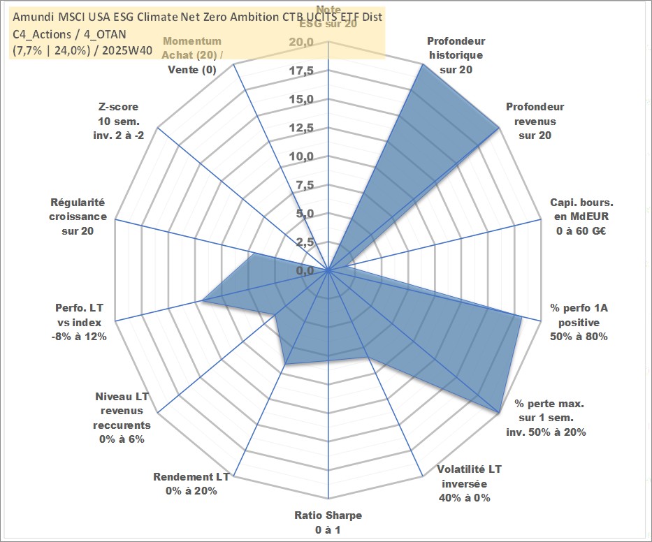 Site dédié aux investisseursPage dédiée sur site financeAnalyse des valorisations hebdomadaires du fonds Amundi MSCI USA ESG Climate Net Zero Ambition CTB UCITS ETF Dist. Cet actif est cote en EUR. Les valorisations couvrent les semaines 1997W01 a 2025W40. Les revenus de cet actif financier sont pris en compte depuis la semaine 1997W28. La note ESG de cet actif n'est pas connue.