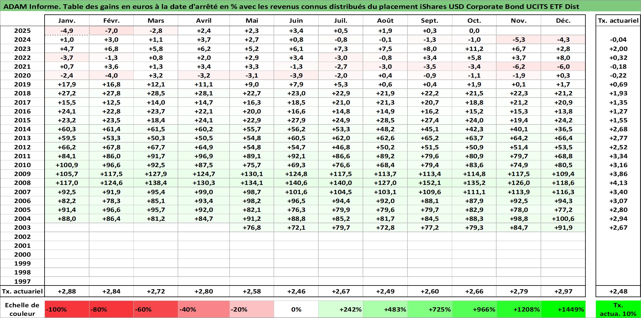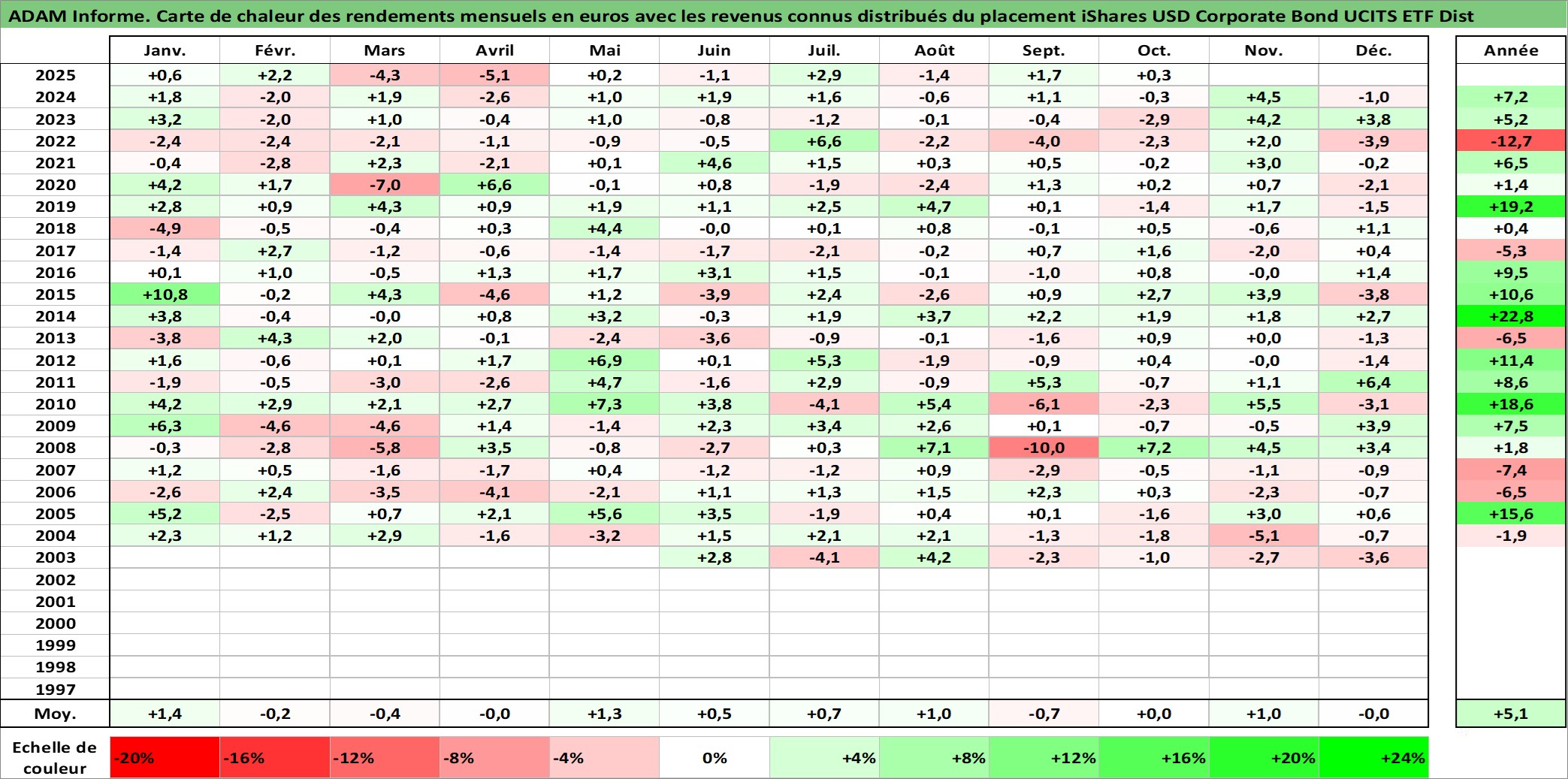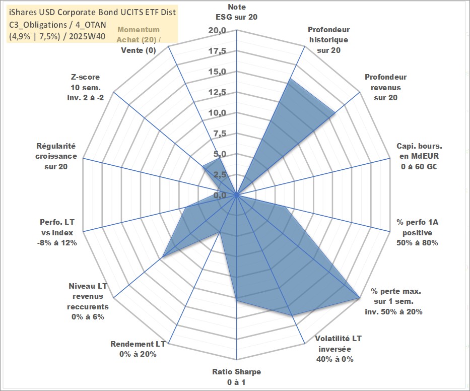 Site dédié aux investisseursPage dédiée sur site financeAnalyse des valorisations hebdomadaires du fonds iShares USD Corporate Bond UCITS ETF Dist. Cet actif est cote en USD. Les valorisations sont en contrevaleur EURO et couvrent les semaines 2003W20 a 2025W40. Les revenus de cet actif financier sont pris en compte depuis la semaine 2003W23. La note ESG de cet actif n'est pas connue.