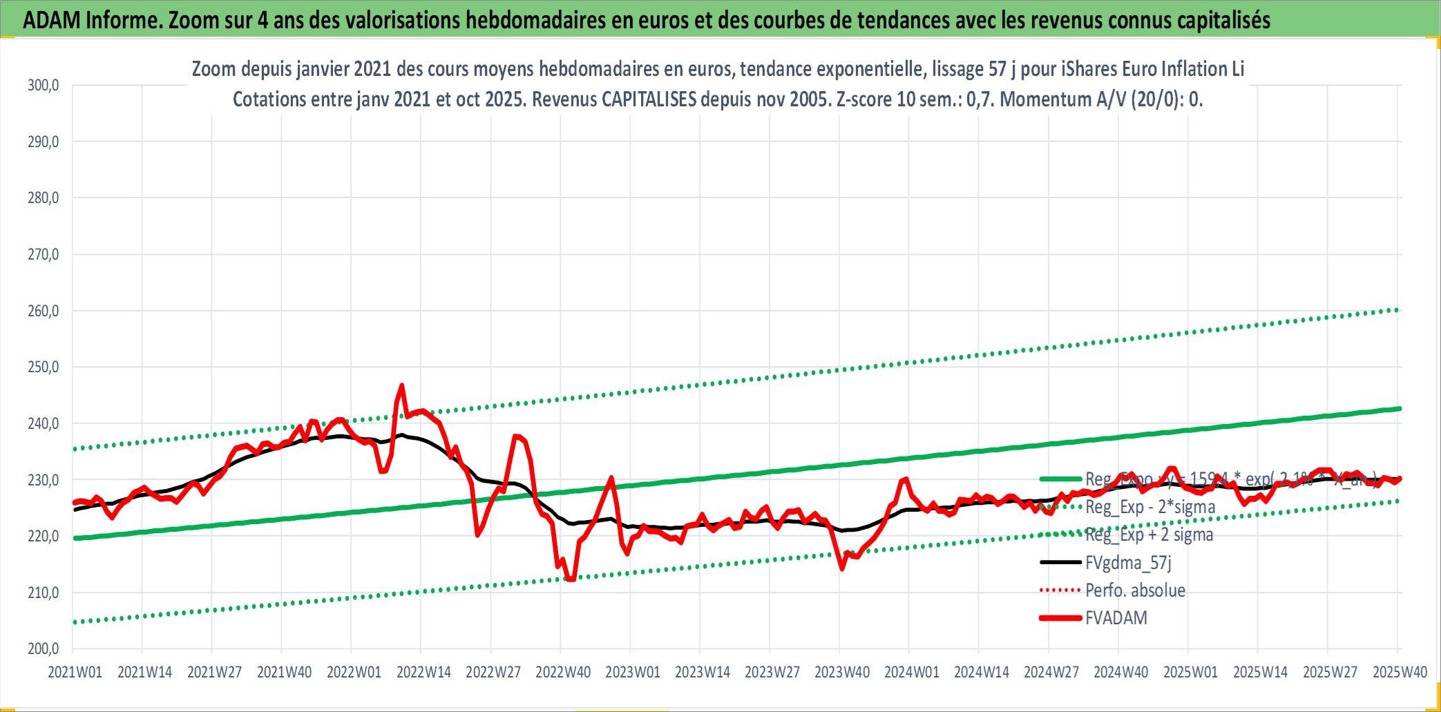 Site dédié aux investisseursPage dédiée sur site financeAnalyse des valorisations hebdomadaires du fonds iShares Euro Inflation Linked Government Bond UCITS ETF Acc. Cet actif est cote en EUR. Les valorisations couvrent les semaines 2005W46 a 2025W40. Les revenus de cet actif financier sont pris en compte depuis la semaine 2005W46. La note ESG de cet actif n'est pas connue.