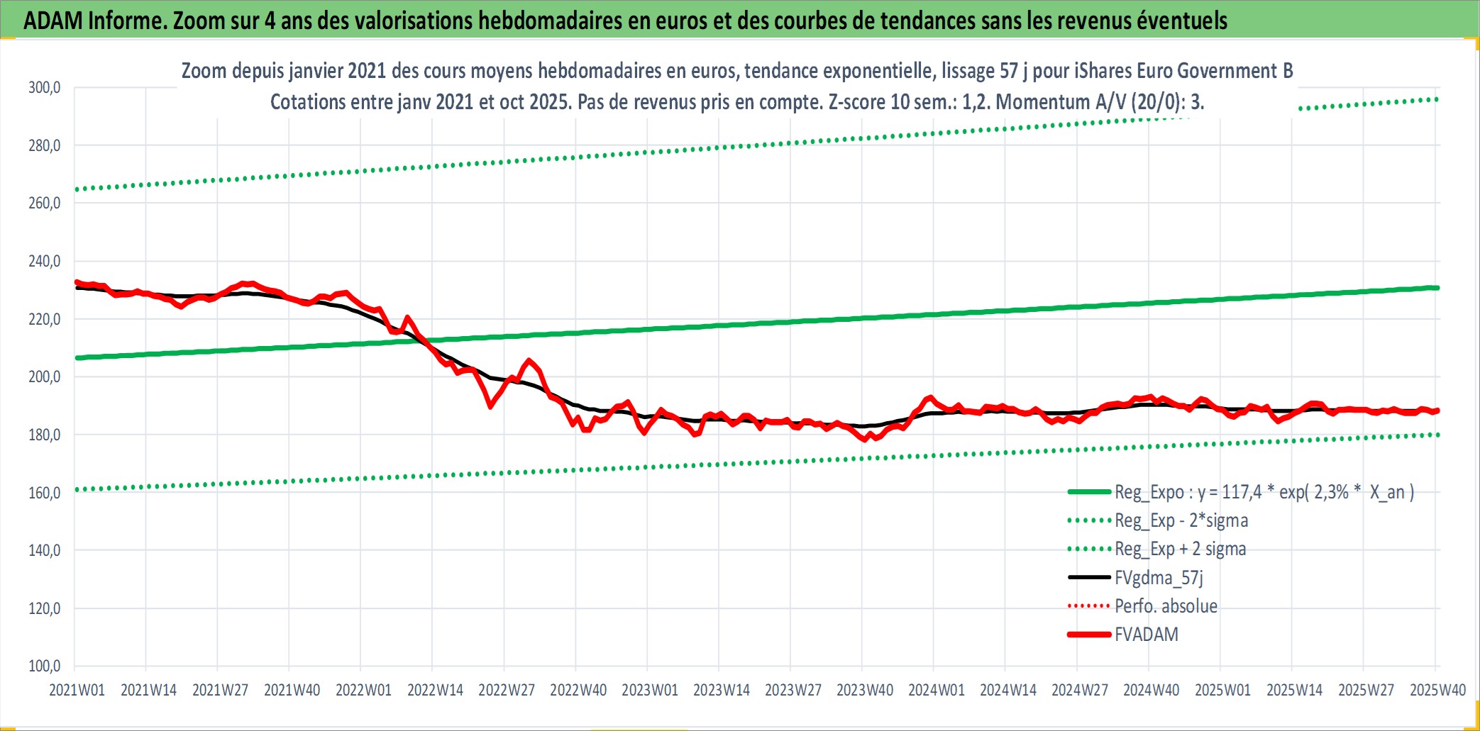 Site dédié aux investisseursPage dédiée sur site financeAnalyse des valorisations hebdomadaires du fonds iShares Euro Government Bond 7-10yr UCITS ETF EUR Dist. Cet actif est cote en EUR. Les valorisations couvrent les semaines 1997W01 a 2025W40. Les revenus de cet actif financier sont pris en compte depuis la semaine 1997W17. La note ESG de cet actif n'est pas connue.