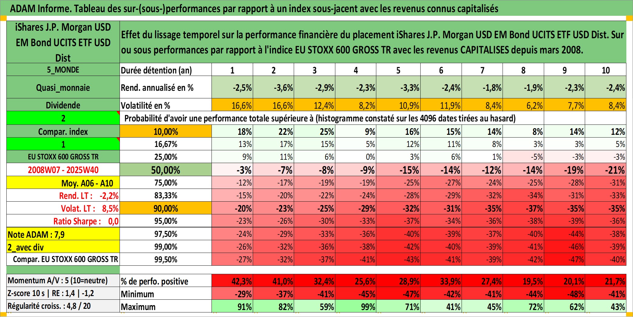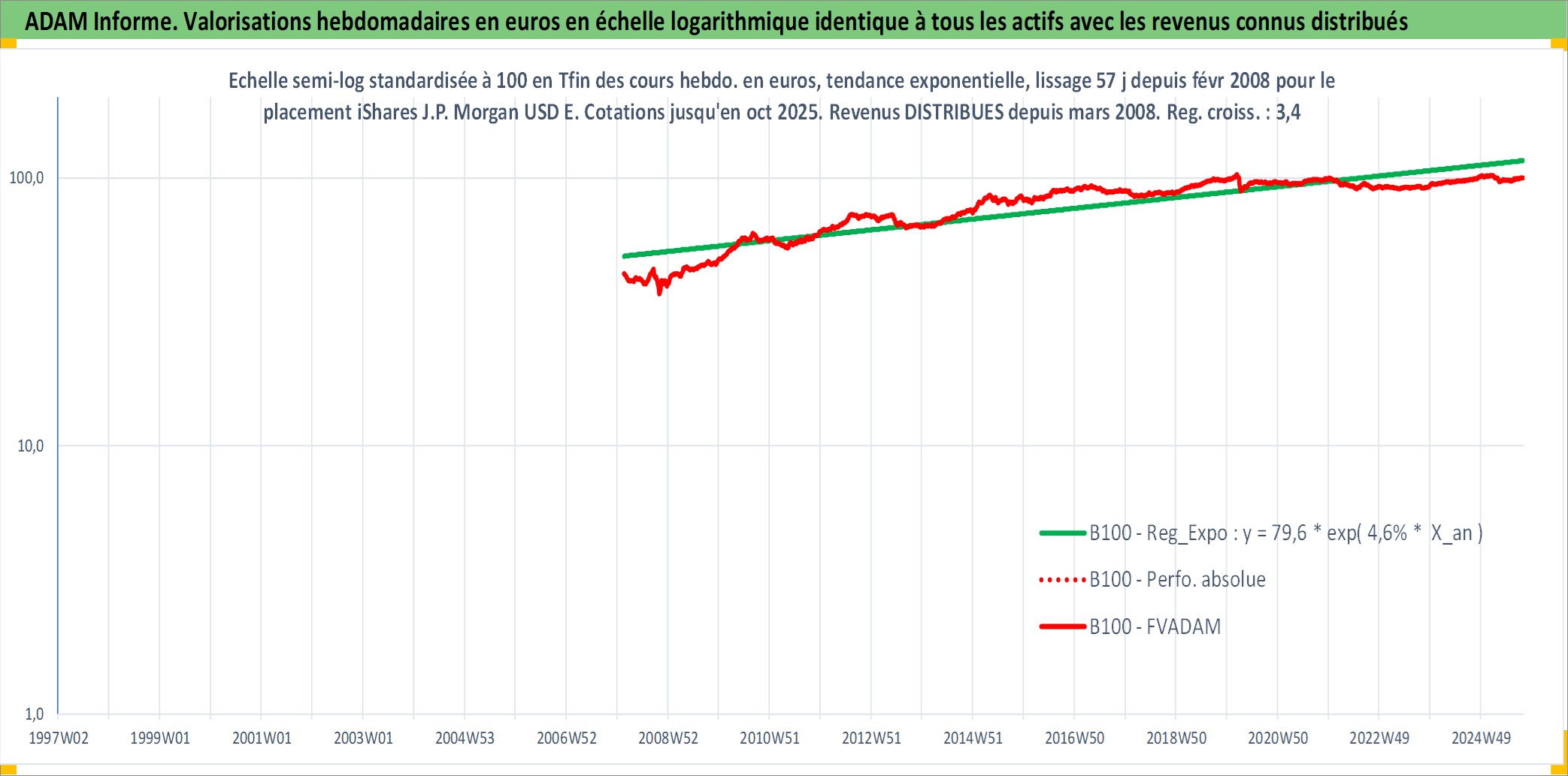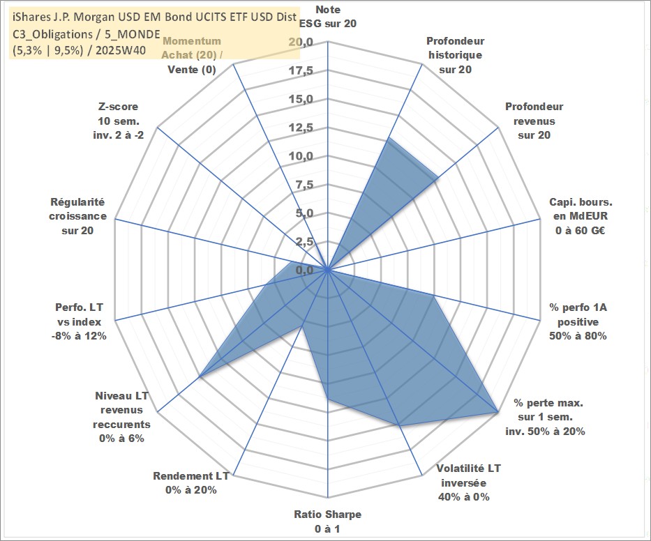 Site dédié aux investisseursPage dédiée sur site financeAnalyse des valorisations hebdomadaires du fonds iShares J.P. Morgan USD EM Bond UCITS ETF USD Dist. Cet actif est cote en USD. Les valorisations sont en contrevaleur EURO et couvrent les semaines 2008W07 a 2025W40. Les revenus de cet actif financier sont pris en compte depuis la semaine 2008W13. La note ESG de cet actif n'est pas connue.