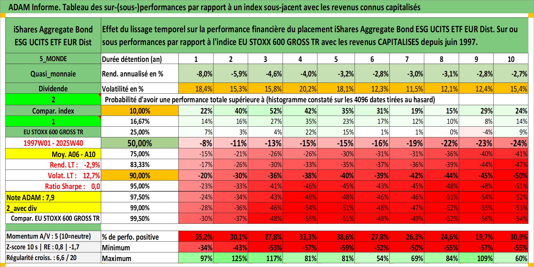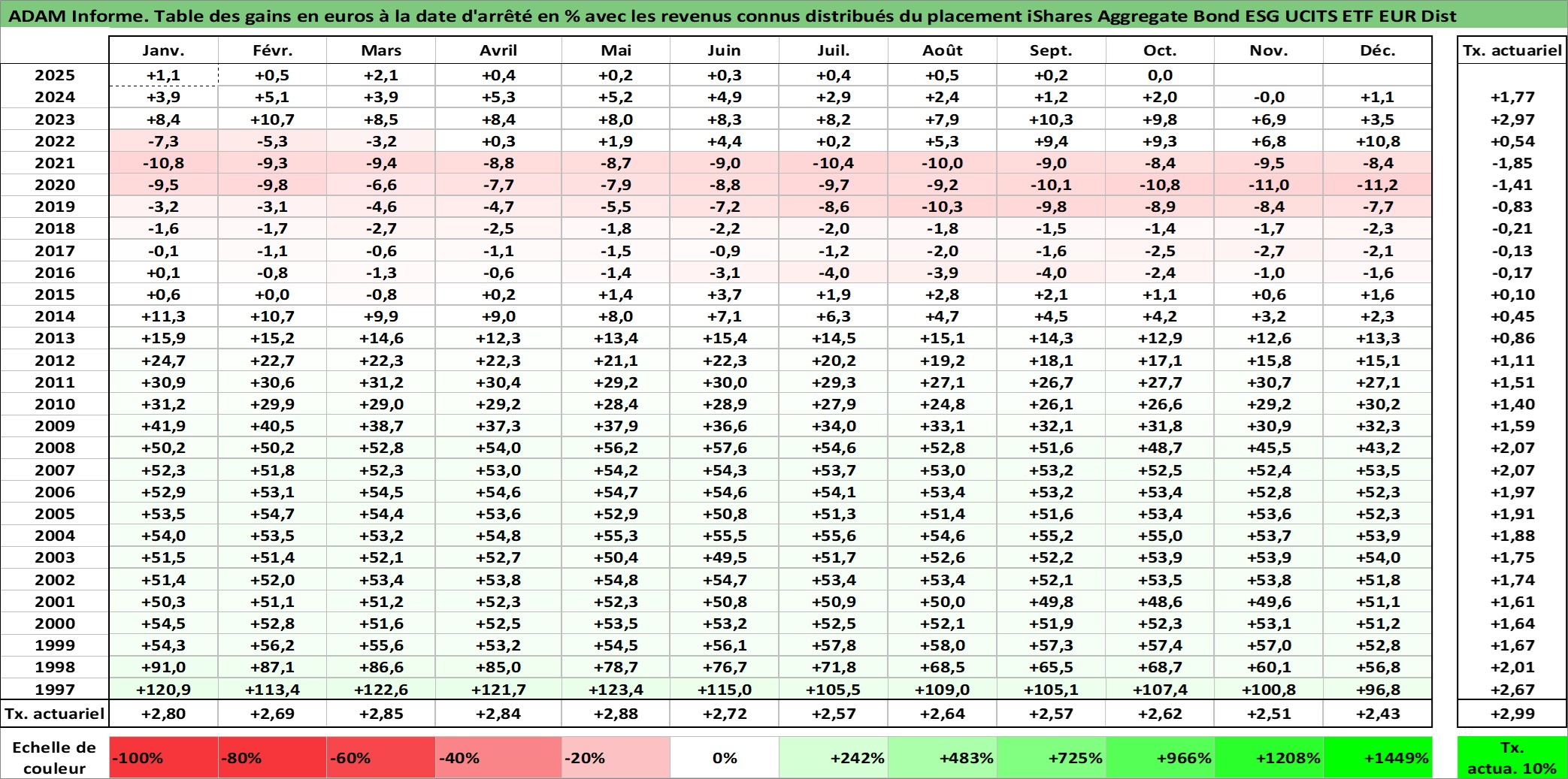 Site dédié aux investisseursPage dédiée sur site financeAnalyse des valorisations hebdomadaires du fonds iShares Aggregate Bond ESG UCITS ETF EUR Dist. Cet actif est cote en EUR. Les valorisations couvrent les semaines 1997W01 a 2025W40. Les revenus de cet actif financier sont pris en compte depuis la semaine 1997W26. La note ESG de cet actif n'est pas connue.