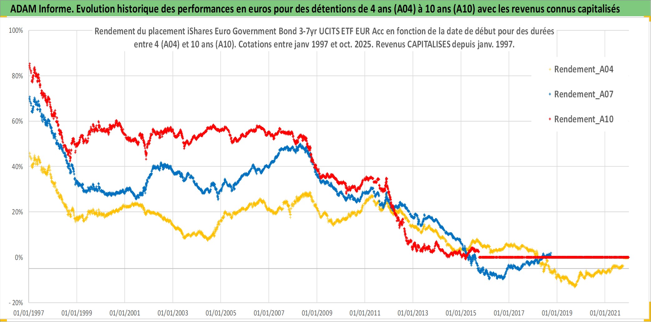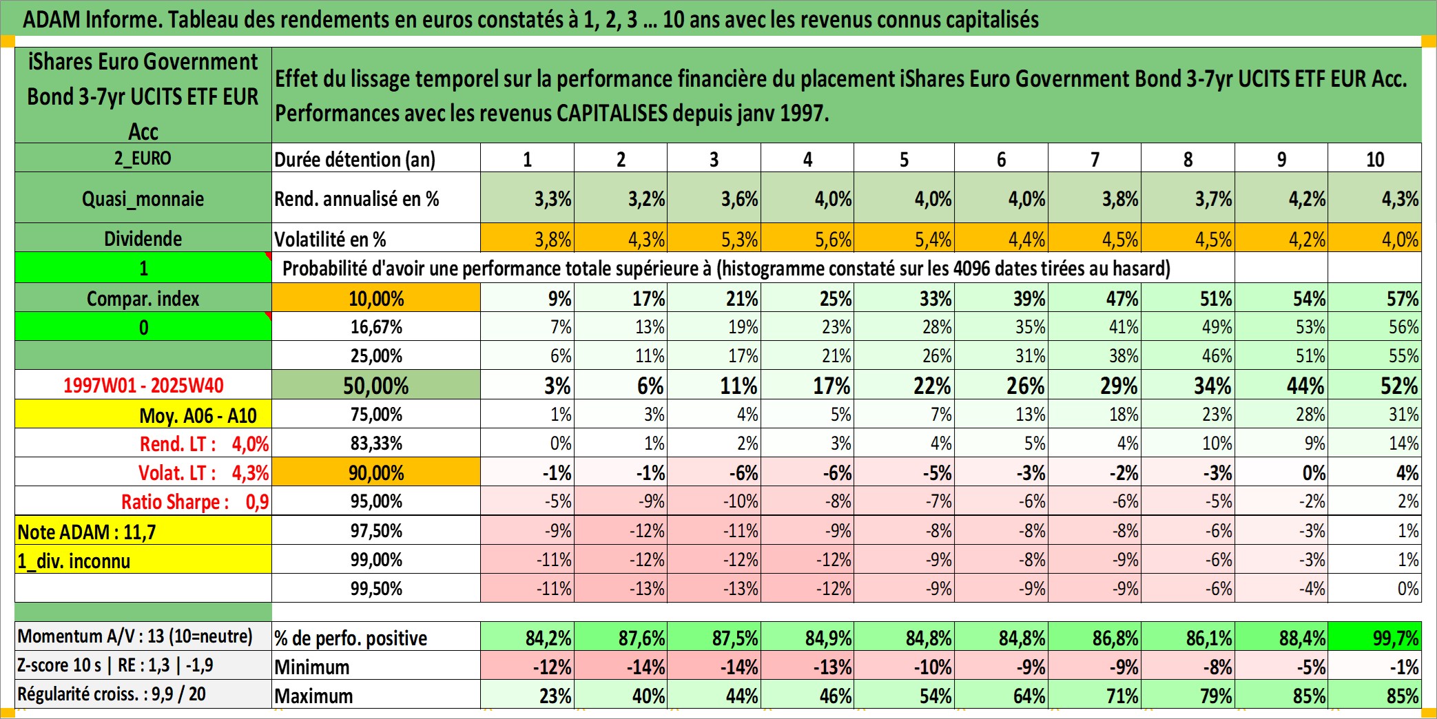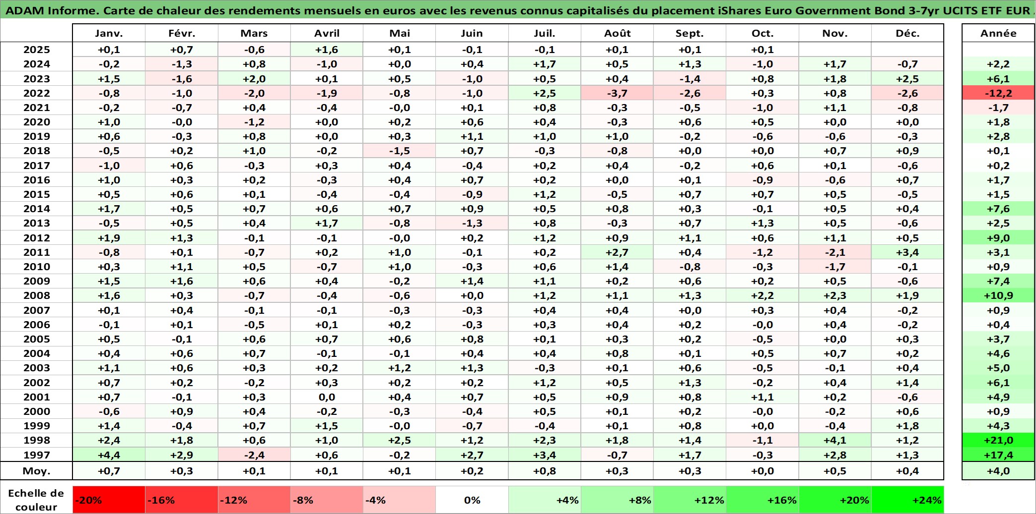 Site dédié aux investisseursPage dédiée sur site financeAnalyse des valorisations hebdomadaires du fonds iShares Euro Government Bond 3-7yr UCITS ETF EUR Acc. Cet actif est cote en EUR. Les valorisations couvrent les semaines 1997W01 a 2025W40. Les revenus de cet actif financier sont pris en compte depuis la semaine 1997W01. La note ESG de cet actif n'est pas connue.
