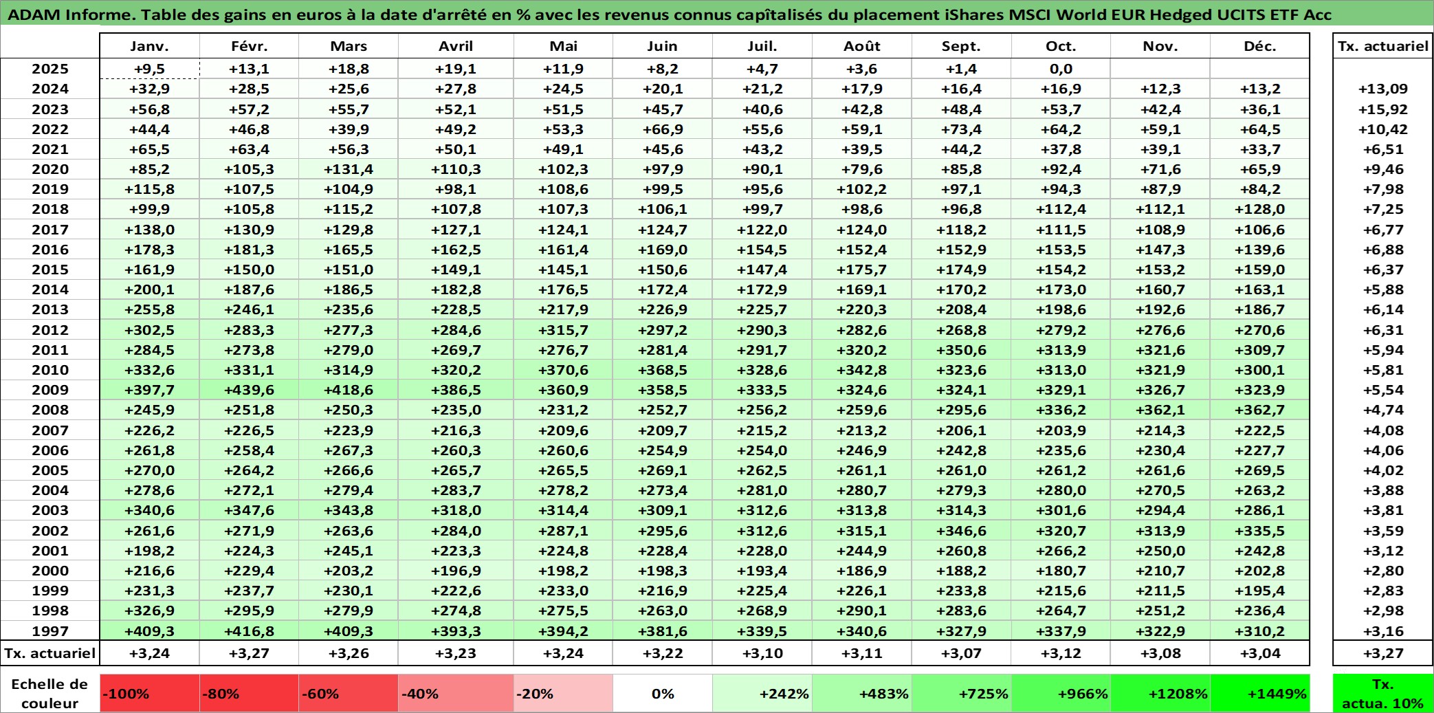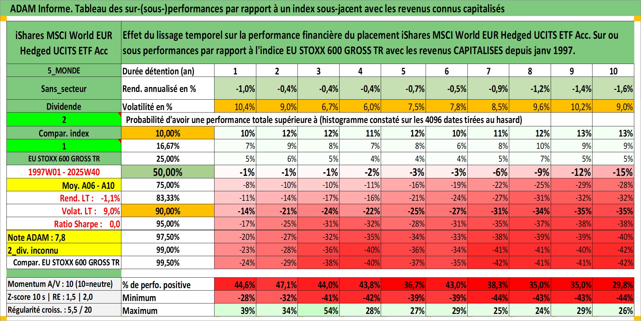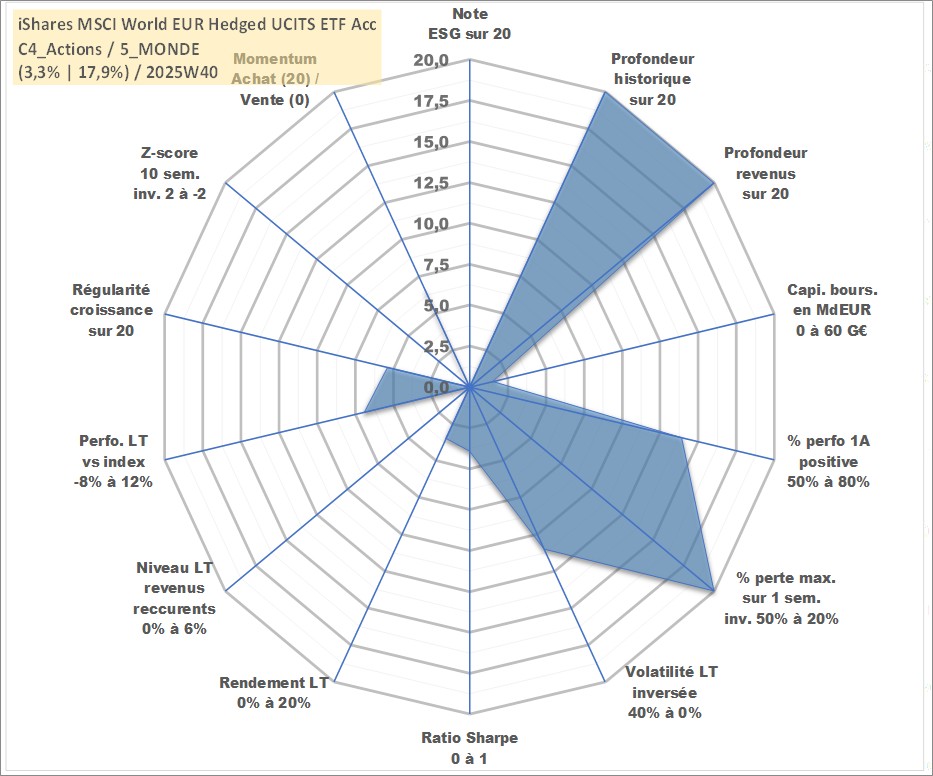 Site dédié aux investisseursPage dédiée sur site financeAnalyse des valorisations hebdomadaires du fonds iShares MSCI World EUR Hedged UCITS ETF Acc. Cet actif est cote en EUR. Les valorisations couvrent les semaines 1997W01 a 2025W40. Les revenus de cet actif financier sont pris en compte depuis la semaine 1997W01. La note ESG de cet actif n'est pas connue.