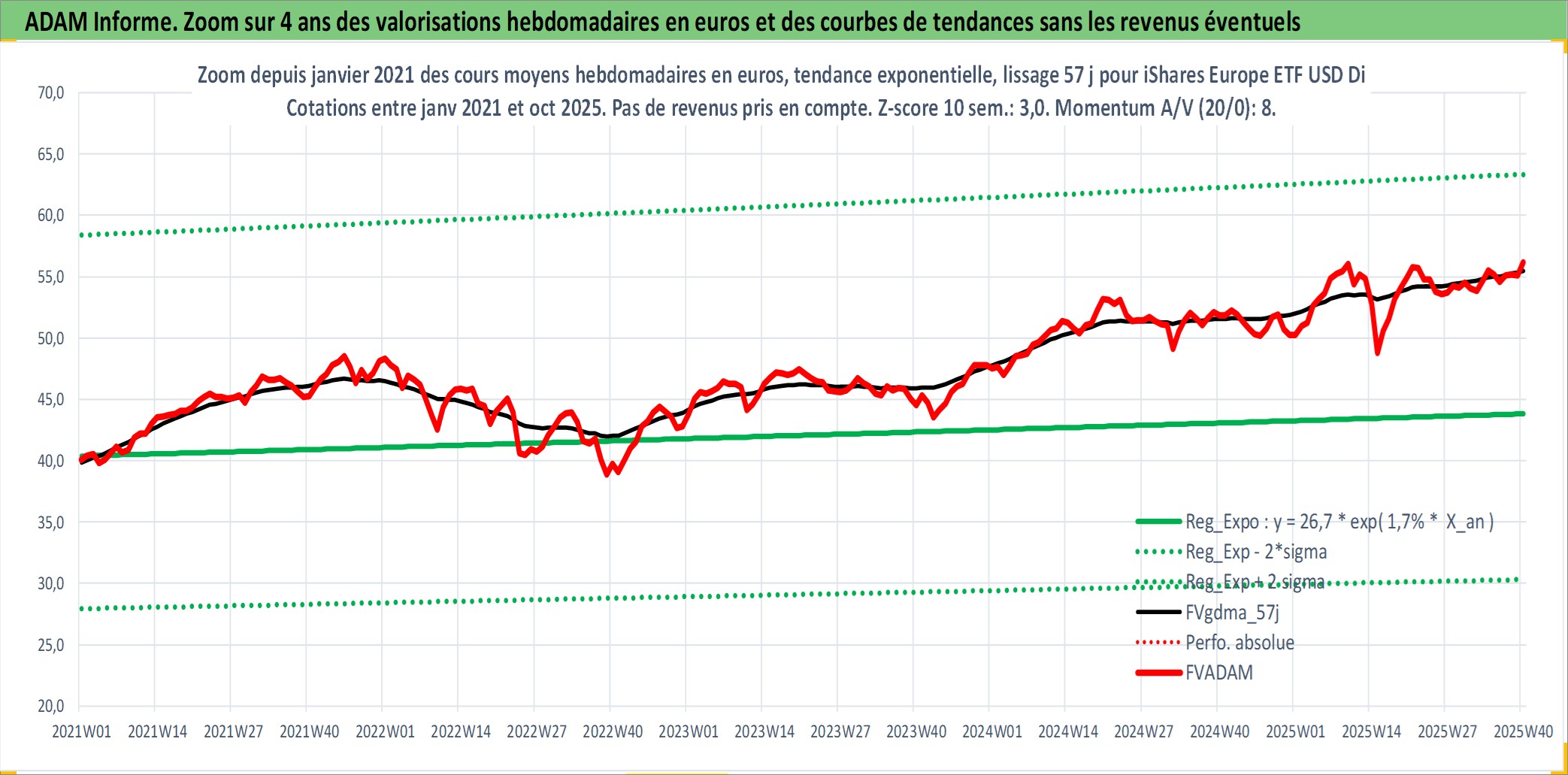 Site dédié aux investisseursPage dédiée sur site financeAnalyse des valorisations hebdomadaires du fonds iShares Europe ETF USD Dist. Cet actif est cote en USD. Les valorisations sont en contrevaleur EURO et couvrent les semaines 1997W01 a 2025W40. Les revenus de cet actif financier sont pris en compte depuis la semaine 1997W11. La note ESG de cet actif n'est pas connue.