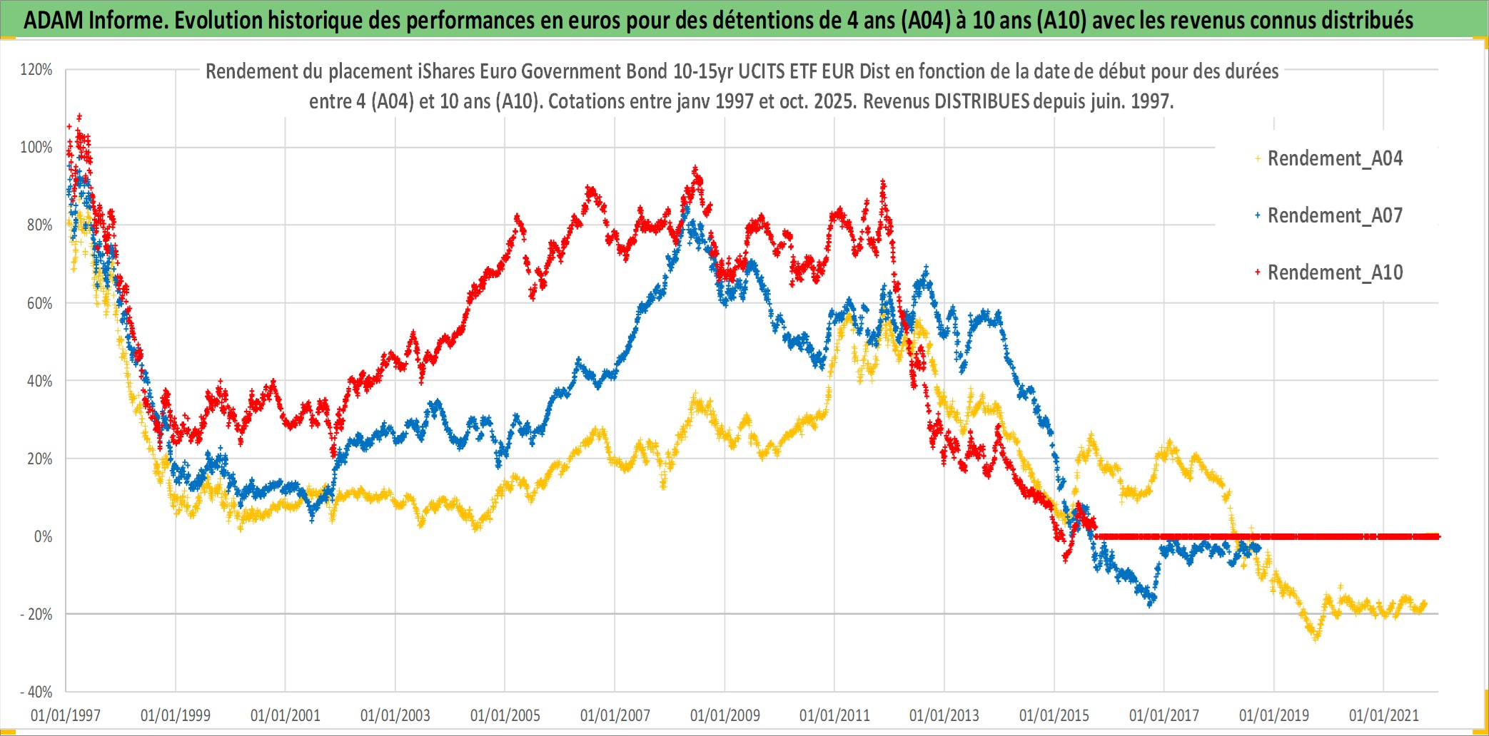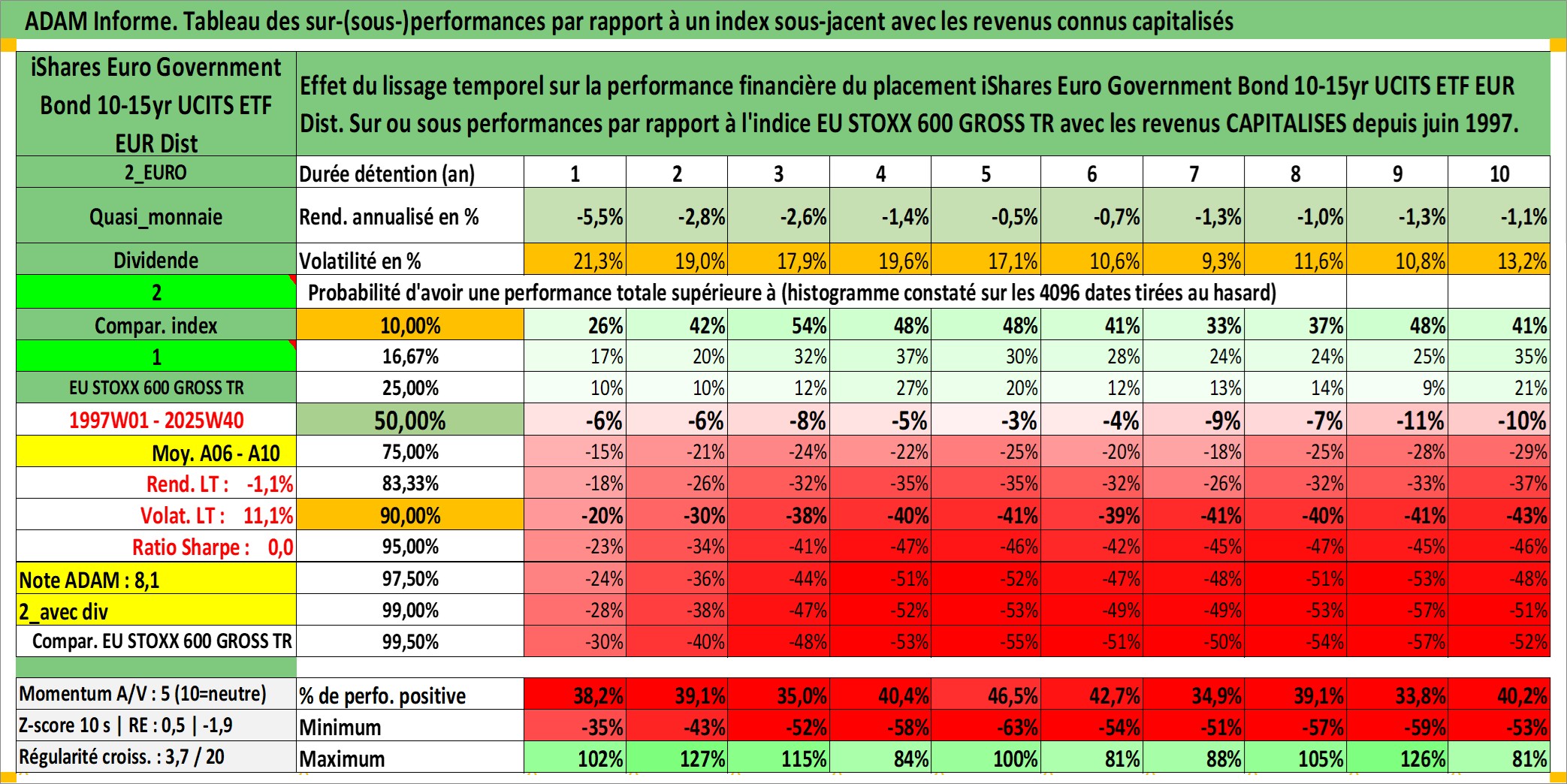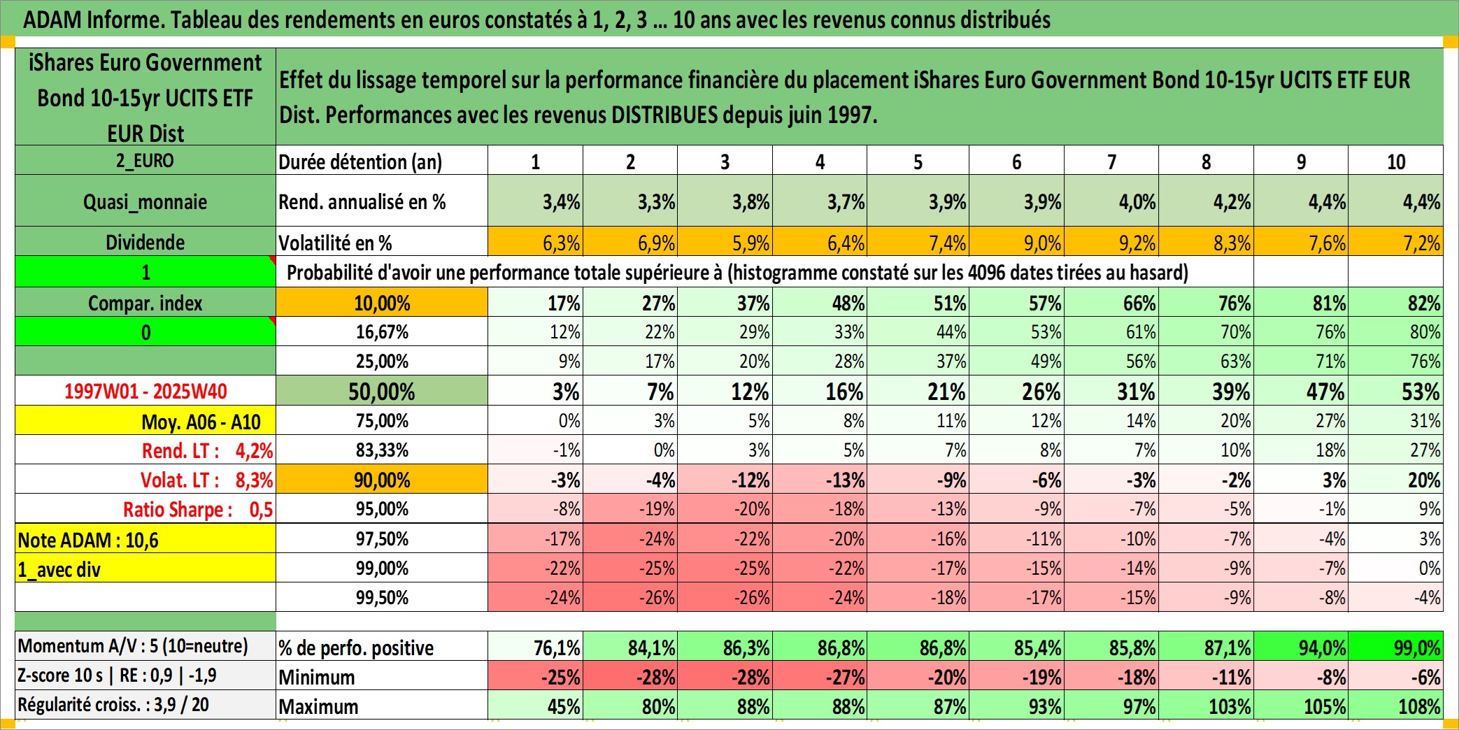 Site dédié aux investisseursPage dédiée sur site financeAnalyse des valorisations hebdomadaires du fonds iShares Euro Government Bond 10-15yr UCITS ETF EUR Dist. Cet actif est cote en EUR. Les valorisations couvrent les semaines 1997W01 a 2025W40. Les revenus de cet actif financier sont pris en compte depuis la semaine 1997W26. La note ESG de cet actif n'est pas connue.