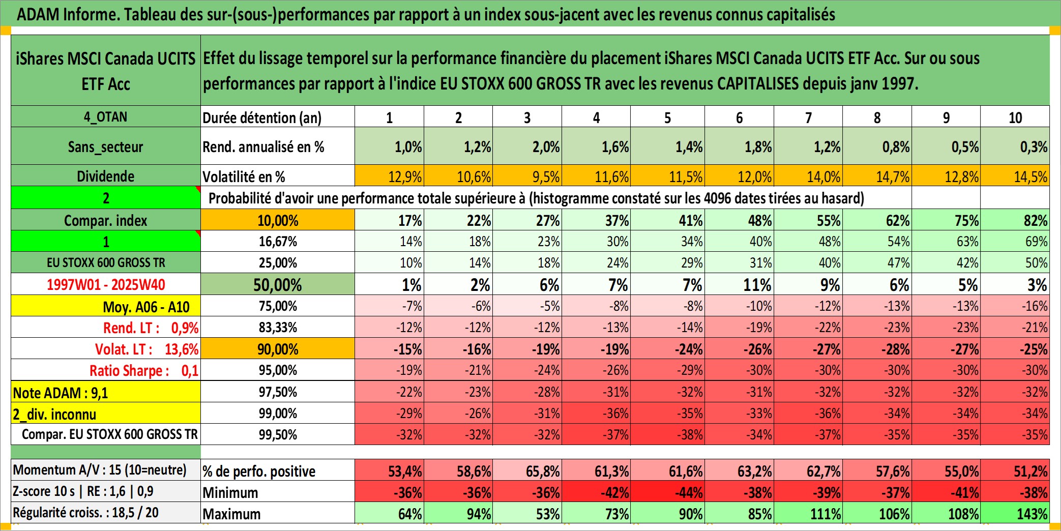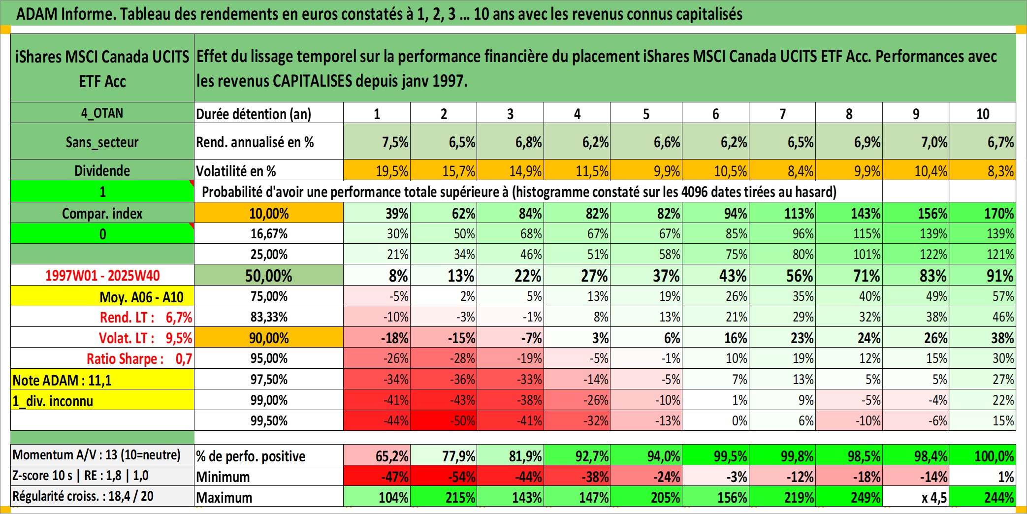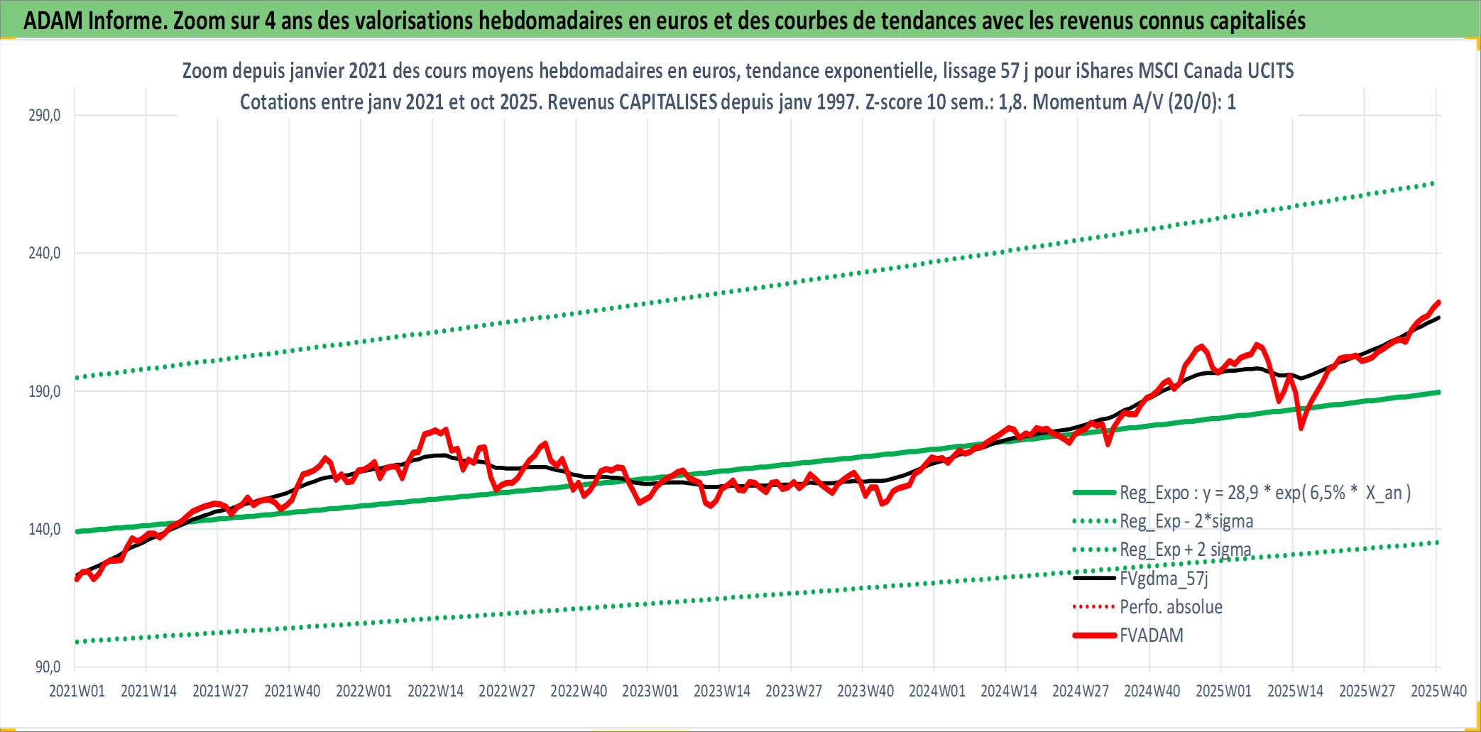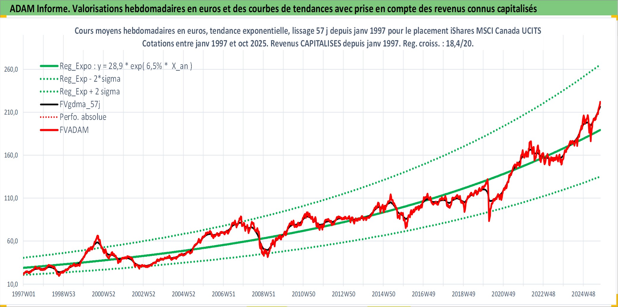 Site dédié aux investisseursPage dédiée sur site financeAnalyse des valorisations hebdomadaires du fonds iShares MSCI Canada UCITS ETF Acc. Cet actif est cote en USD. Les valorisations sont en contrevaleur EURO et couvrent les semaines 1997W01 a 2025W40. Les revenus de cet actif financier sont pris en compte depuis la semaine 1997W01. La note ESG de cet actif n'est pas connue.