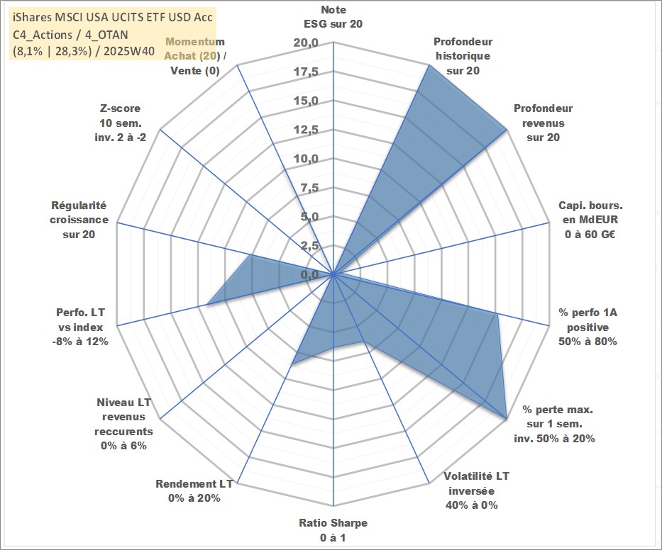 Site dédié aux investisseursPage dédiée sur site financeAnalyse des valorisations hebdomadaires du fonds iShares MSCI USA UCITS ETF USD Acc. Cet actif est cote en USD. Les valorisations sont en contrevaleur EURO et couvrent les semaines 1997W01 a 2025W40. Les revenus de cet actif financier sont pris en compte depuis la semaine 1997W01. La note ESG de cet actif n'est pas connue.