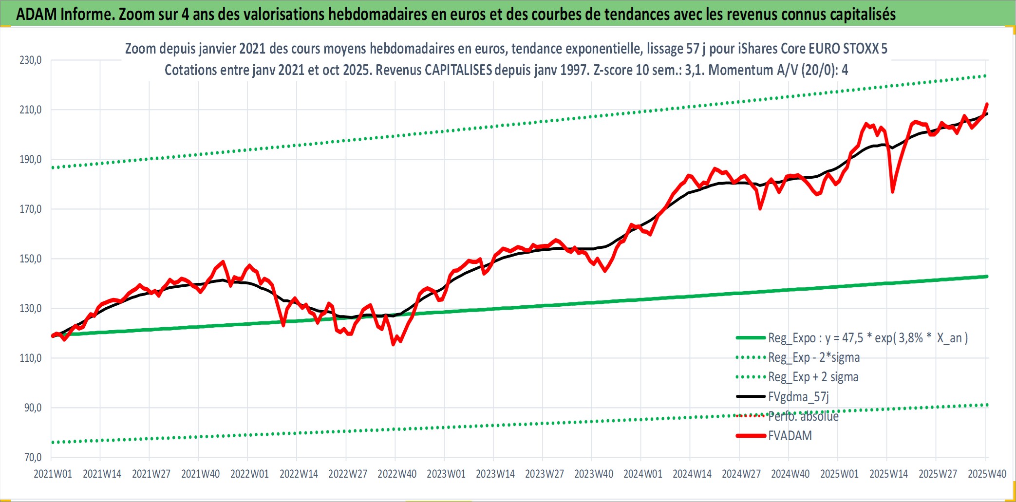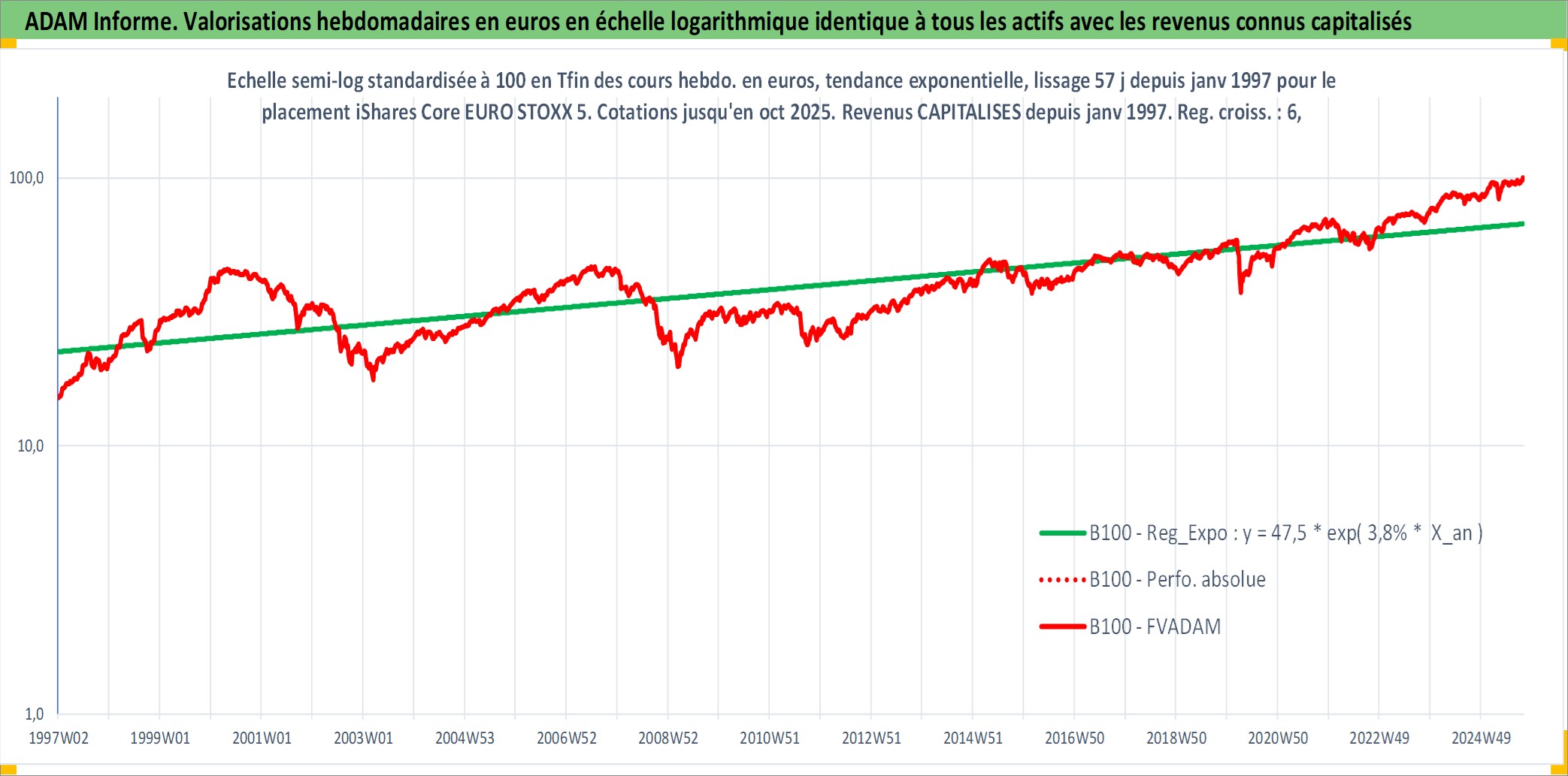 Site dédié aux investisseursPage dédiée sur site financeAnalyse des valorisations hebdomadaires du fonds iShares Core EURO STOXX 50 PEA_Acc. Cet actif est cote en EUR. Les valorisations couvrent les semaines 1997W01 a 2025W40. Les revenus de cet actif financier sont pris en compte depuis la semaine 1997W01. La note ESG de cet actif n'est pas connue.