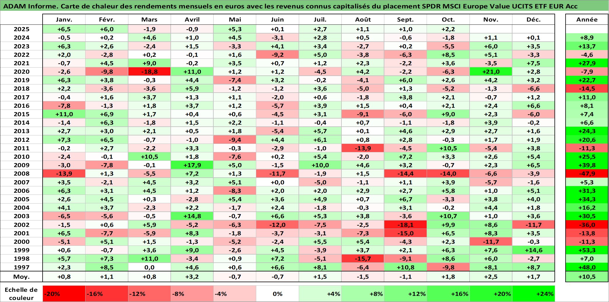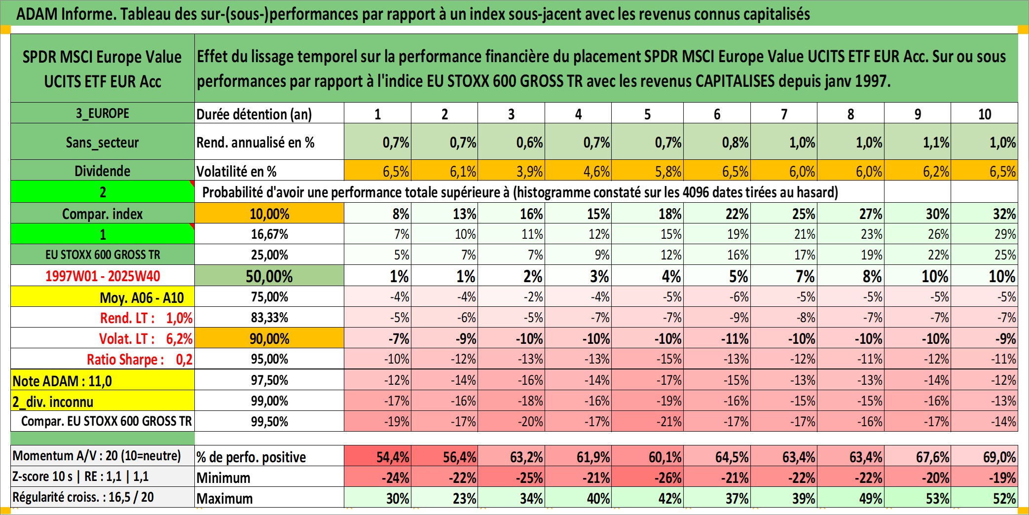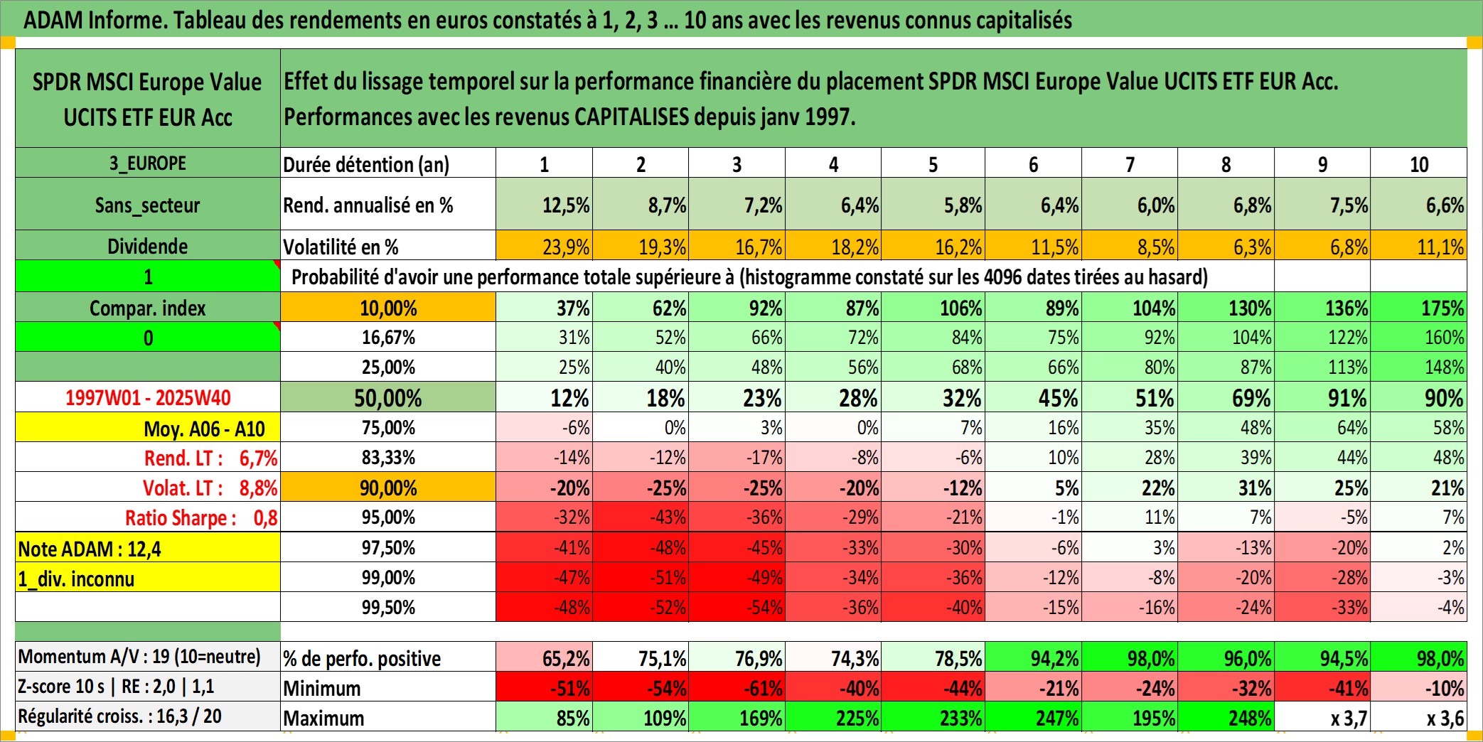 Site dédié aux investisseursPage dédiée sur site financeAnalyse des valorisations hebdomadaires du fonds SPDR MSCI Europe Value UCITS ETF EUR Acc. Cet actif est cote en EUR. Les valorisations couvrent les semaines 1997W01 a 2025W40. Les revenus de cet actif financier sont pris en compte depuis la semaine 1997W01. La note ESG de cet actif n'est pas connue.