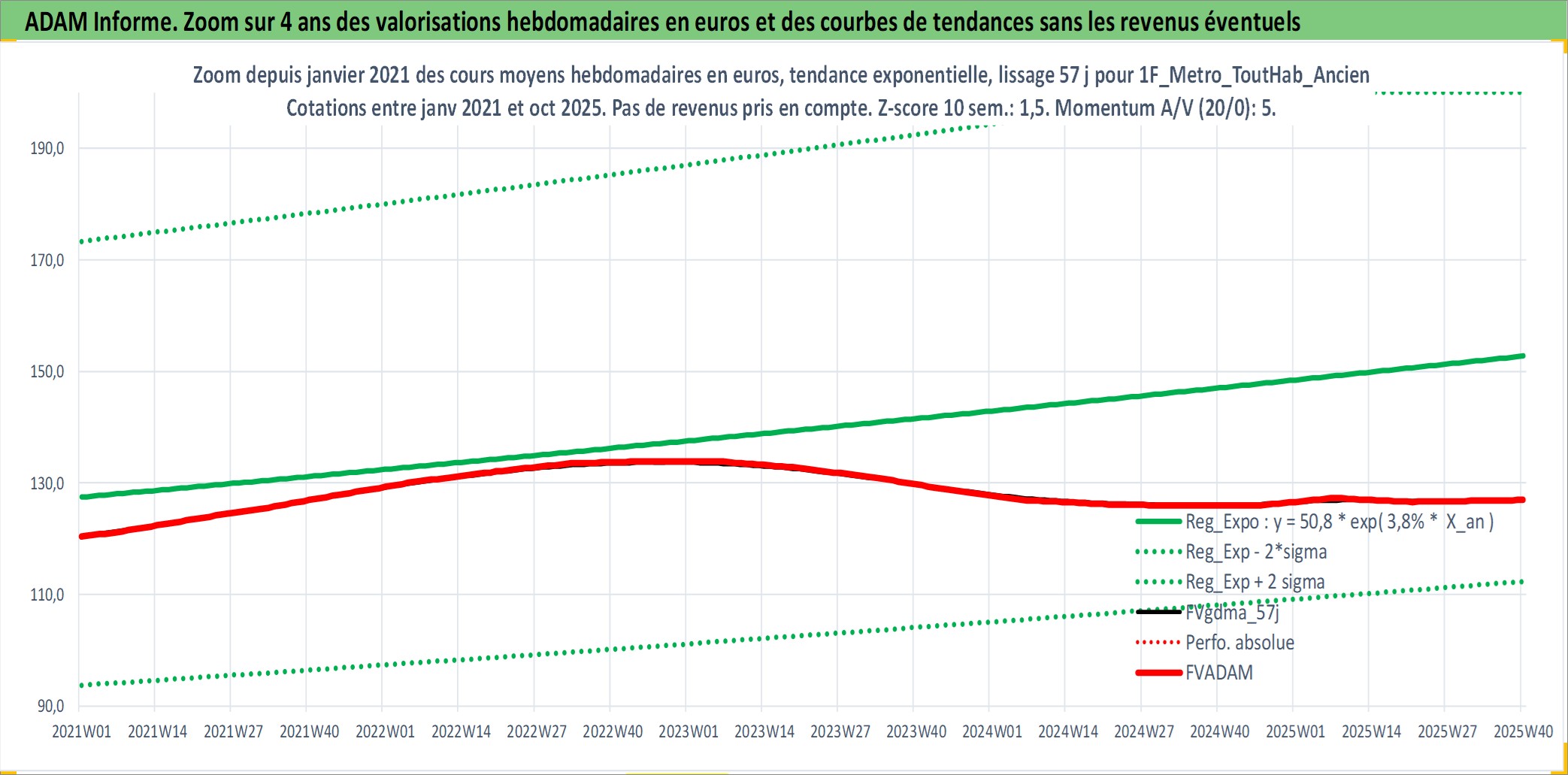 Site dédié aux investisseursPage dédiée sur site financeAnalyse des valorisations hebdomadaires de l'actif 1F_Metro_ToutHab_Ancien. Cet actif est cote en EUR. Les valorisations couvrent les semaines 1997W01 a 2025W40. Les loyers de cet actif immobilier sont pris egaux a 3,33% annuels de la valeur venale du logement.