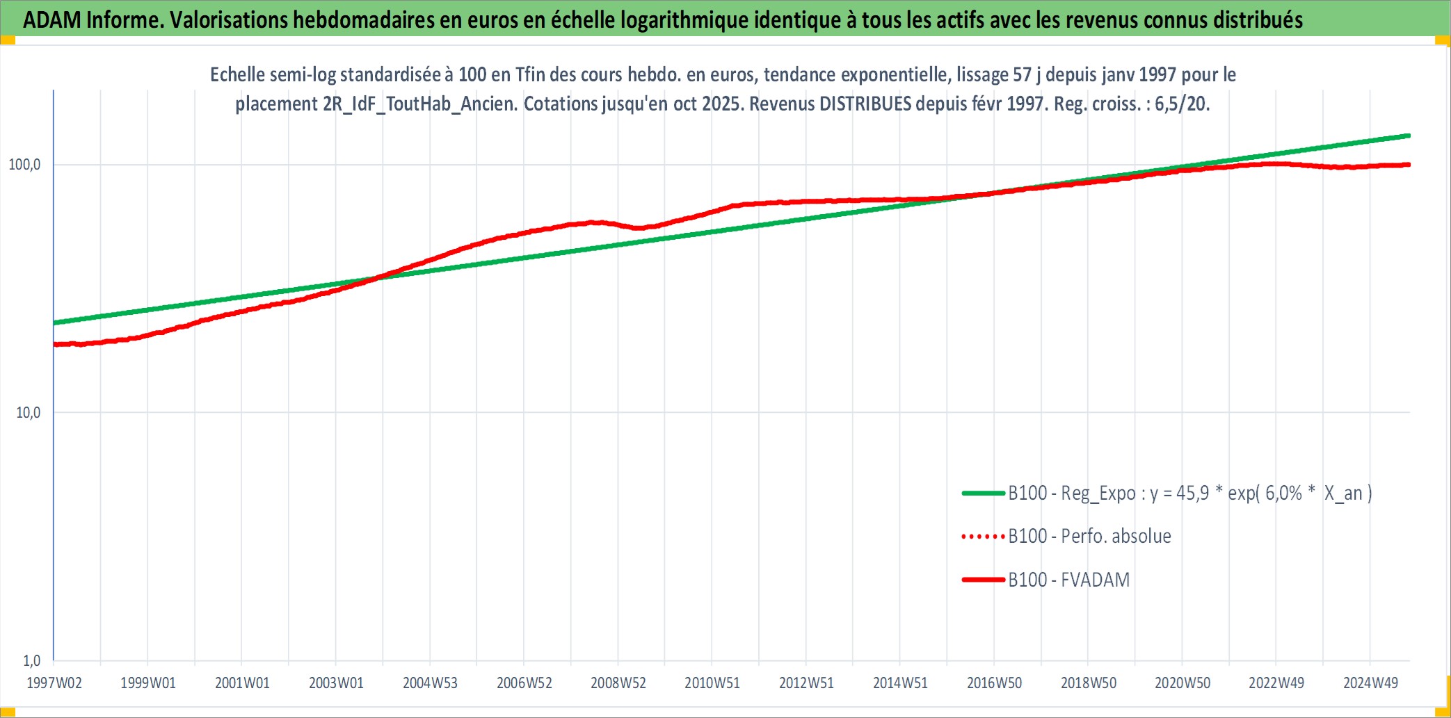 Site dédié aux investisseursPage dédiée sur site financeAnalyse des valorisations hebdomadaires de l'actif 2R_IdF_ToutHab_Ancien. Cet actif est cote en EUR. Les valorisations couvrent les semaines 1997W01 a 2025W40. Les loyers de cet actif immobilier sont pris egaux a 3,33% annuels de la valeur venale du logement.